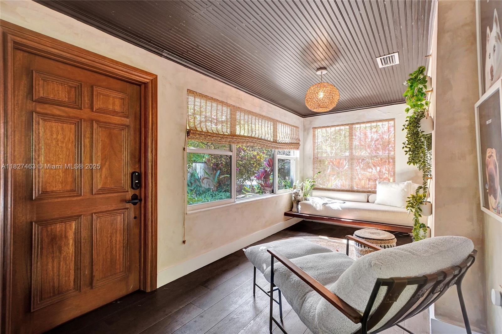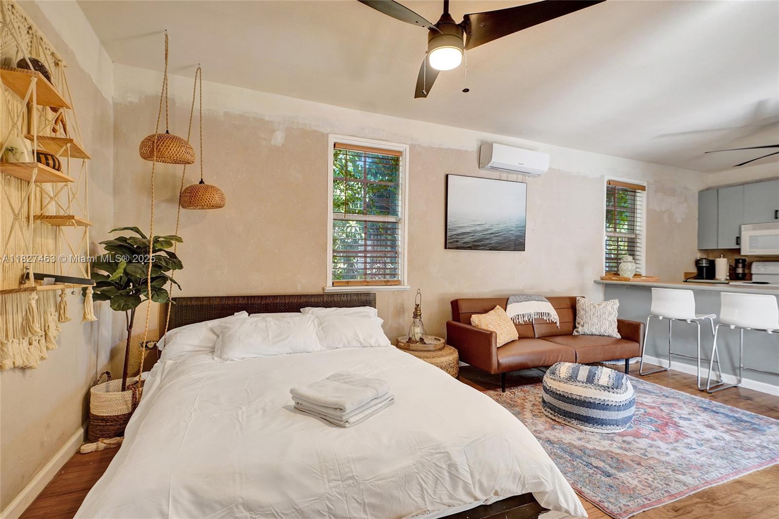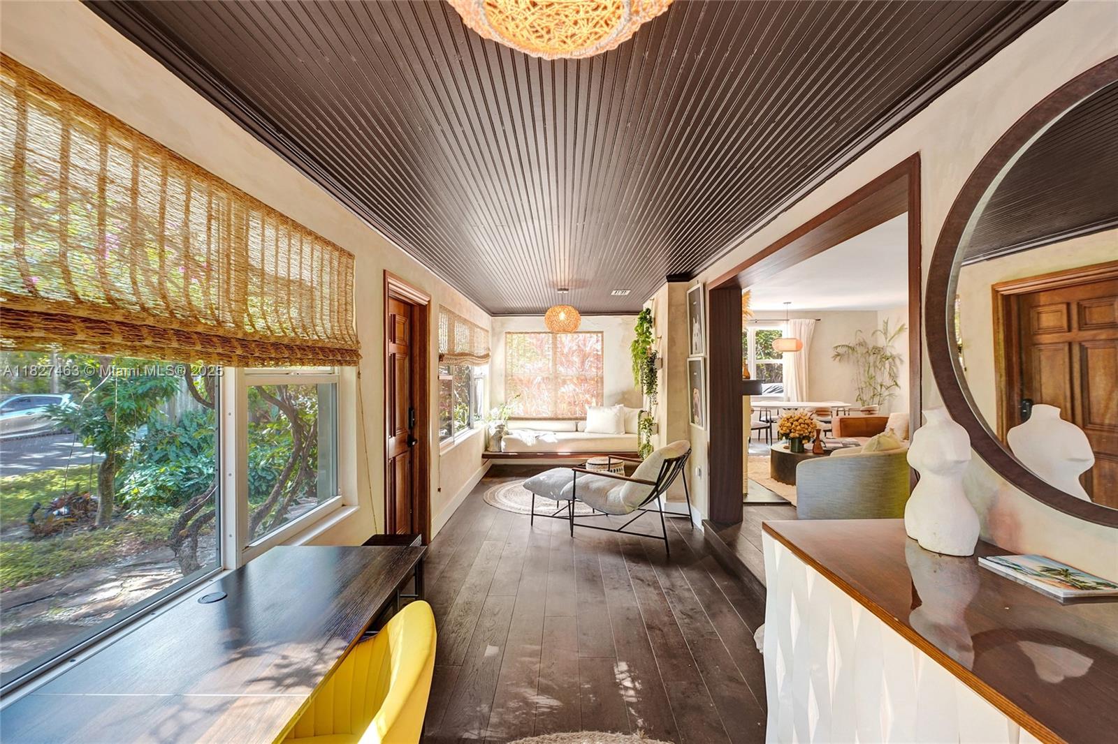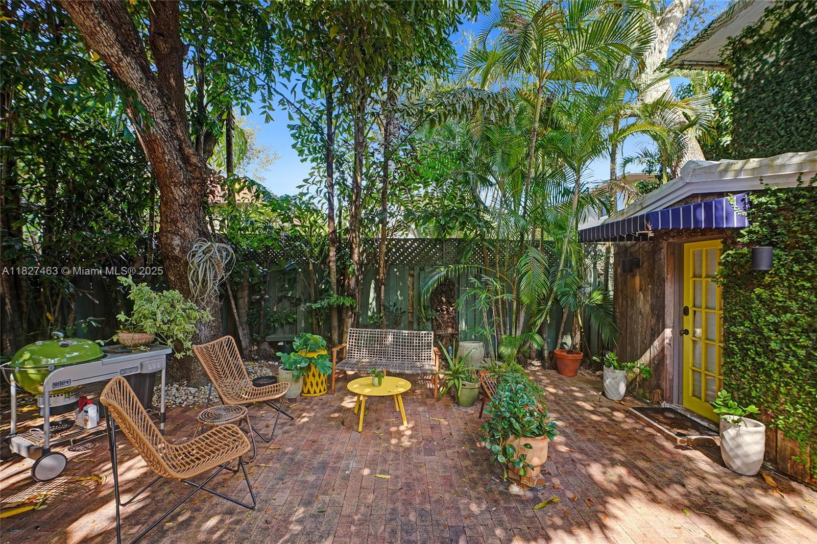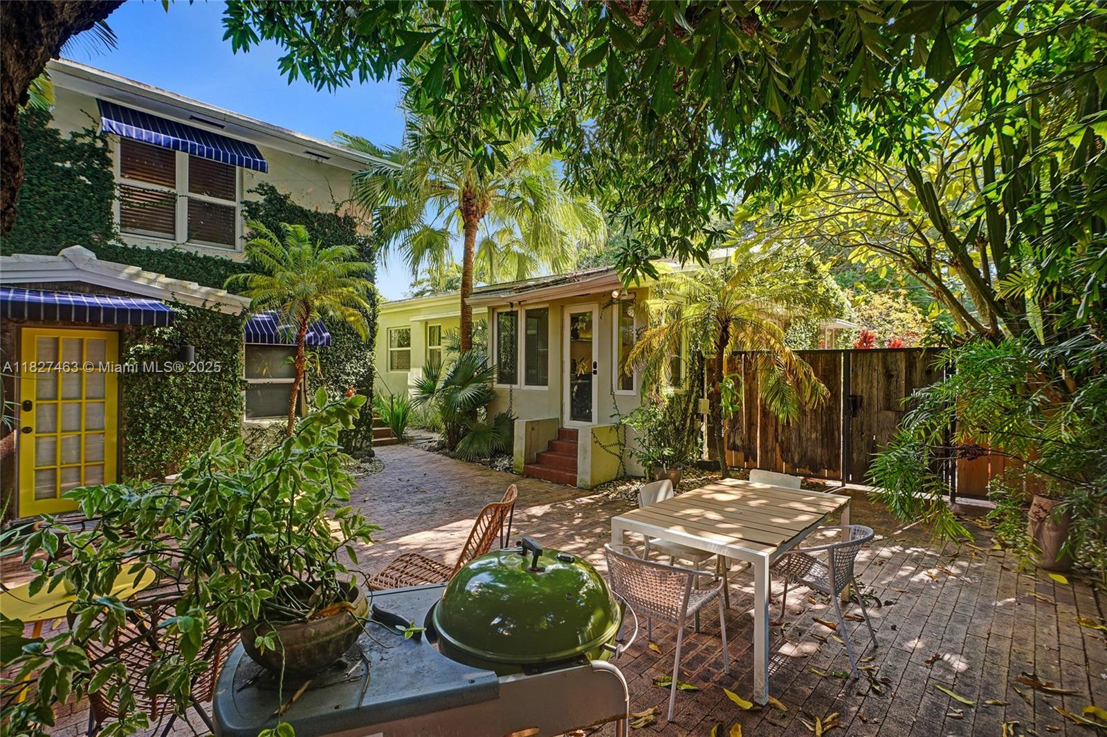 Welcome to this charming 2/2 historic home in the exclusive, gated Morningside community—just minutes from the Design District, Downtown, and Miami Beach. Fully furnished with high-end pieces, this warm, vintage-inspired home features a fully equipped kitchen, washer/dryer, luxury linens, and artisanal soaps. Enjoy the shared backyard with a BBQ grill and lush surroundings. Morningside is a 44-acre park that offers running trails, tennis, paddleboarding, and tree-lined serenity. There is a guesthouse studio also available in the backyard—ask for details!