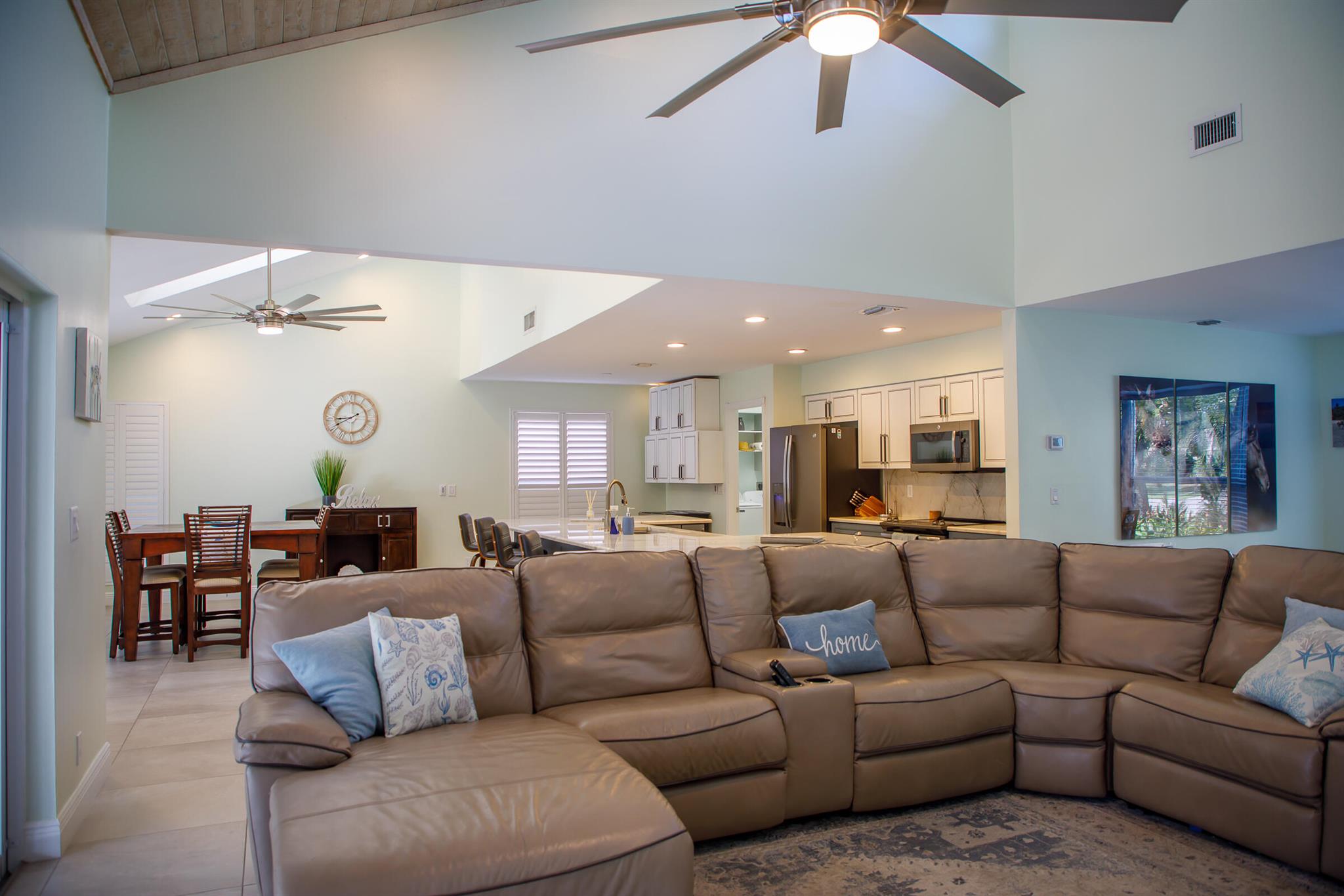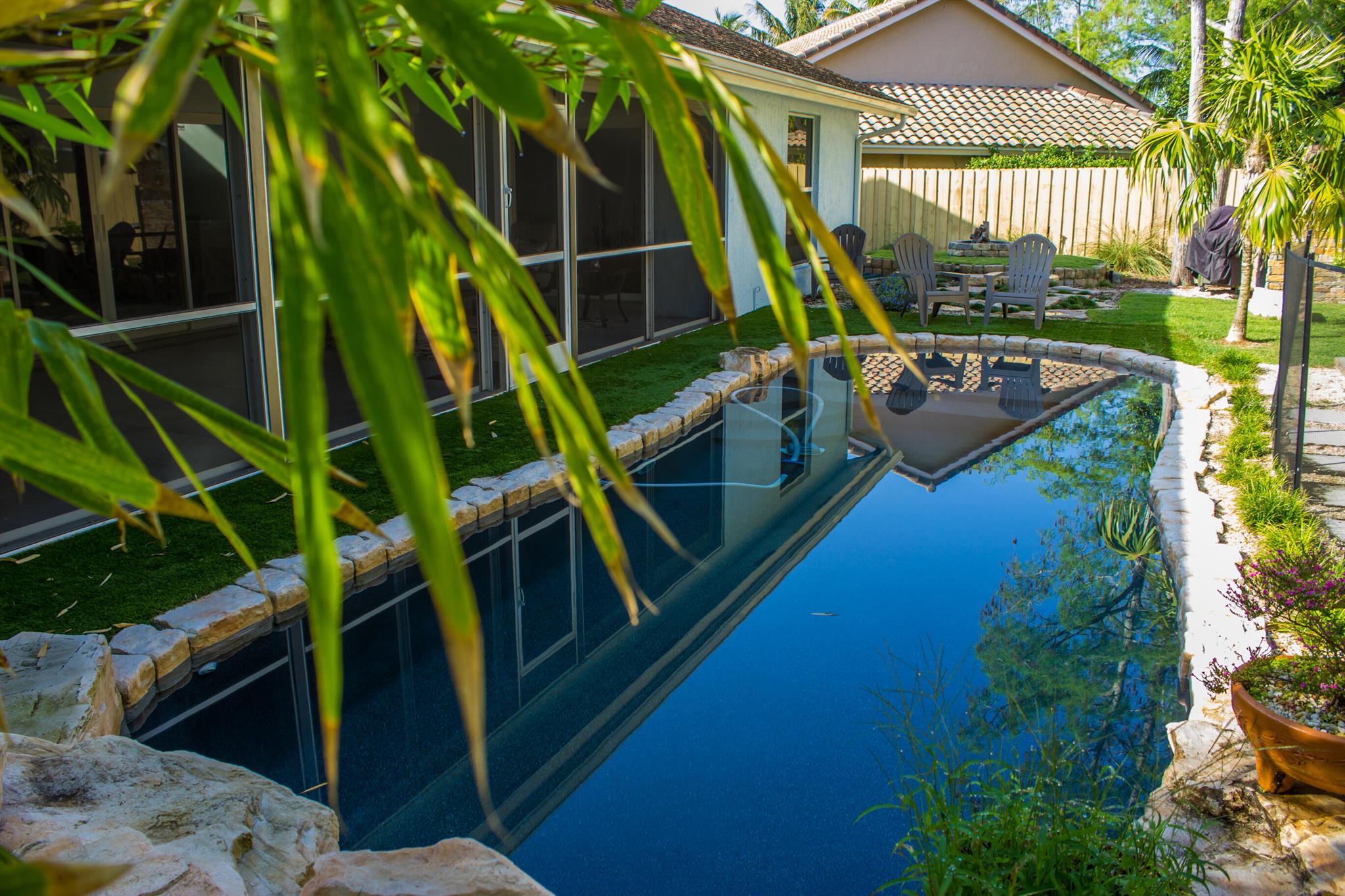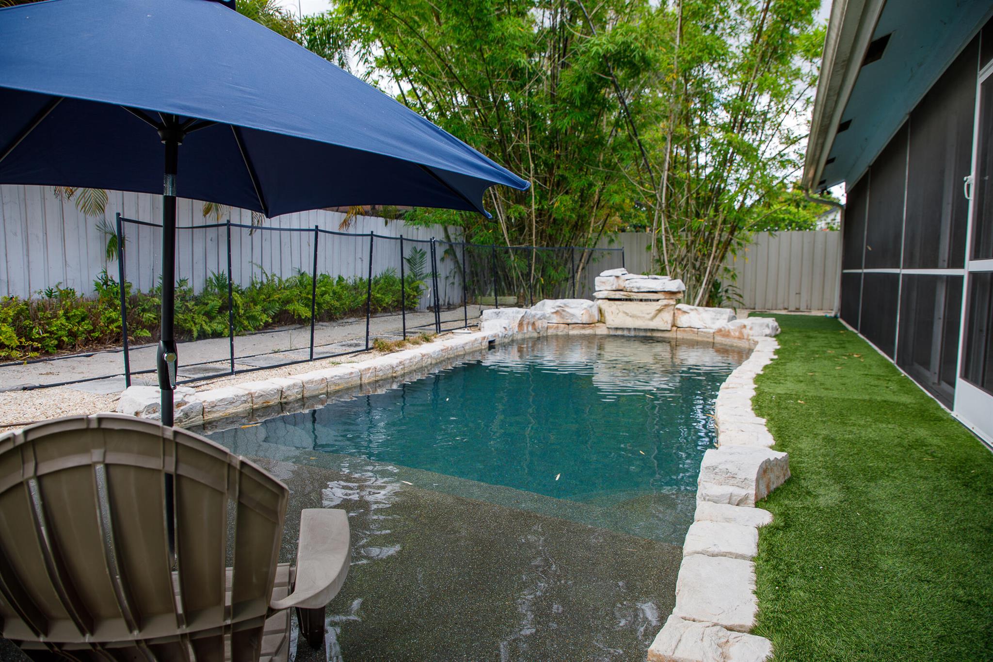 Welcome to this exquisite turnkey single-family home, fully furnished for your ultimate convenience. Nestled in a serene community, this residence boasts a private pool, screened patio, and a charming fire pit, offering a perfect blend of tranquility and luxury. Step inside this tastefully decorated 3-bedroom, 2-bathroom haven with vaulted ceilings that enhance its spacious allure. The interior features a formal living room, dining room, and a kitchen adorned with quartz countertops and stainless steel appliances. Elegant ceramic tiles and wood flooring flow seamlessly throughout the living spaces, adding a touch of sophistication.