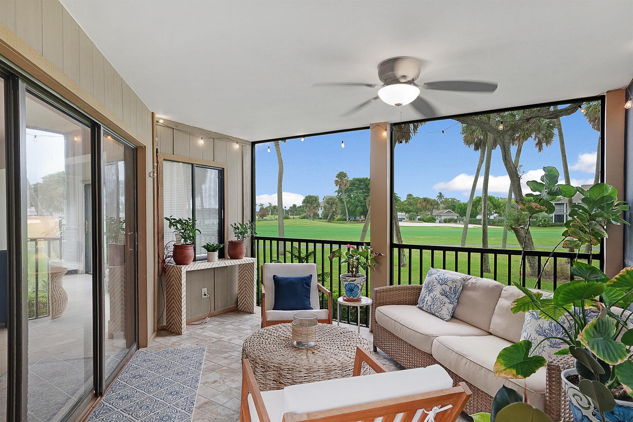 Prime location with beautiful views of the golf course and lake, just a short stroll to the beach! This bright and airy first-floor end unit, fully redone last year, offers two spacious bedrooms and two full baths. The updated white kitchen features Quartzite countertops, stainless steel appliances, and a breakfast bar, opening to a light-filled living area. New vinyl flooring and fresh interior paint give a modern touch. The master bedroom opens to a private patio, perfect for relaxation. Enjoy dining indoors or out on the covered, screened patio, perfect for catching the cool breezes. A rare 1-car garage provides extra storage. Amenities include a heated pool, tennis courts, and BBQ area, with optional membership available.