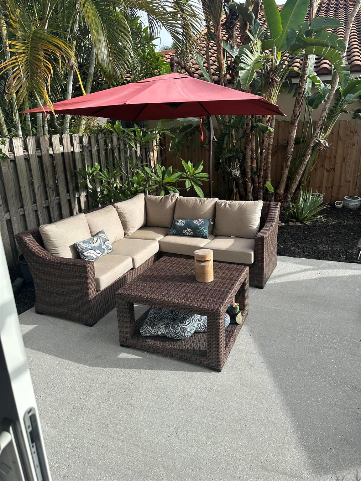Immaculate 3-bedroom, 2-bath annual rental located in the highly sought-after gated community of Stonebriar. This beautifully maintained home features vaulted ceilings, skylights, impact glass, newer roof (22) and a desirable split floor plan. Enjoy newer Bosch and Whirlpool appliances, a Sub-Zero refrigerator, double ovens, new washer and dryer, and an additional fridge in the garage. Coastal-style wood, tile, and laminate flooring flow throughout, complemented by fresh paint. The spacious primary suite includes a king bed, Jacuzzi tub, and all bedrooms are outfitted with new mattresses. A tankless water heater adds efficiency, while 9-foot retractable impact sliders open to a serene, fully fenced backyard and private patio--perfect for indoor-outdoor living.