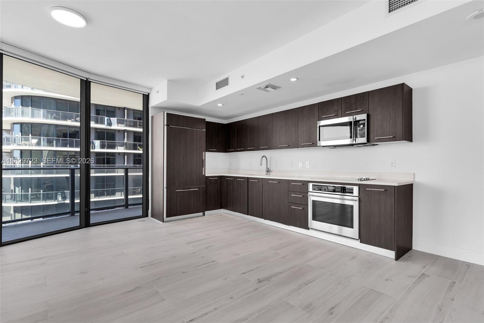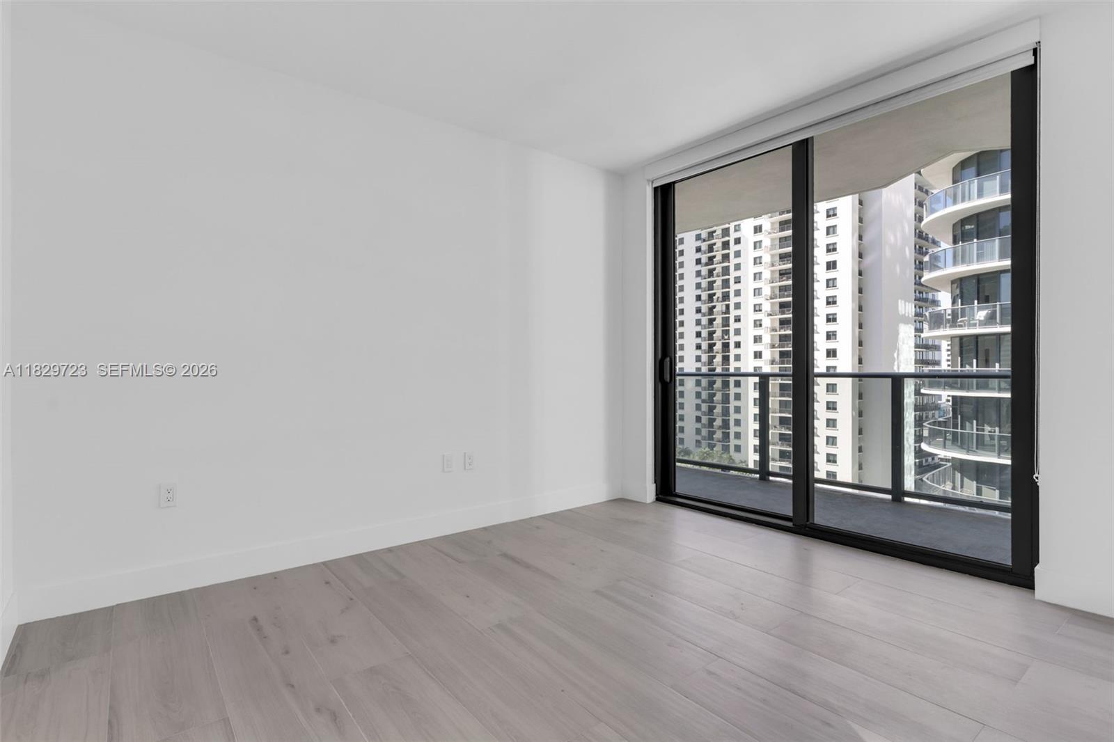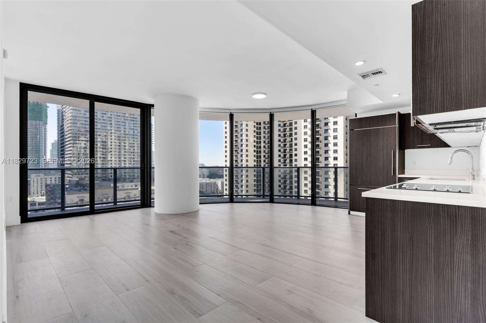 Spacious 2BD+Den in the heart of Brickell. Unfurnished unit with stunning skyline and bay views from wraparound balcony and floor-to-ceiling windows. Newly installed white wood-look tile flooring and freshly painted. Features European kitchen with stone countertops, stainless steel appliances, blackout bedroom shades, washer/dryer, and great closet space. Luxury building with resort-style amenities including rooftop pools, spa, theater and more.
