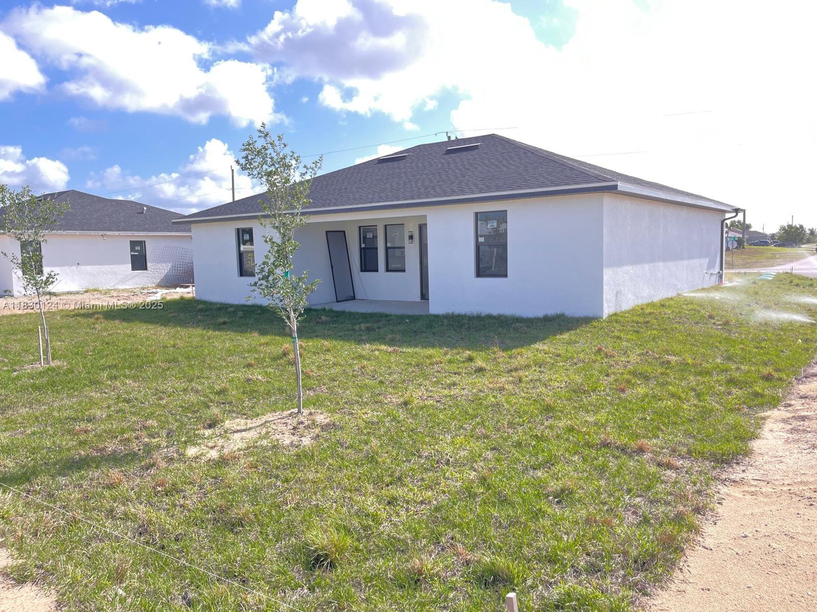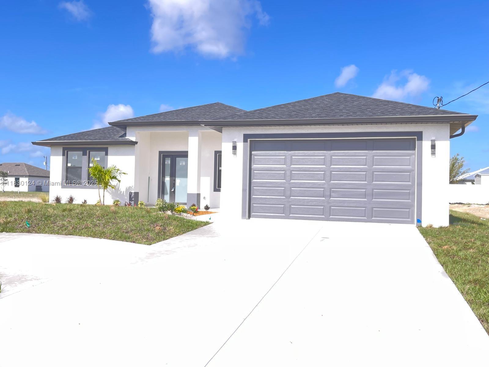 Brand new 4-bedroom, 2-bathroom residence, built in 2025, nestled in an amazing neighborhood of North Cape Coral. This contemporary gem offers everything you need for comfortable living, featuring a spacious two-car garage and modern open concept design throughout. The well-designed kitchen boasts modern appliances, ample cabinetry, and a convenient breakfast bar that flows into the living and dining areas—perfect for gatherings and entertaining. The master suite is a true retreat, complete with an en-suite bathroom designed for relaxation. Three additional bedrooms provide versatile space for family, guests, or a home office. Enjoy the expansive 10,000 sq ft backyard, ideal for outdoor activities. Call today!