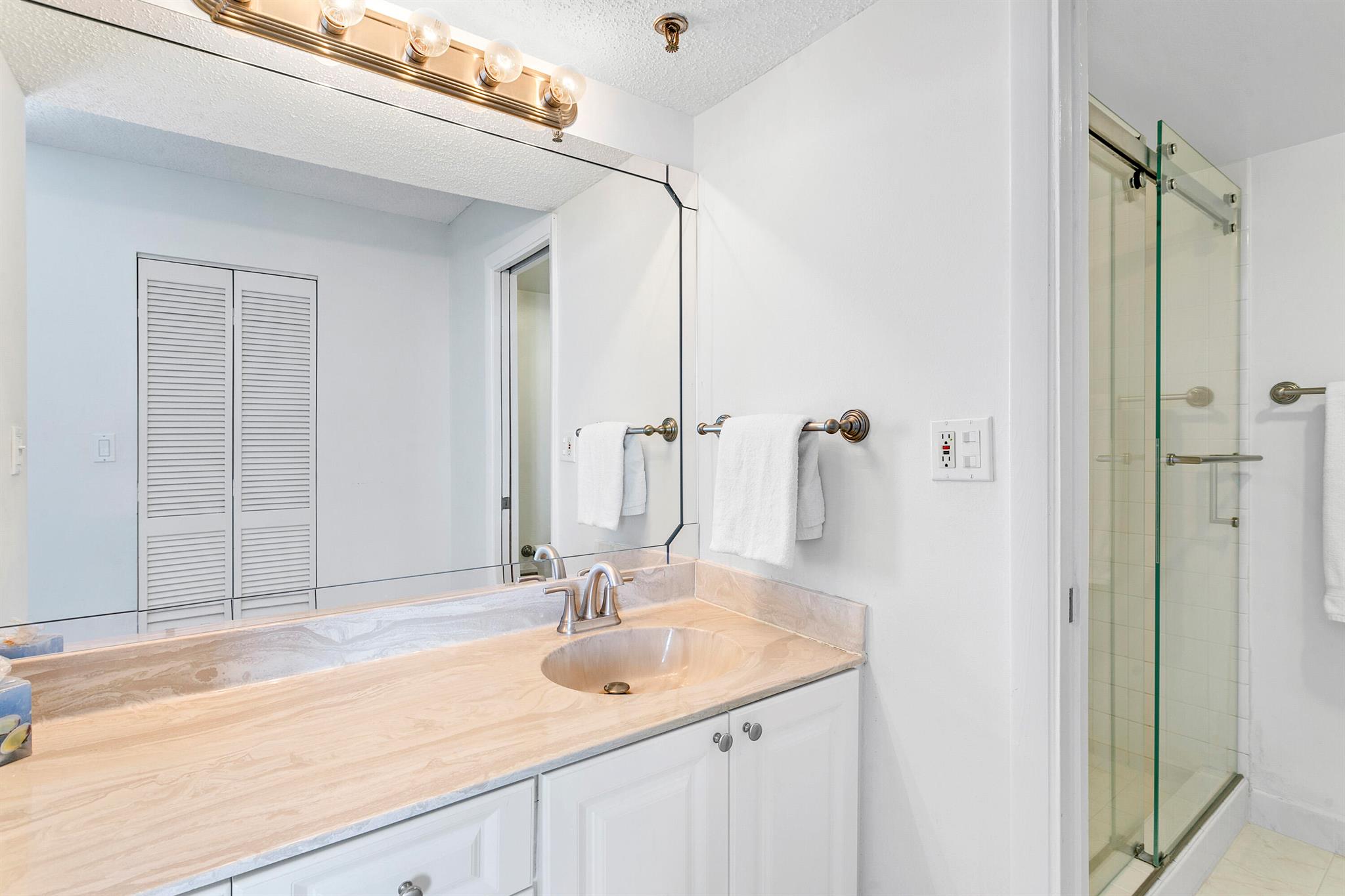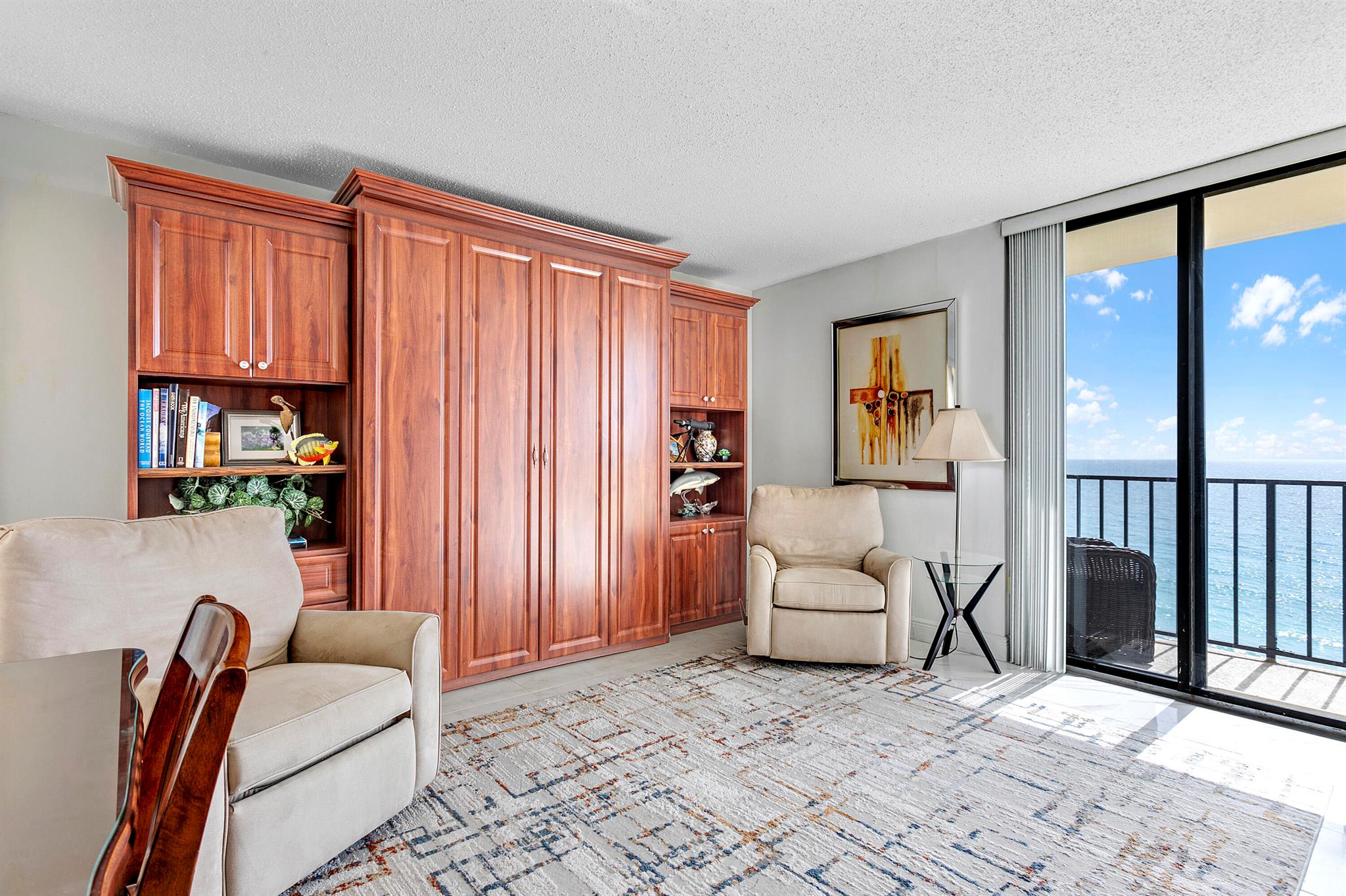 Single month rental Dec 2025 or April 2026. This 5th floor OCEAN END UNIT has 2 bedrooms and 2 baths and sits directly on the beach in Jupiter. Ocean end units are larger than the interior condos, and each bedroom faces due east for the best ocean view. King primary bedroom and the 2nd bedroom is a queen murphy bed. There are TVs in both bedrooms - 3 TVs in total. The oversized main balcony off the living room is shady all day with a view to the Jupiter Inlet. Amenities include heated pool and spa, sauna, fitness room, social functions, tennis with an active pro shop, gated entry, secure under building parking, and of course direct beach access. Ocean end units are very popular, and rarely available to rent. This is the only one