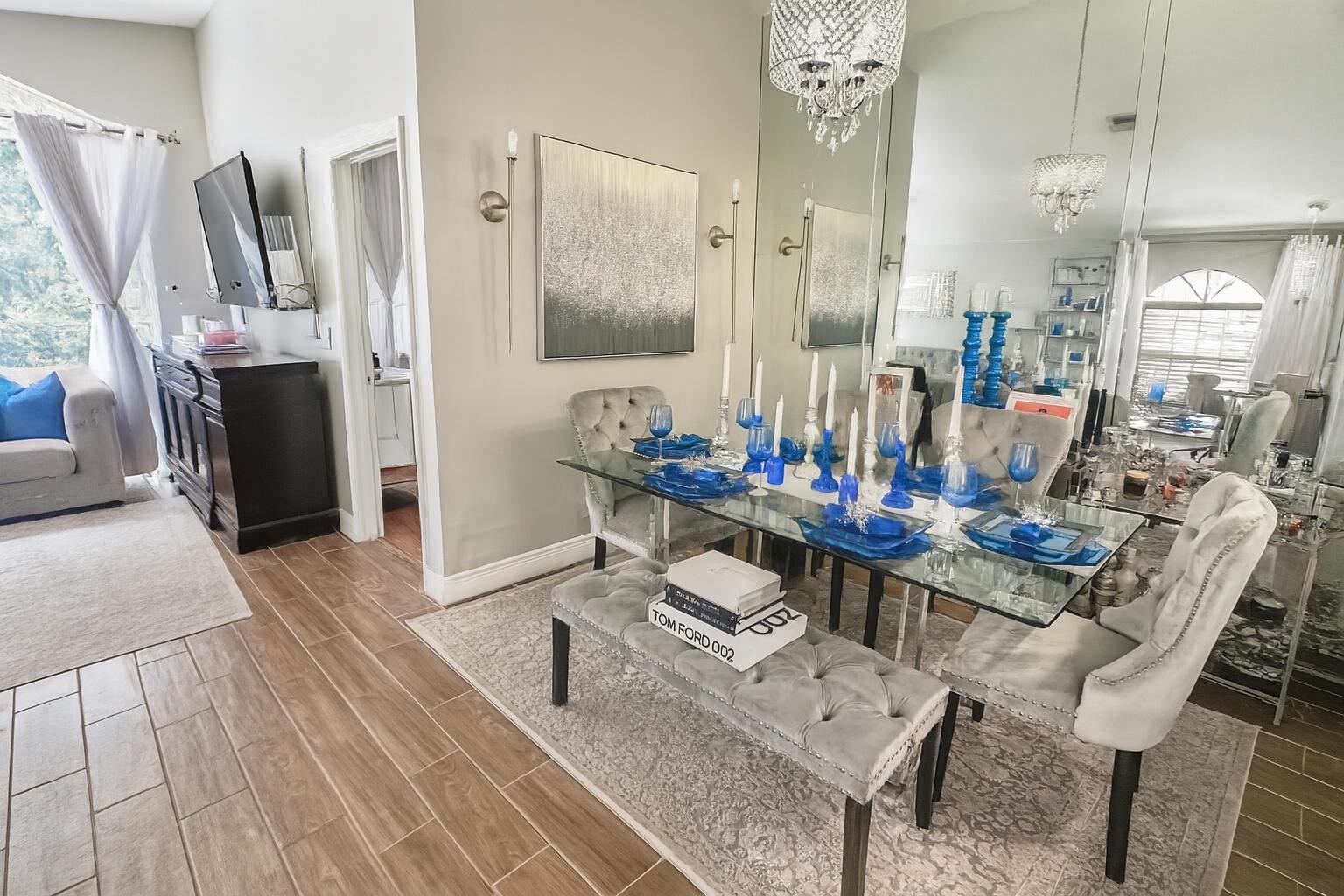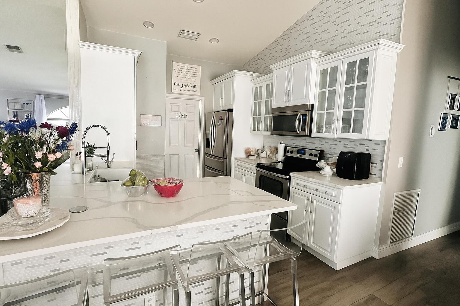 Don't miss out on this amazing opportunity to rent a FULLY FURNISHED, renovated, gorgeous 3 bedroom, 2 bath home! Enjoy the wood look tile flooring, renovated gourmet kitchen that boasts quartz countertop, decorative tiled back splash, large island & stainless steel appliances! Guest will enjoy the STUNNING bathroom that features a new vanity and designer shower! The primary ensuite is generously spacious with a walk-in closet & spa-like bathroom. This home is equipped with a ''Smart Home'' feature which means the lights, fans, a/c, TV's & sprinkler are all connected! There is also a Generator hookup. Villages of Woodlake is an all-age community that offers a community pool, tennis courts, basketball courts & conveniently located to shopping, dining & places of worship!
