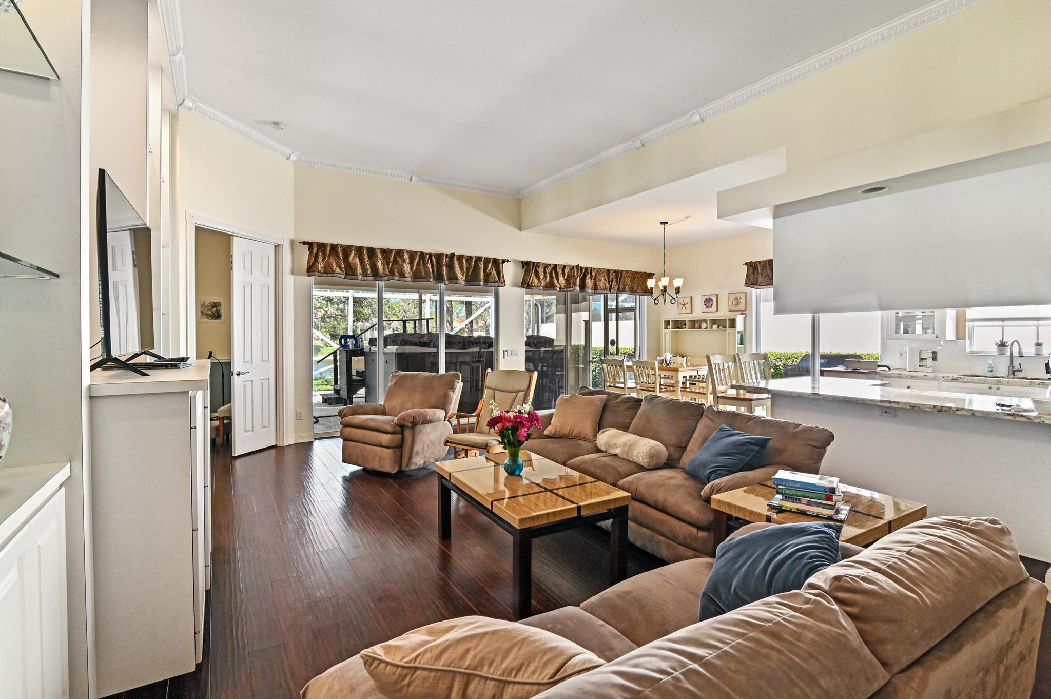 Elegant and spacious home in the exclusive community of Riverwalk. Open concept 2 bedroom 2 bath plus den home with garage for 1 car and complete gym! BBQ Grill, screened-in patio overlooking the lake with a swim spa. Massive master suite with dual sinks and spa tub. High ceilings with crown molding and laundry room inside. Located just minutes from the Turnpike, I-95, Wellington, Boynton Beach, Downtown West Palm Beach, gorgeous area beaches, and 3 international airports.