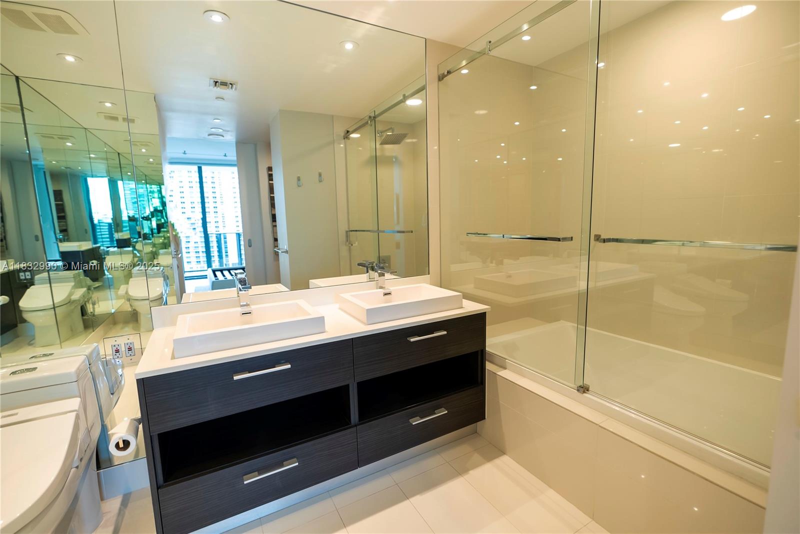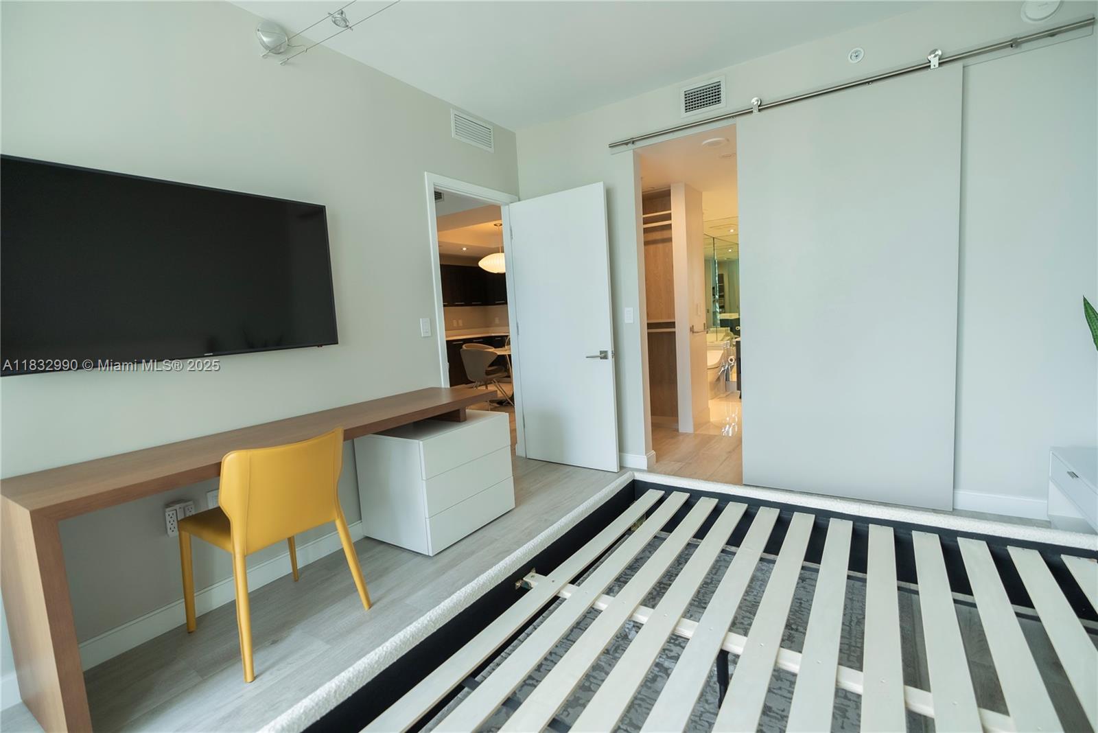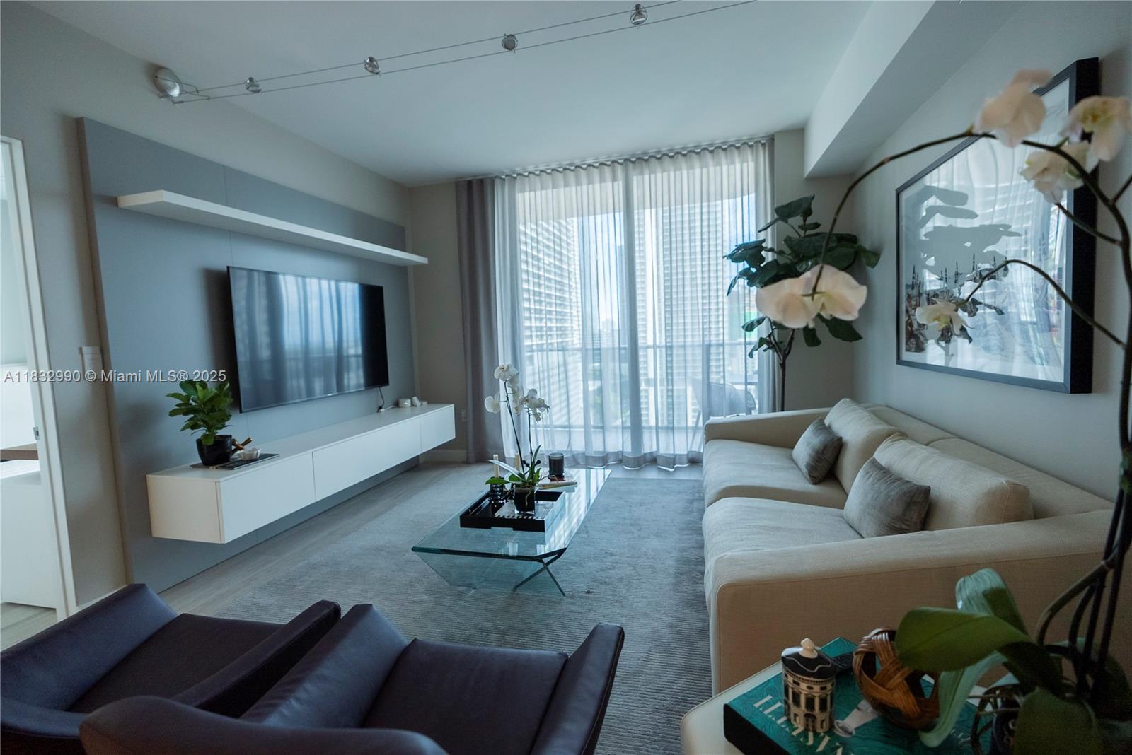 MOVE-IN READY luxury at Brickell Heights! This impeccably furnished 1BD+DEN/2BA unit lives like a 2-bedroom, with a bedroom that can function as a custom high-end walk-in closet. Features include full mirrored master bath, smart home upgrades with Lutron switches and Nest thermostat, and Toto washlet. Designer furnishings from Anima Domus. Open kitchen with premium appliances, elegant finishes, and floor-to-ceiling windows showcasing vibrant city views. Enjoy access to rooftop pool, Equinox gym, spa, kids’ room, theater, and 24/7 concierge. Steps from Brickell City Centre. Artwork/personal items negotiable. Can be rented SHORT-TERM but no dogs allowed.