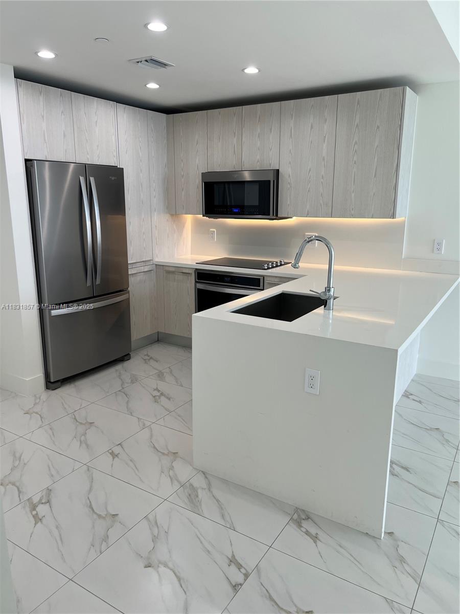 Modern and spacious 2bed / 2bath condo for rent at the iconic Metropica in Sunrise! Located on the 21st floor with stunning panoramic views, this unit features an open-concept layout, floor-to-ceiling impact windows, European-style kitchen with quartz countertops and Whirlpool stainless steel appliances, and sleek porcelain tile flooring throughout. Enjoy resort-style amenities including a rooftop pool, fitness center, spa, business center, tennis court, 24-hour concierge, valet, and more. Washer/dryer in unit. Assigned parking included. Walk to shopping, dining, and entertainment at Sawgrass Mills. Available for immediate move-in! Easy to show. Move in with First Month and Security Deposit only with good Credit!