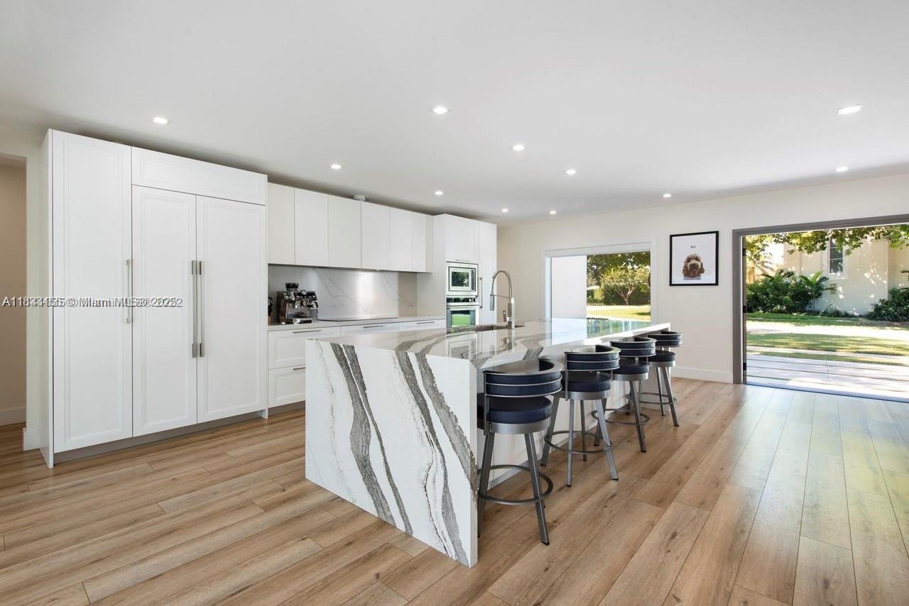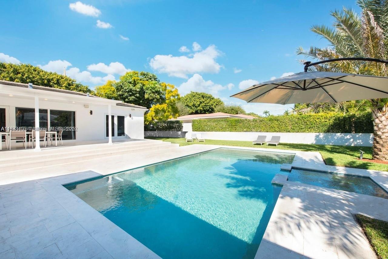 Completely renovated and located in the heart of Miami Shores, this beautiful home offers comfort, style, and smart features. The open-concept layout includes an oversized island and sliding glass doors that lead to a covered patio and private pool, perfect for relaxing or entertaining. The split-bedroom design provides a spacious master suite for added privacy. Enjoy clean, filtered water from a full-house water filtration system. Smart home features include a Ring video doorbell, Ring security cameras, Nest thermostats, smart lock, and Ring smoke/CO2 detectors. Detached two-car garage included. Rent covers landscaping and pest control for a worry-free experience.