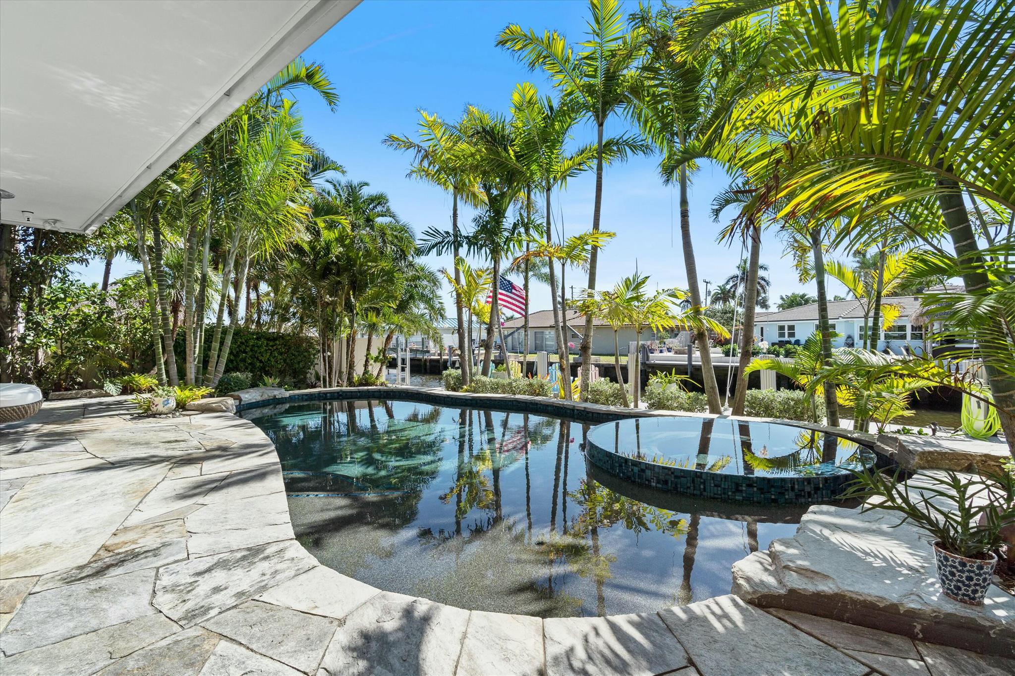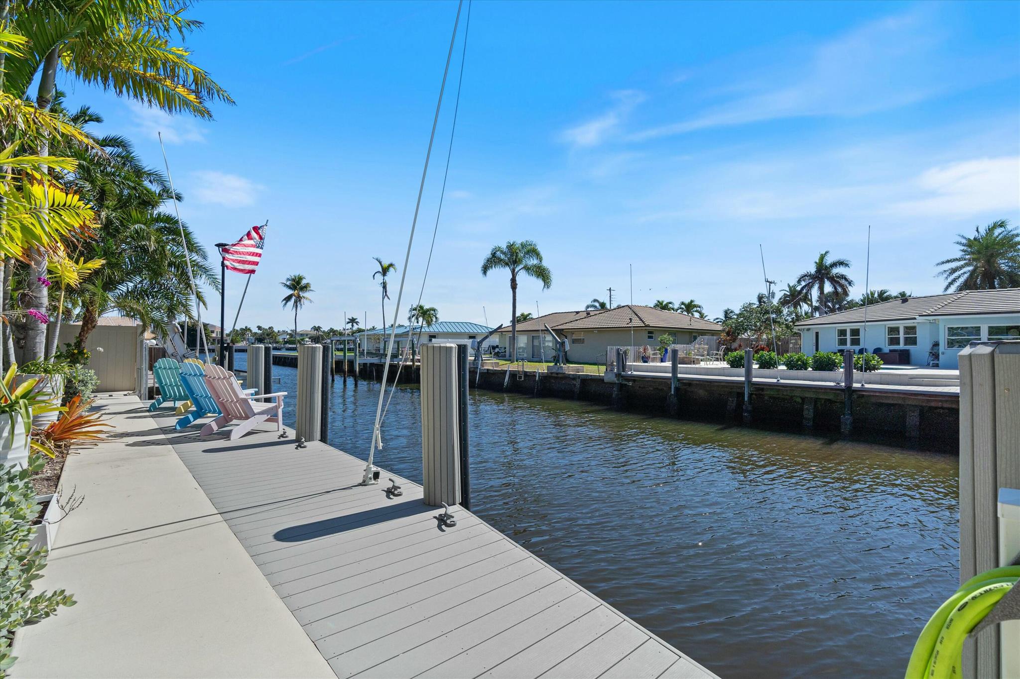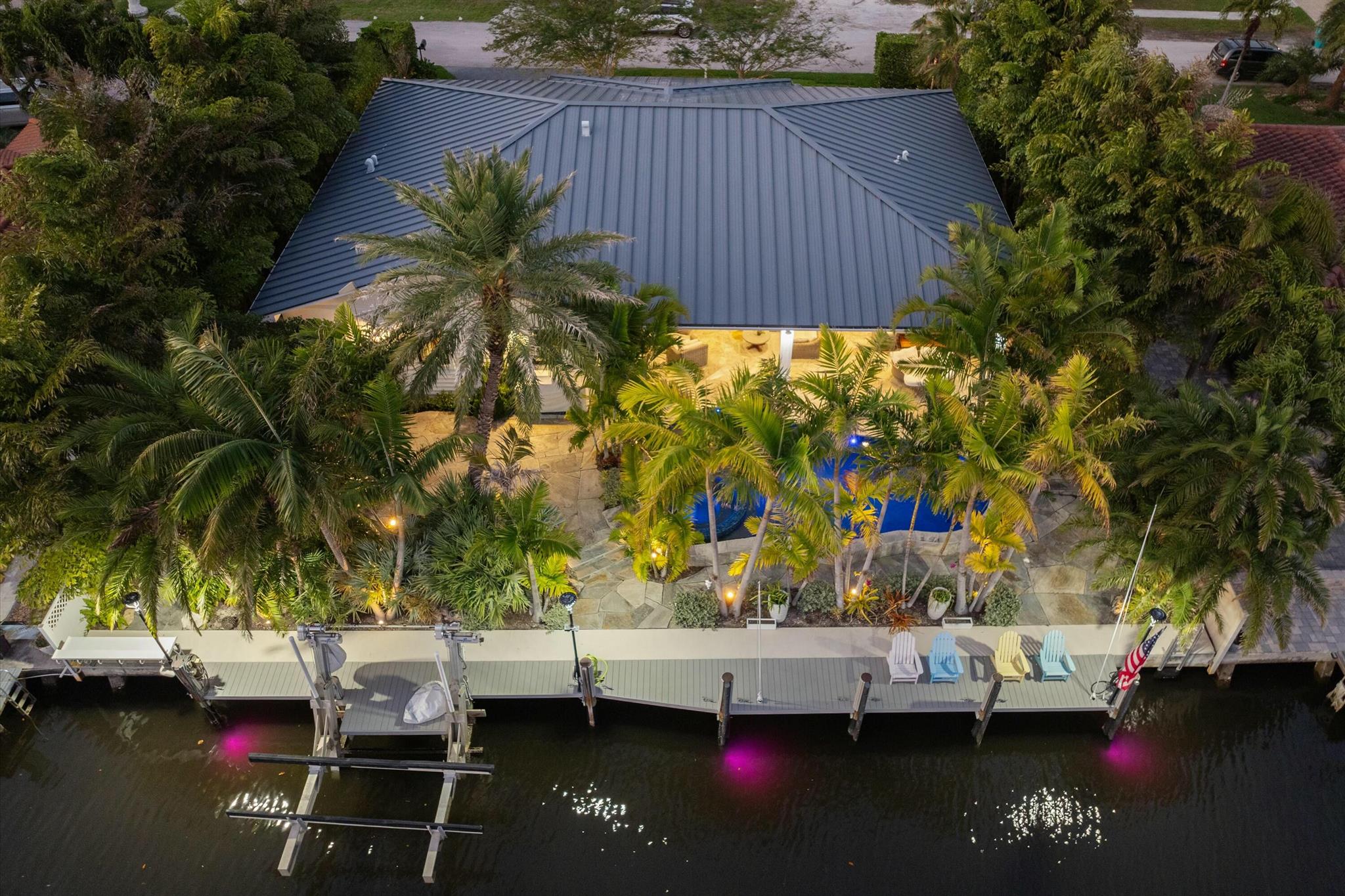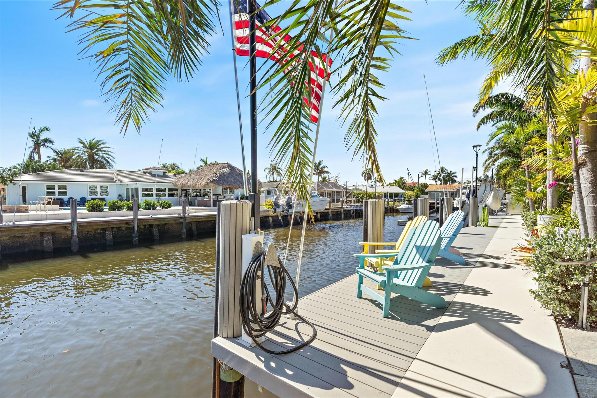This exceptional waterfront residence has been completely rebuilt from the ground up, with only one original garage wall retained to meet city remodel regulations. Elevated to enhance views and offer added storm protection, the home, back patio, and dock sit on a raised lot that maximizes both lifestyle and longevity. Boating enthusiasts will appreciate the 90 feet of prime waterfrontage, complete with a private dock, 20,000-pound boat lift, wet slip for vessels up to 50 feet, water and electric hookups, and a built-in filet station. With direct ocean access and no fixed bridges, the inlet is just two miles away--making this a rare opportunity to own a true boater's paradise.The home is available fully turnkey, complete with fine furnishings and all the daily essentials. It is truly