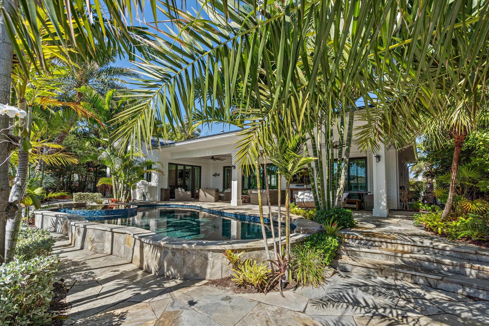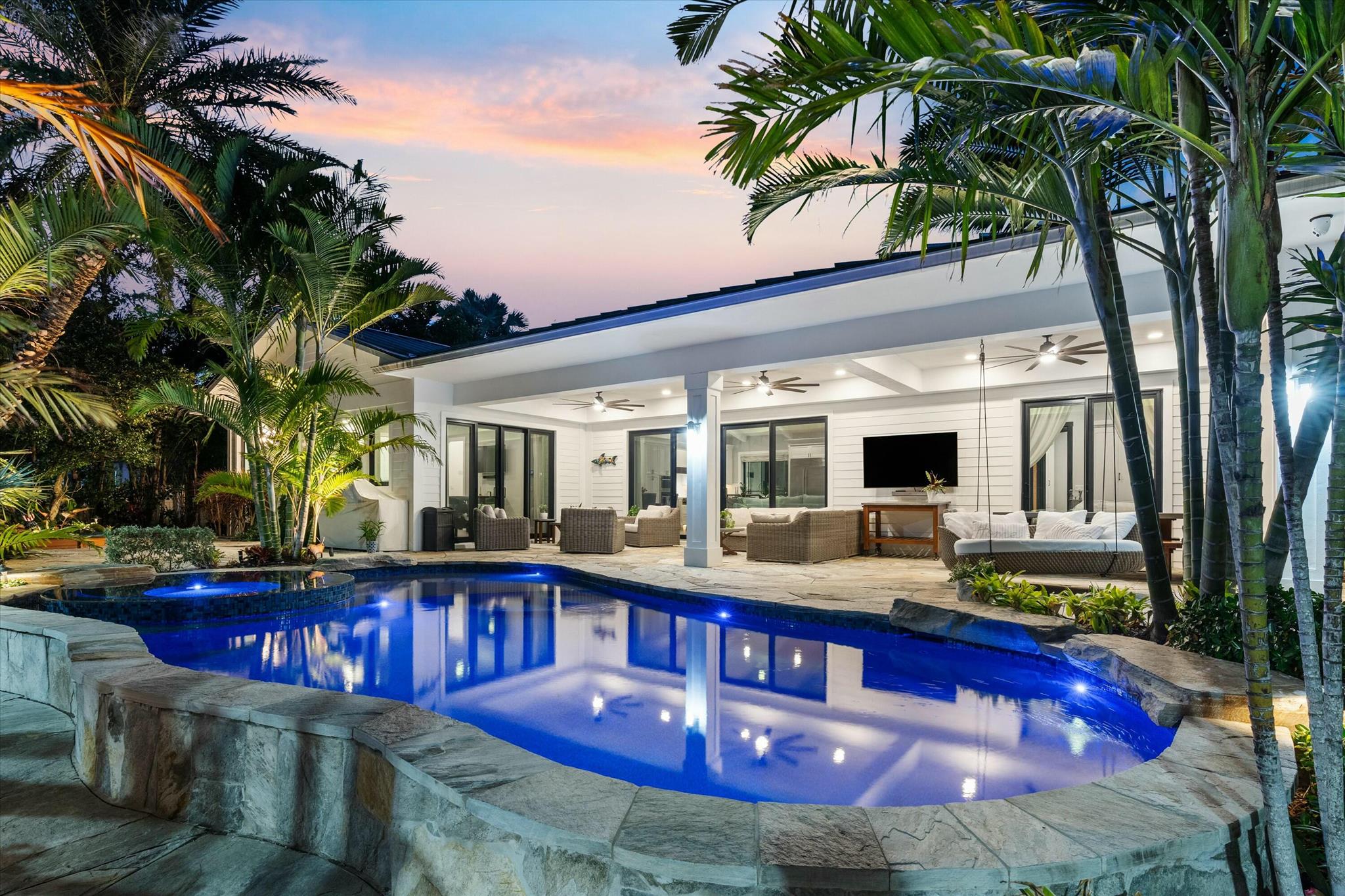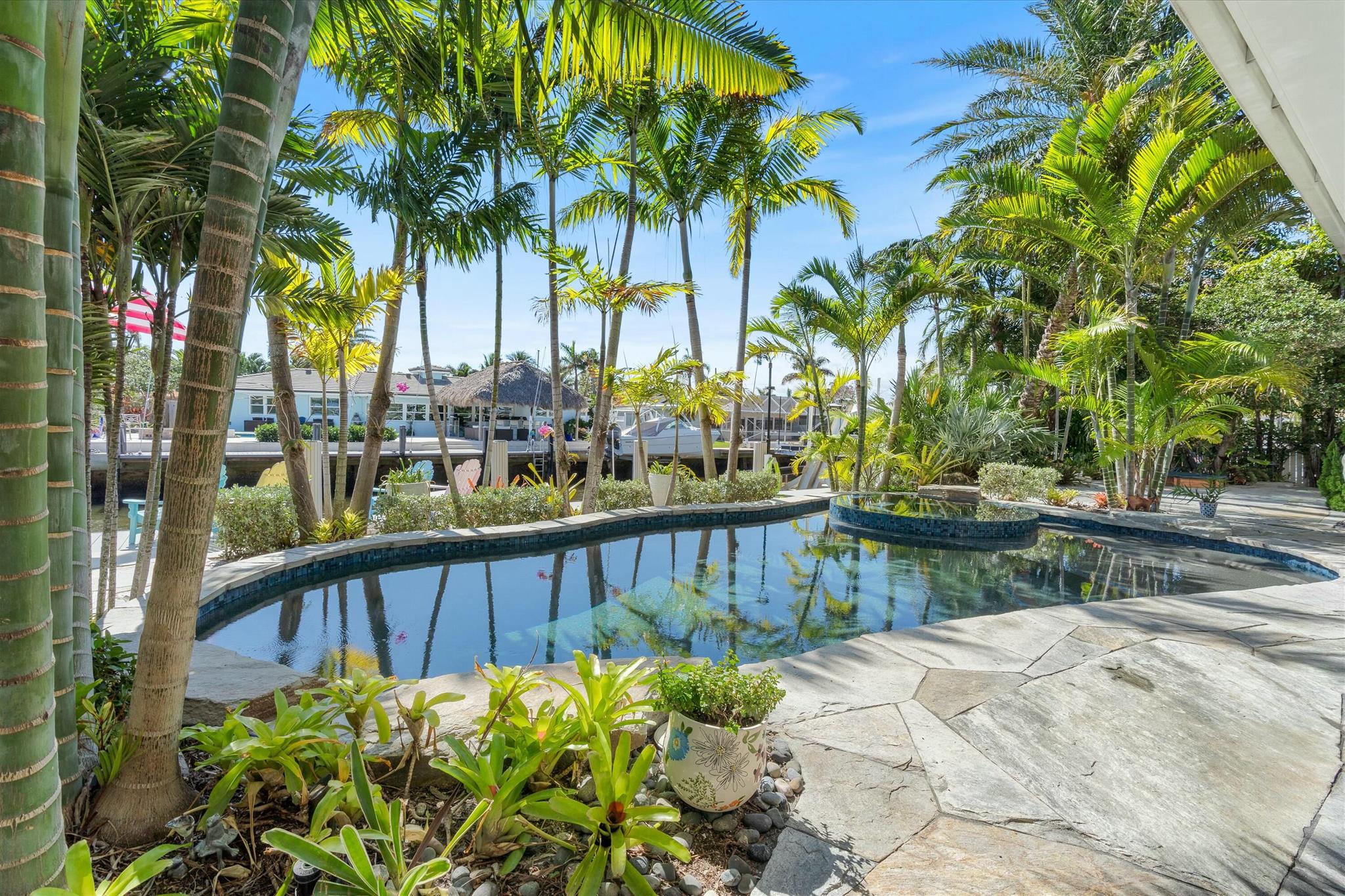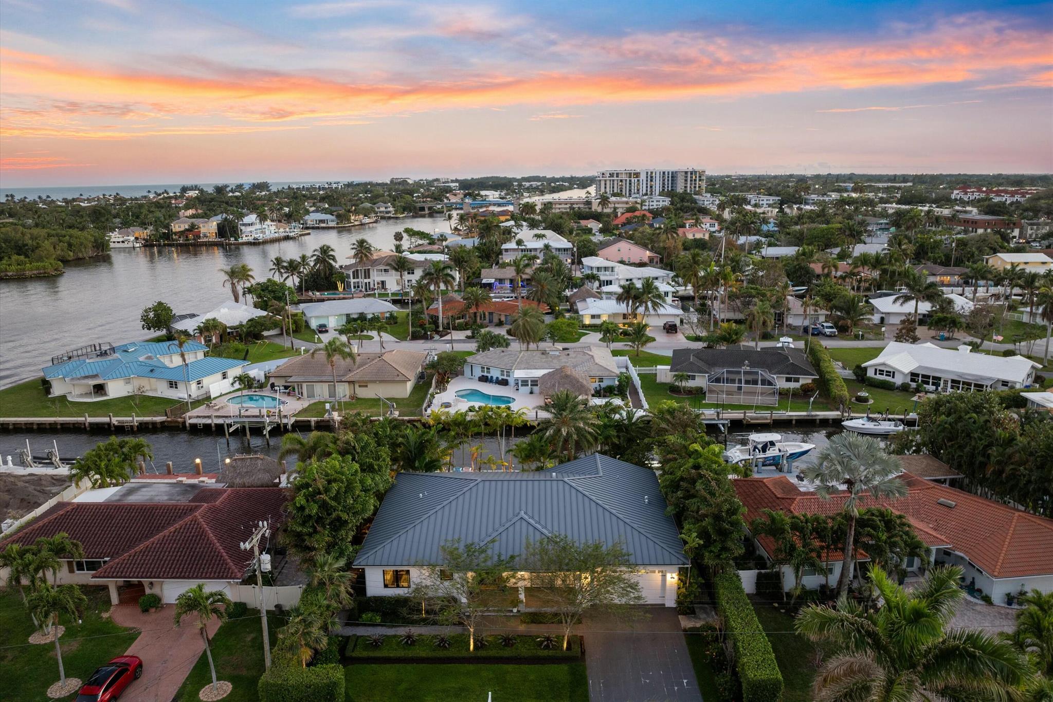 This exceptional waterfront residence has been completely rebuilt from the ground up, with only one original garage wall retained to meet city remodel regulations. Elevated to enhance views and offer added storm protection, the home, back patio, and dock sit on a raised lot that maximizes both lifestyle and longevity. Boating enthusiasts will appreciate the 90 feet of prime waterfrontage, complete with a private dock, 20,000-pound boat lift, wet slip for vessels up to 50 feet, water and electric hookups, and a built-in filet station. With direct ocean access and no fixed bridges, the inlet is just two miles away--making this a rare opportunity to own a true boater's paradise.The home is available fully turnkey, complete with fine furnishings and all the daily essentials. It is truly