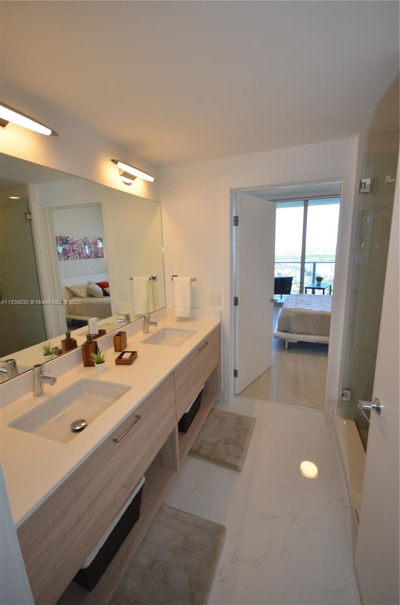 UNIT IS FURNISHED BUT FURNITURE CAN BE REMOVED UPON REQUEST. Beautiful 1 Bedroom, 1 Den converted to a small bedroom, 2 Bath, 1 Parking, Exercise Room, Child Play Area, Community Pool, Spa and Amazing views!!! Unit has the best view on South tower. One assigned parking spot in 6th floor. Can be shown at anytime.