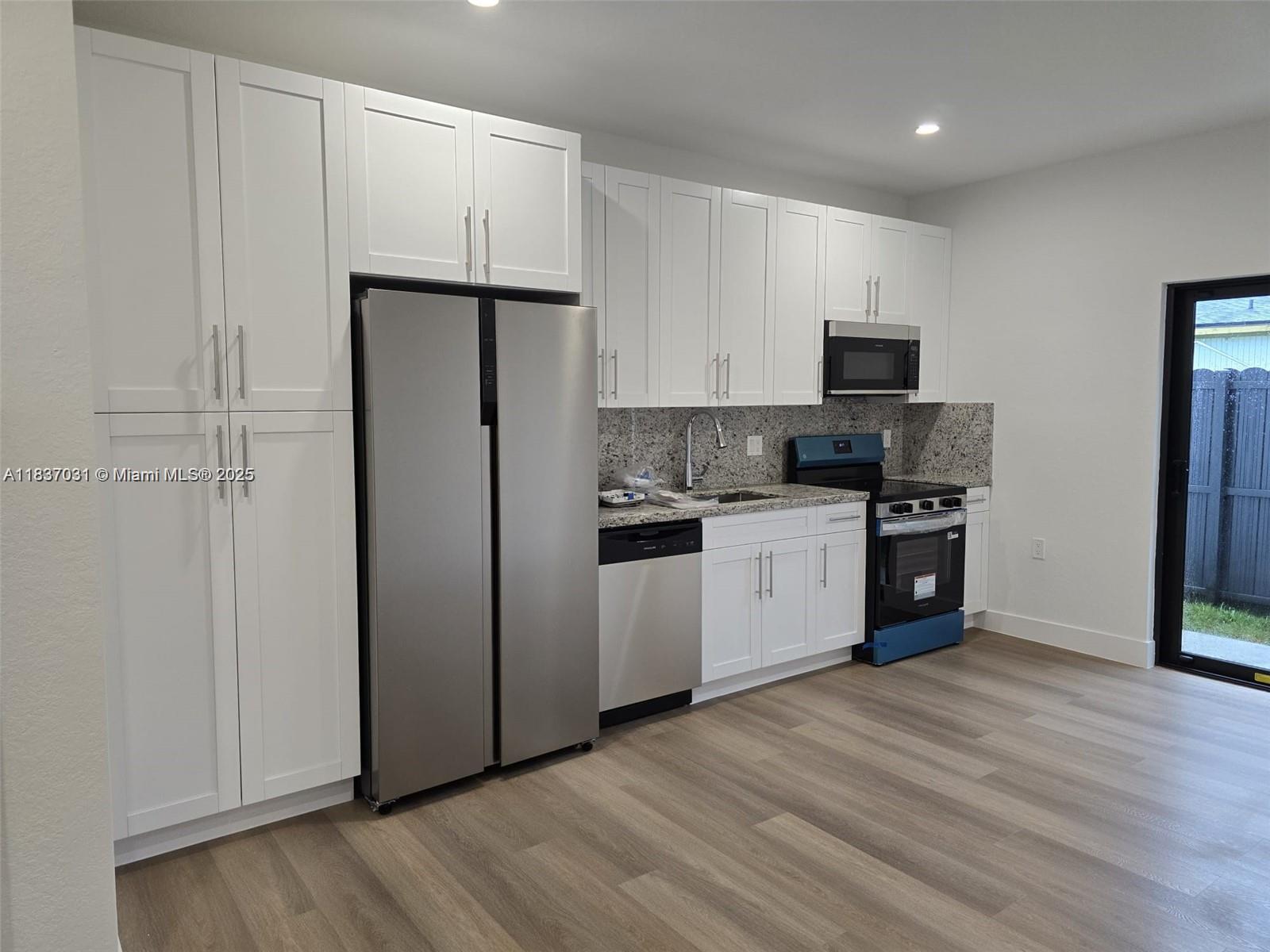 Be the first to enjoy this brand-new, clean, and bright 4-bedroom, 2-bathroom unit! Everything is spotless and ready for you. Cook with ease in your beautiful kitchen, equipped with brand-new appliances, and say goodbye to laundry rooms with a washer and dryer included. For added security and peace of mind during storms, this home features impact windows and doors. The master suite has its own bathroom, a spacious walk-in shower, and plenty of closet space. Plus, it features a shaded outdoor patio and convenient parking right outside your door. Sectiom 8n Approved