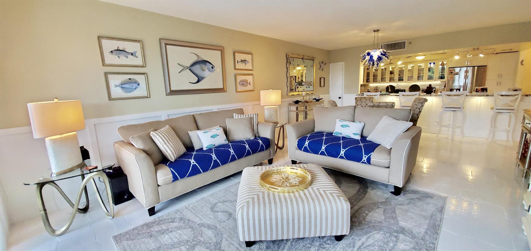 Coastal Elegance in a resort-like setting is what you'll enjoy from this 2BR/2BA, 1800 sq.ft. bright and welcoming Seaside Residence. Open gourmet kitchen, custom lighting, a soothing color palette, and welcoming and tranquil Coastal Accents throughout! Lush tropical garden views and QUIET ENJOYMENT in Boca Highland's ONLY Building to have completed its concrete restoration and PASSED it's INSPECTION!!