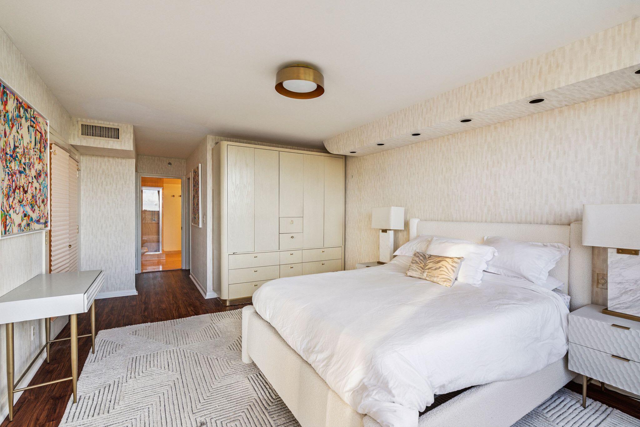 Penthouse perfection in the heart of Boca Raton. This one-of-a-kind 3-bedroom, 2-bath residence occupies the entire floor, offering total privacy and panoramic views in every direction. With no shared walls and direct elevator access, this exclusive unit includes an expansive 1,800+/- square foot private rooftop terrace -- ideal for entertaining, sunbathing, or enjoying the sunrise and sunset with unobstructed views to the east, north, south, and west. Inside, the home is rich with character and elevated finishes, including elegant custom built-ins, curved architectural walls, and a classic built-in bar. Hardwood, marble, and laminate flooring flow throughout the living spaces, blending warmth and sophistication. The updated kitchen features a brand-new refrigerator and modern touches,