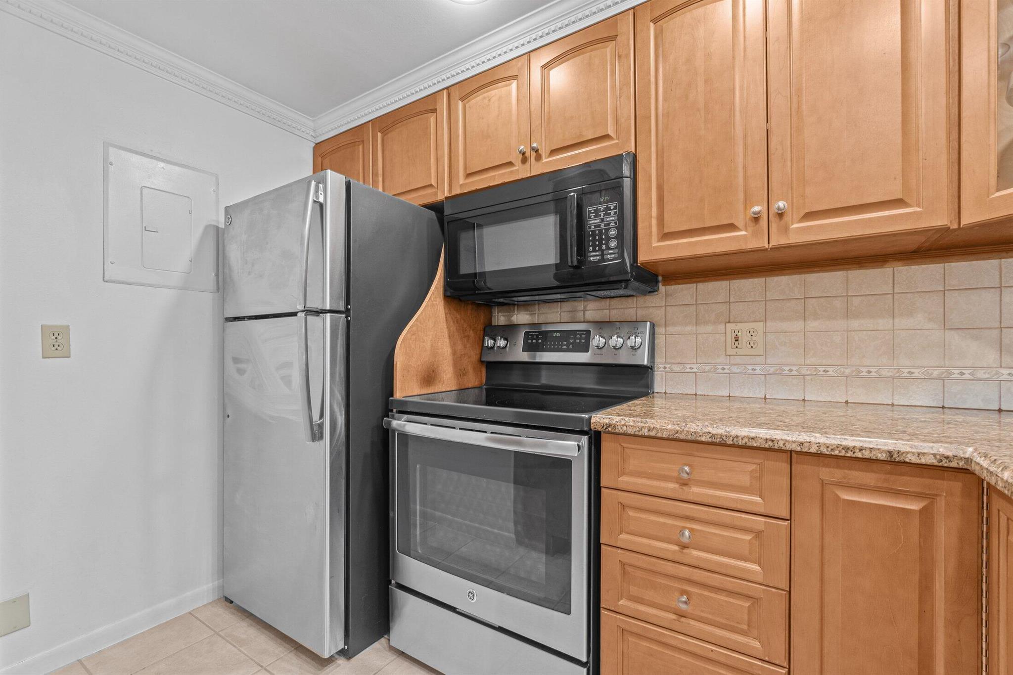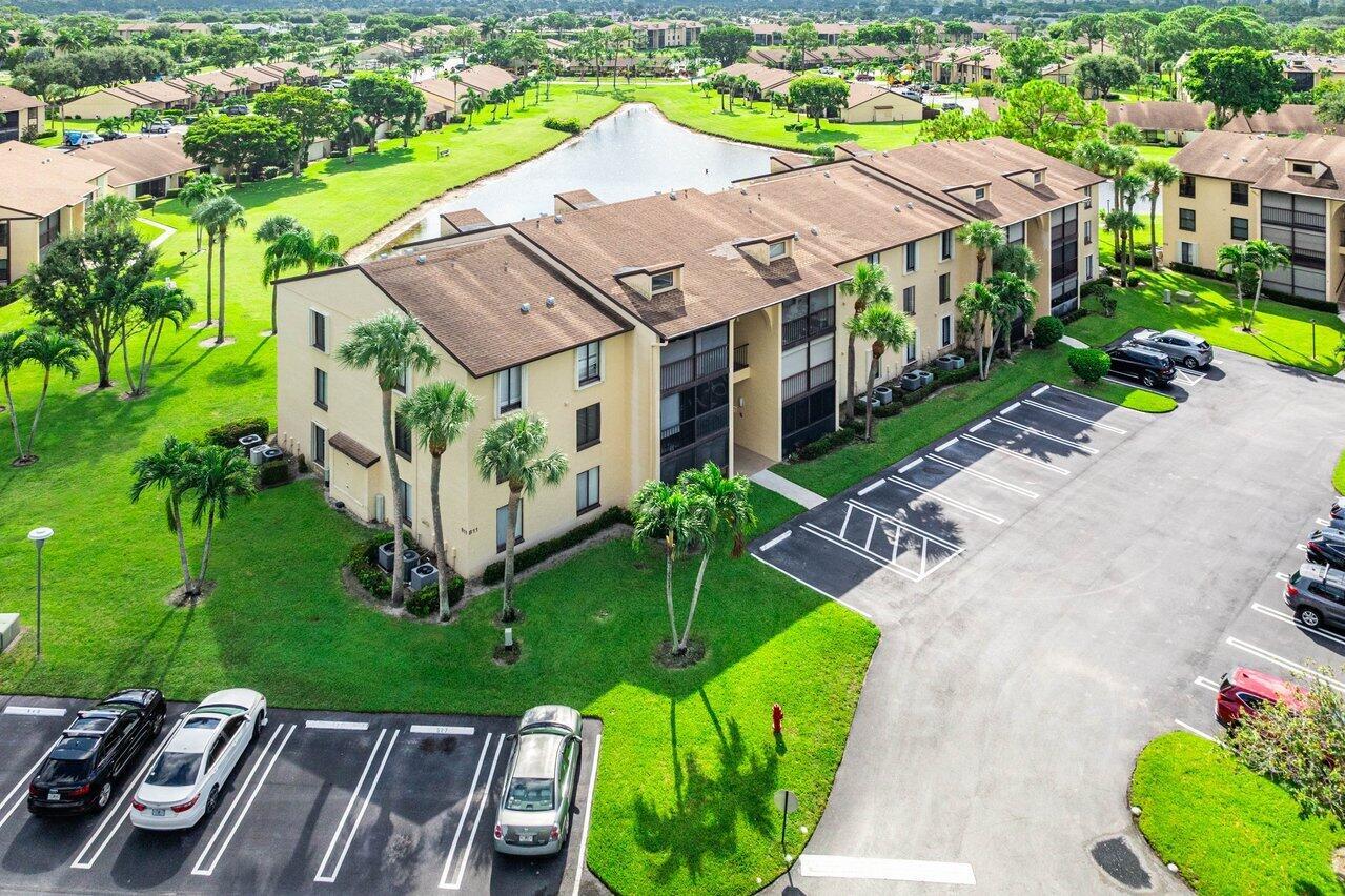 ADULT 55+ Community. Welcome to this charming 2nd floor corner unit offering 2 Bedrooms, 2 Bathrooms, bright natural light, impact windows, screened covered patio with accordion shutters. Featuring a spacious layout with tile and carpet flooring, includes remodeled kitchen with custom built cabinets with pantry, granite countertop & newer appliances. Generously sized Primary Bedroom with walk-in closet, Remodeled Master Bathroom with linen closet & walk-in shower. Monthly condo fee covers: Comcast cable, water, exterior maintenance, building insurance, 2024 roof, shared grill area & amenities, 2 vehicles permitted, pick-up trucks, motorcycles, 1 pet. Great location, close to Publix shopping center, restaurants, parks, library, beaches, airport, easy access to I-95 & Turnpike.