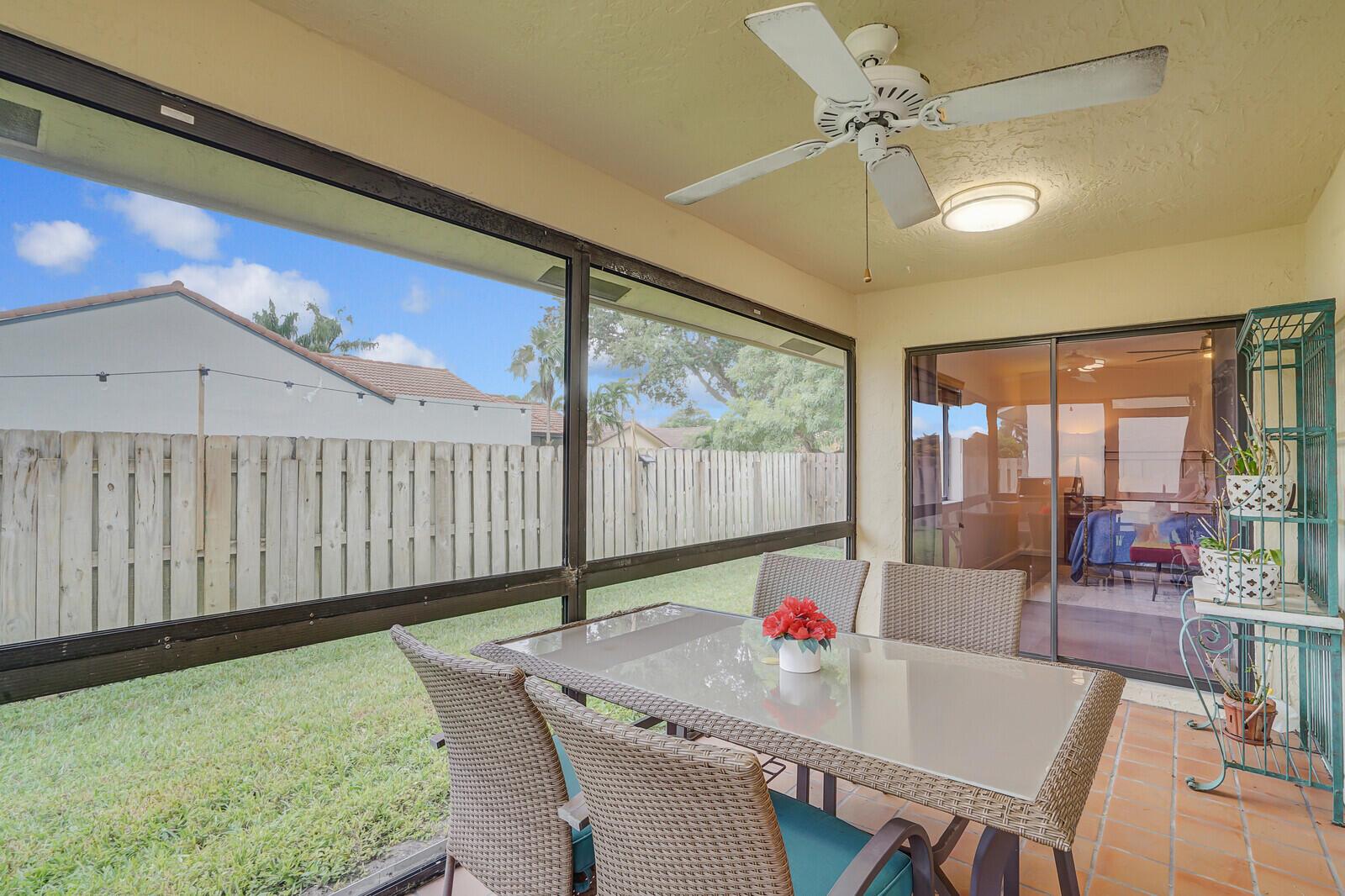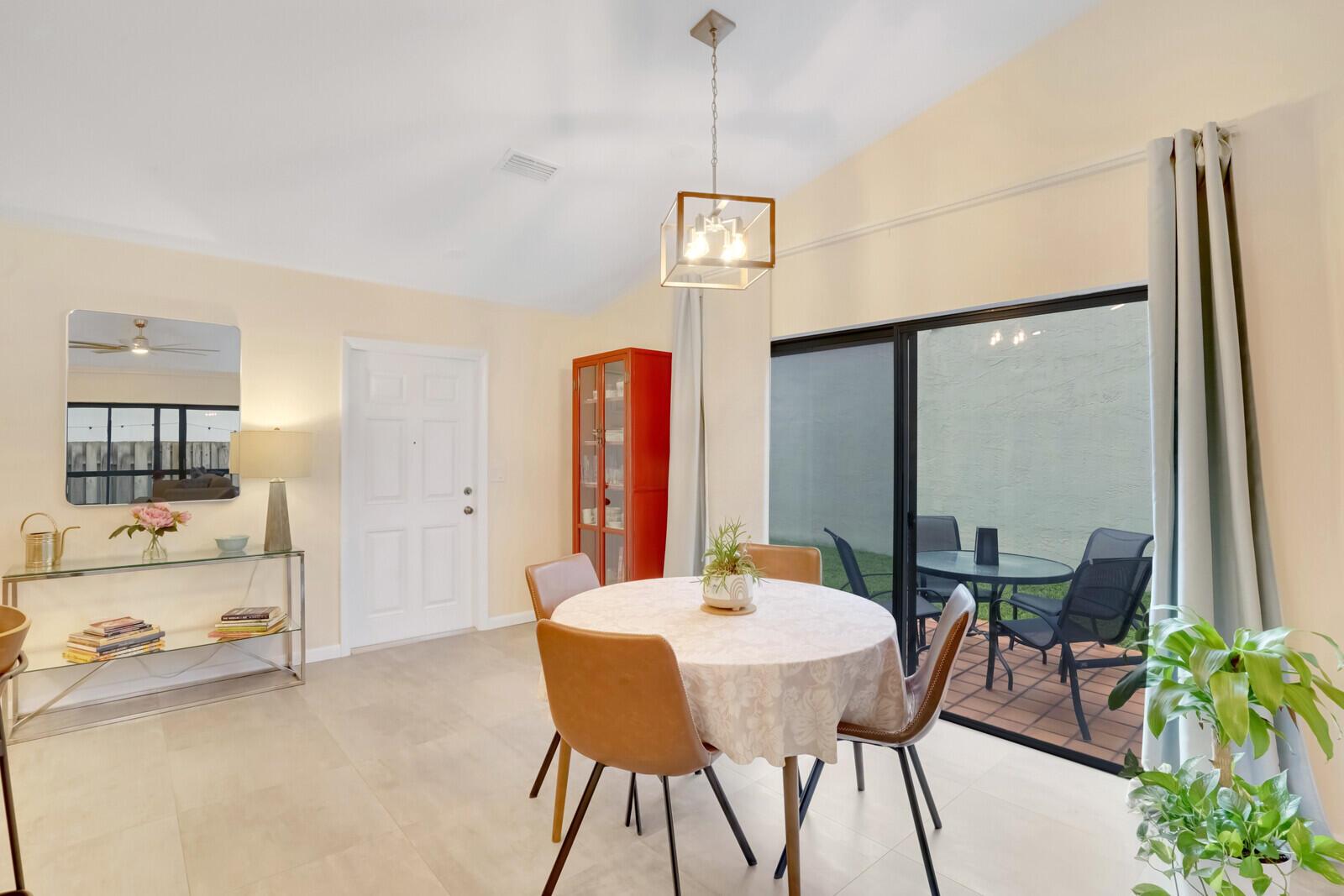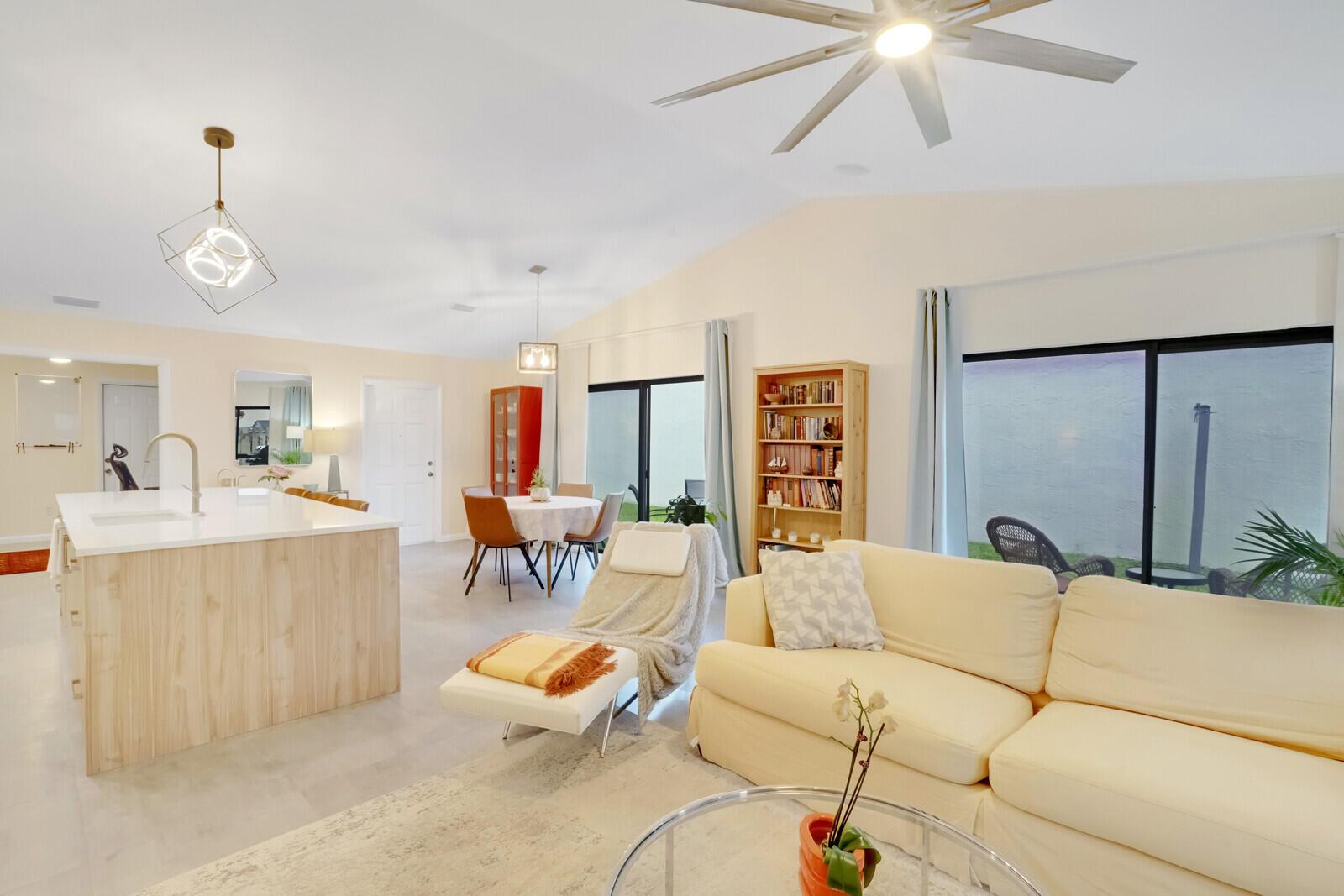 Newly remodeled family room with ample windows and views of the garden. Volume ceilings, custom lighting, kitchen island, conduction range, screened patio with outdoor seating. Bonus room: office/den. Plenty of closet space. Fully fenced garden with ample parking in a quiet Cul de Sac. Rainberry Lake is 3 miles from the beach and close to popular Atlantic Ave. Pool, tennis courts, pickle ball, basketball courts and gated community. Water and internet included.
