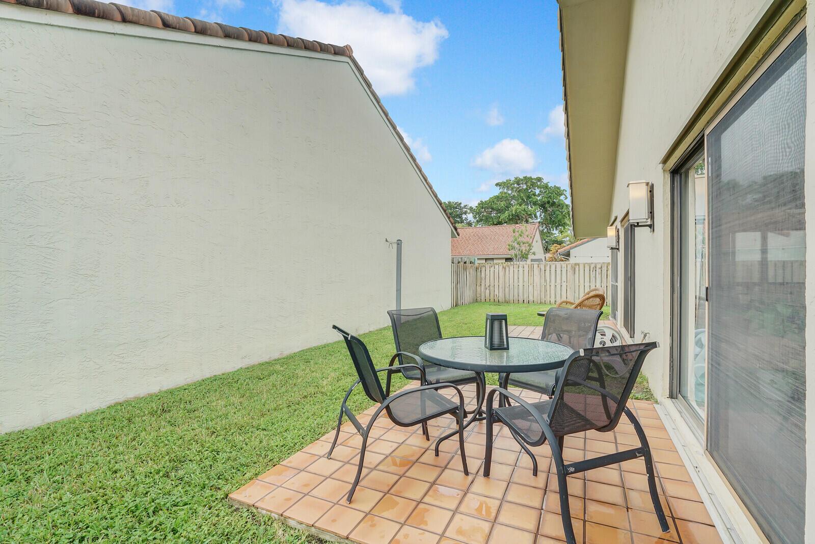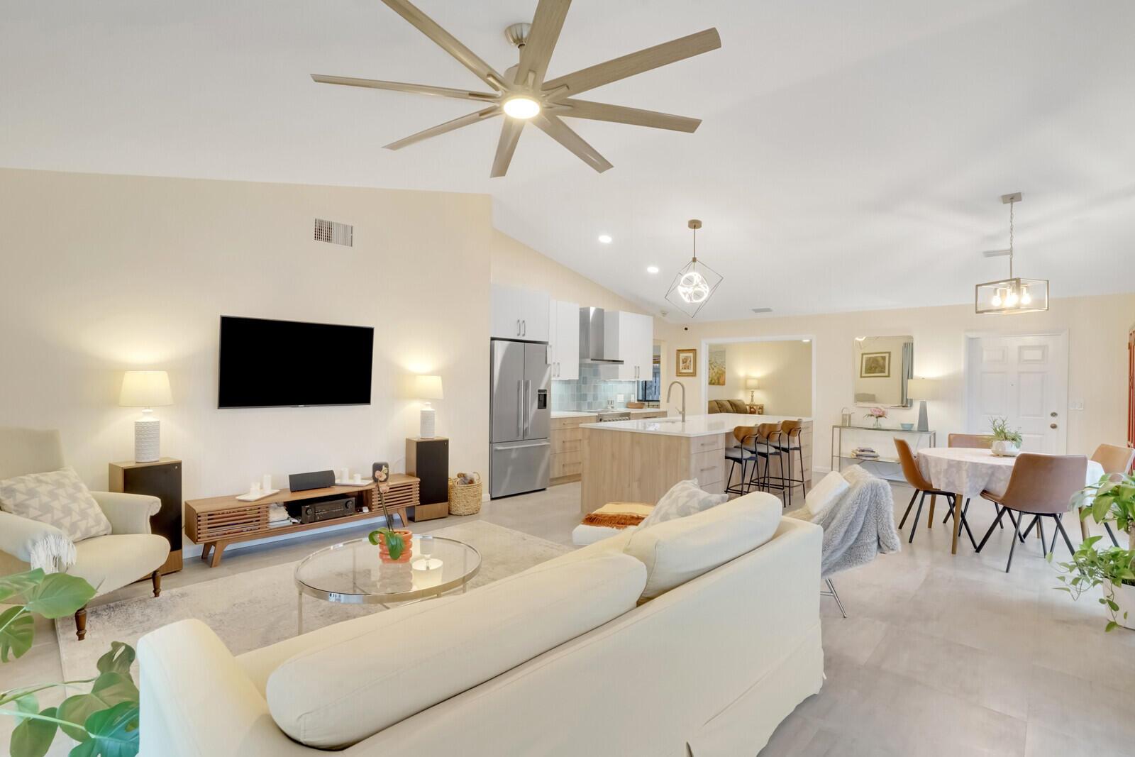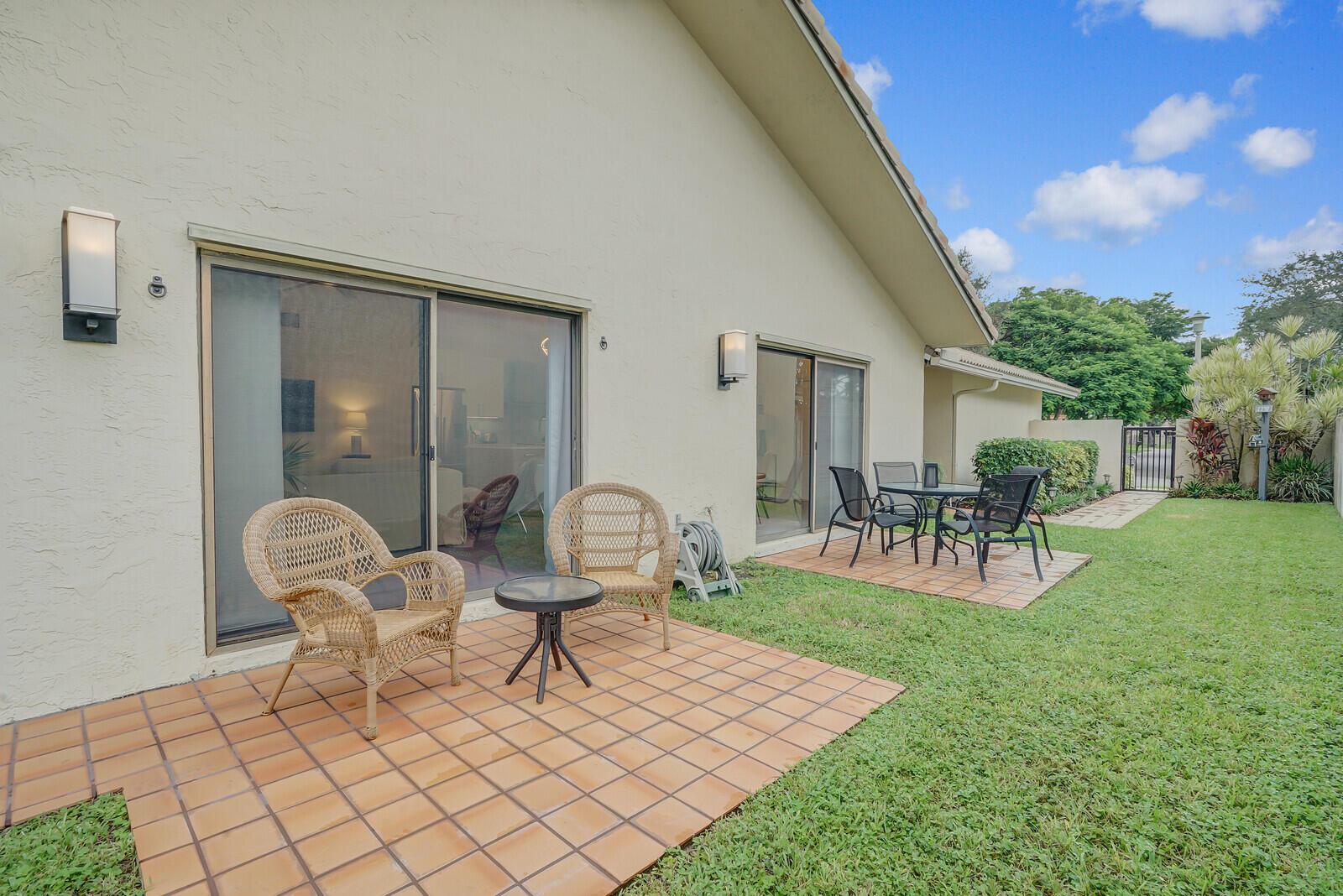 Newly remodeled family room with ample windows and views of the garden. Volume ceilings, custom lighting, kitchen island, conduction range, screened patio with outdoor seating. Bonus room: office/den. Plenty of closet space. Fully fenced garden with ample parking in a quiet Cul de Sac. Rainberry Lake is 3 miles from the beach and close to popular Atlantic Ave. Pool, tennis courts, pickle ball, basketball courts and gated community. Water and internet included.
