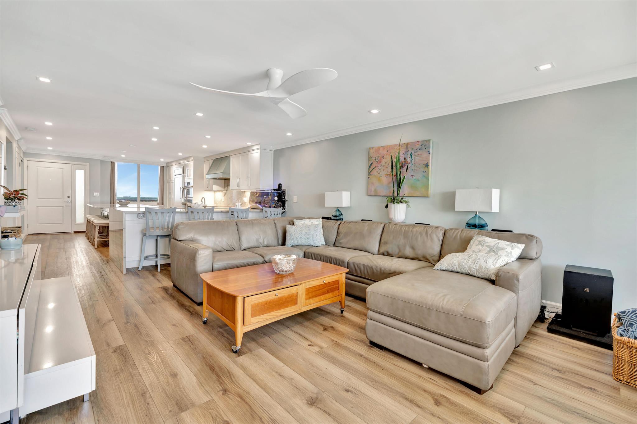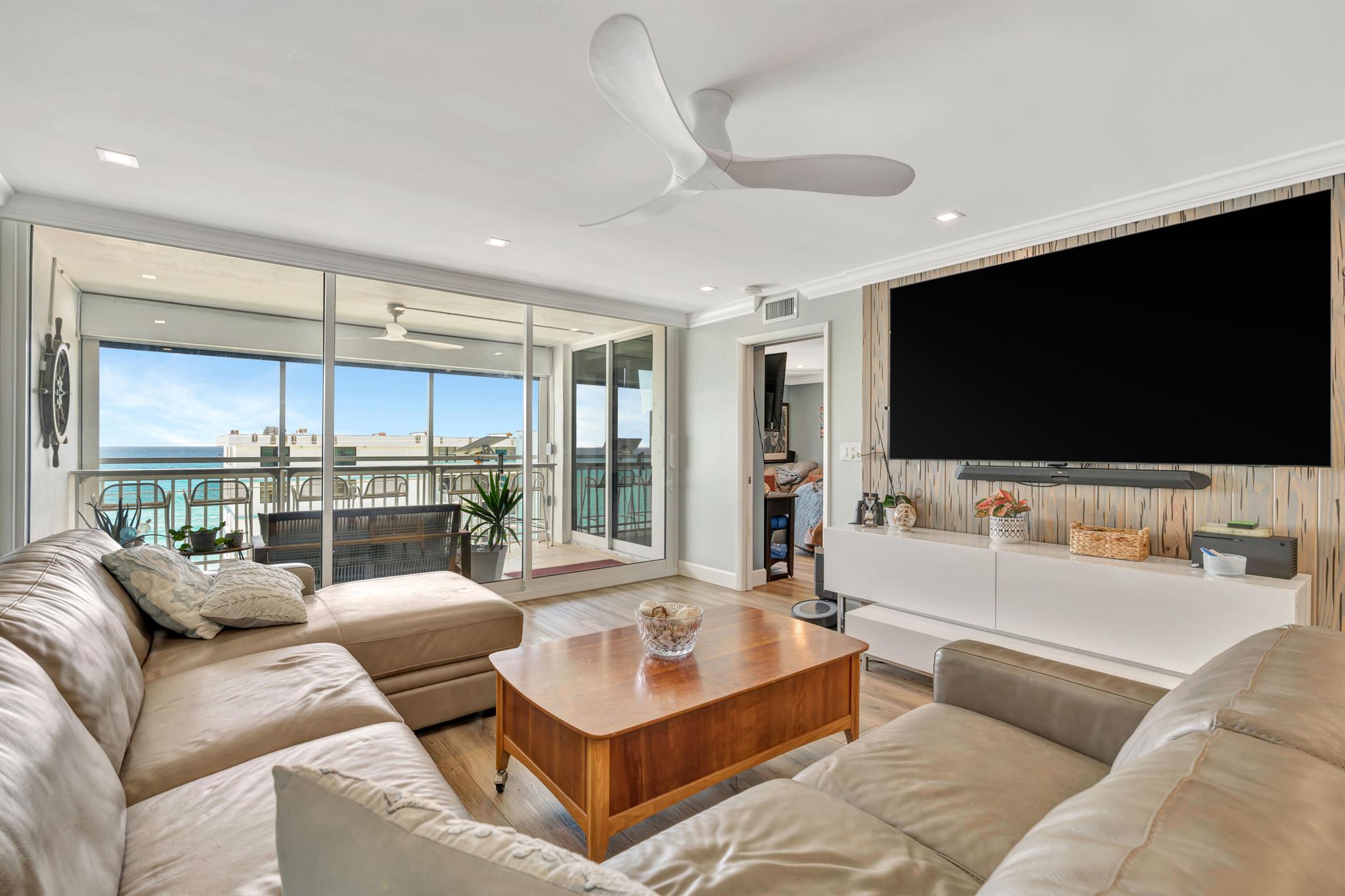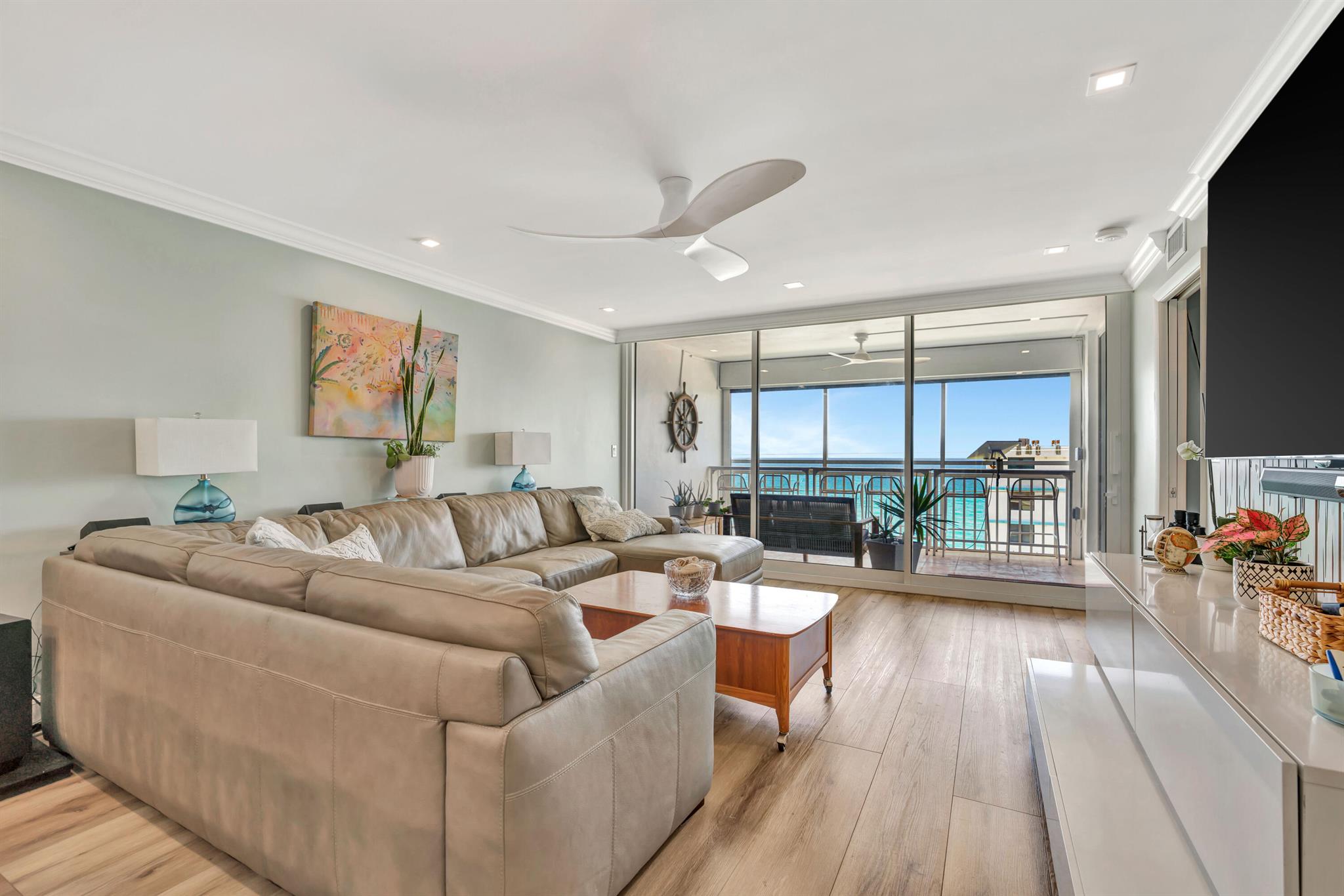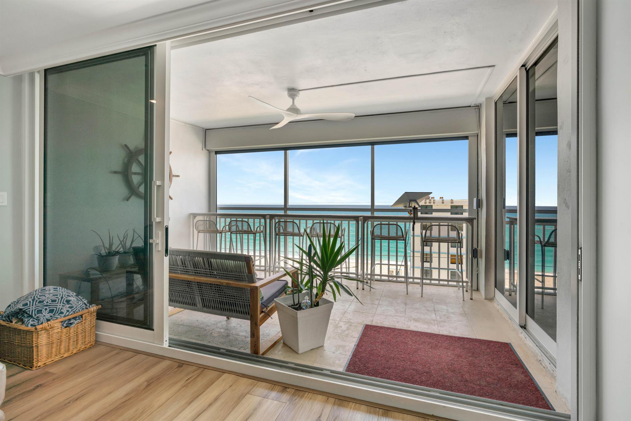 This is a 7th floor, clear North East view of the ocean with Hurricane windows. totally upgraded with a fabulous kitchen with many extras. Primary suite is directly east with a slider to the balcony. the secondary bedroom is directly across from the guest bath. Washer and dry are full size and in the condo. The balcony has and automatic remote control for an awning, a screen, and hurricane protection. This a most comfortable condo apartment with update features in the Juno beach area. Community pool and Card/Party room just off the Pool area.