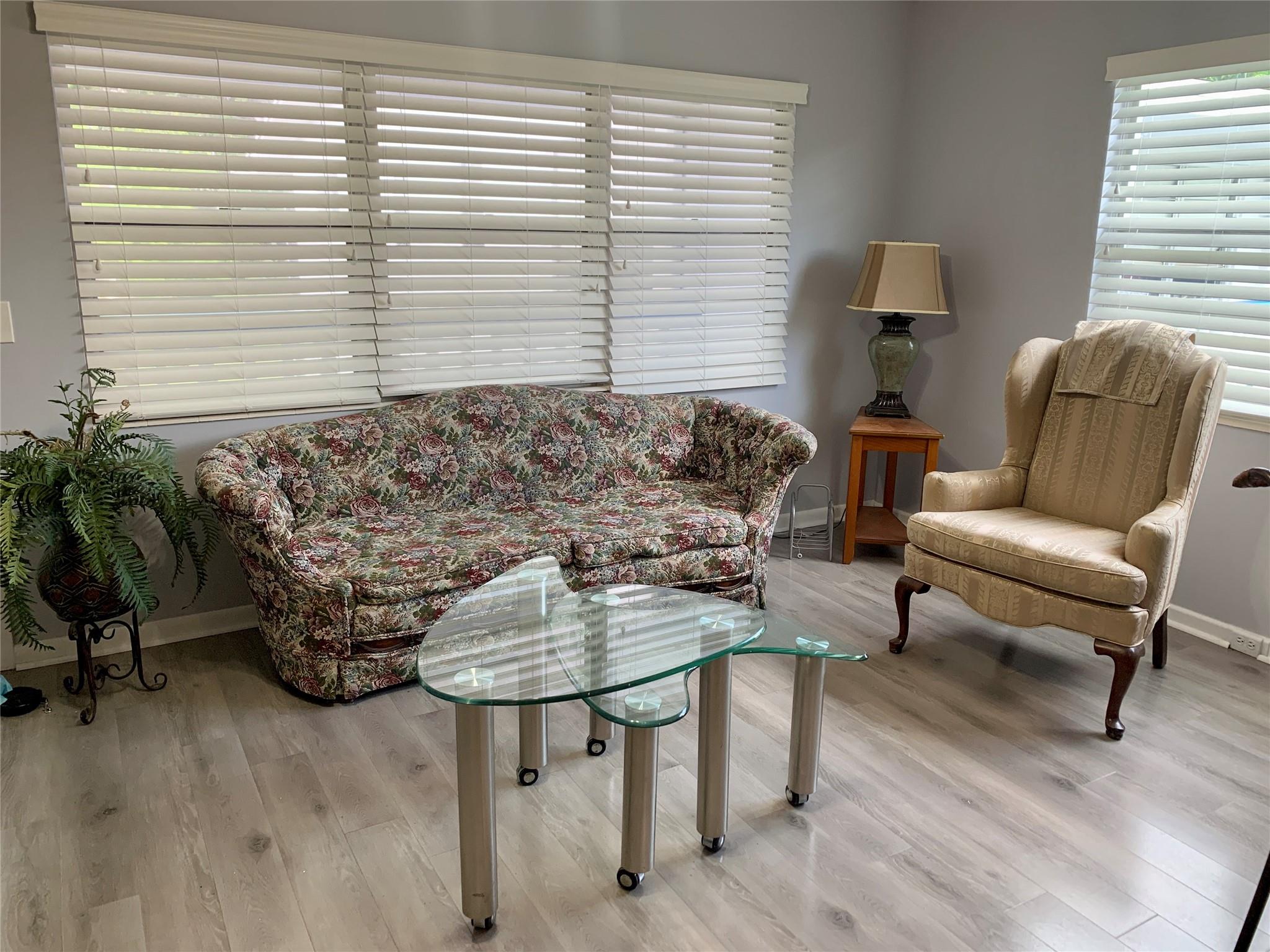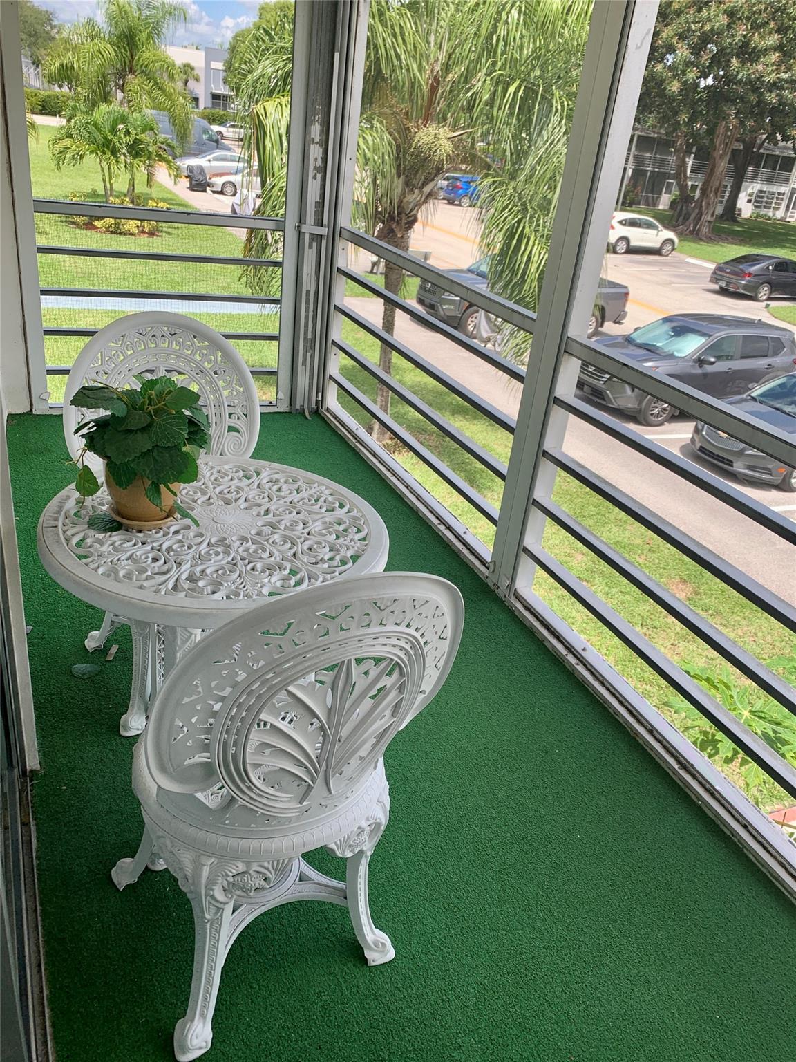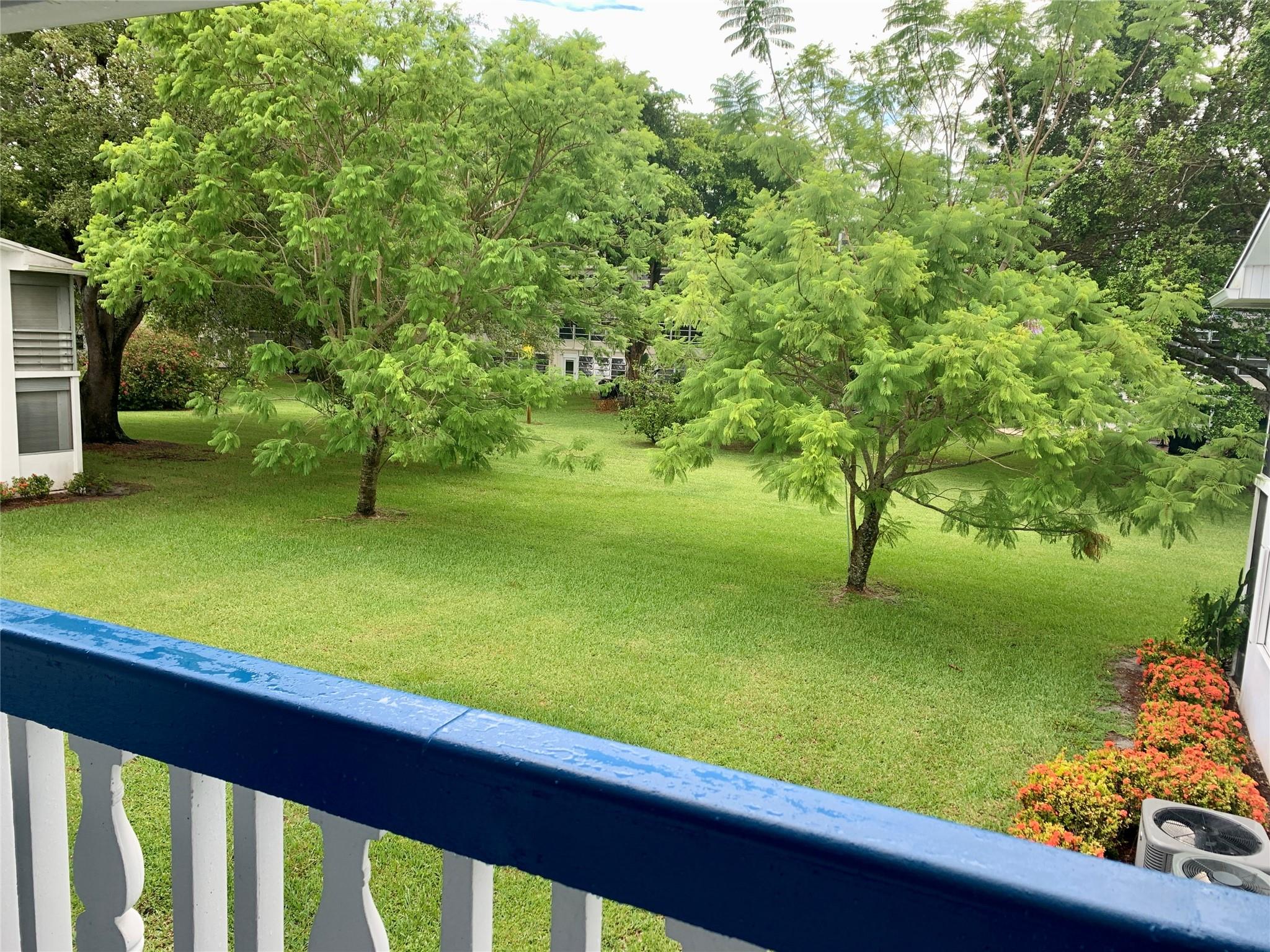 This cozy 1 bedroom/ 1.5 baths fully furnished apartment is being offered for an Annual lease only. Corner location gives it lots of light and a kitchen with a window. The second floor adds privacy, and you have a lift two steps away. Nicely appointed, with New Laminate Floors, Central A/C, microwave, toaster/air fryer, additional storage on the balcony. WiFi included in rent. Enjoy peaceful park-like setting, and many Century Village recreational amenities, numerous clubs, a cafe, and a complimentary bus. One resident must be 55+.