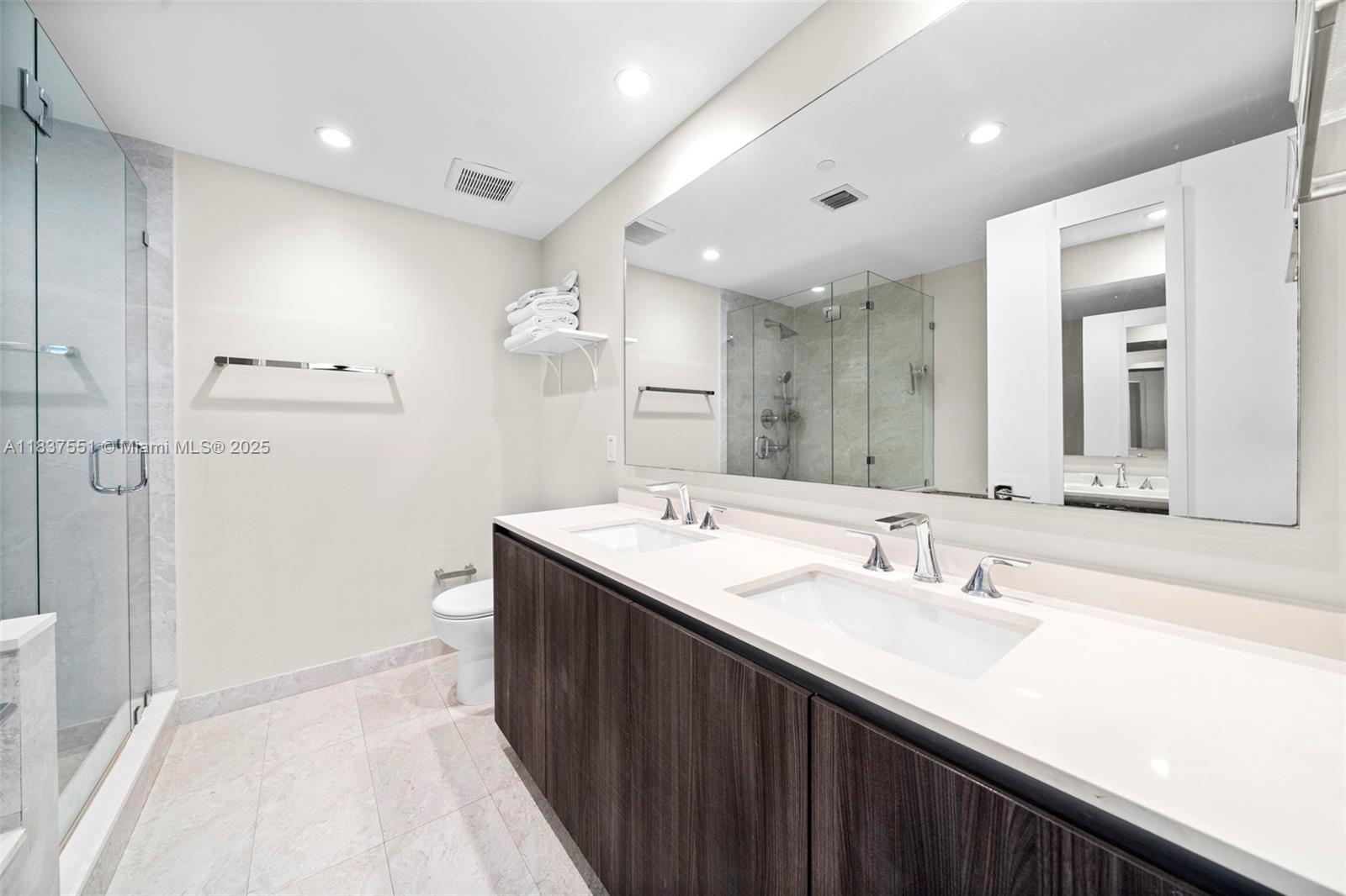 Fully furnished 2-bedroom + den, 3-bath residence with stunning bay views and a spacious balcony. Features include sleek porcelain floors throughout, a modern kitchen with quartz countertops, and premium Bosch appliances. Both bedrooms offer spacious walk-in closets and en-suite baths with double vanities. The den functions perfectly as a third bedroom or home office, complete with its own en-suite full bath. Located in a full-service, pet-friendly building across from Margaret Pace Park—with tennis, beach volleyball, basketball, and soccer. Minutes from Miami Beach, Brickell, and MIA Airport. Available starting September 17. May also be leased unfurnished.