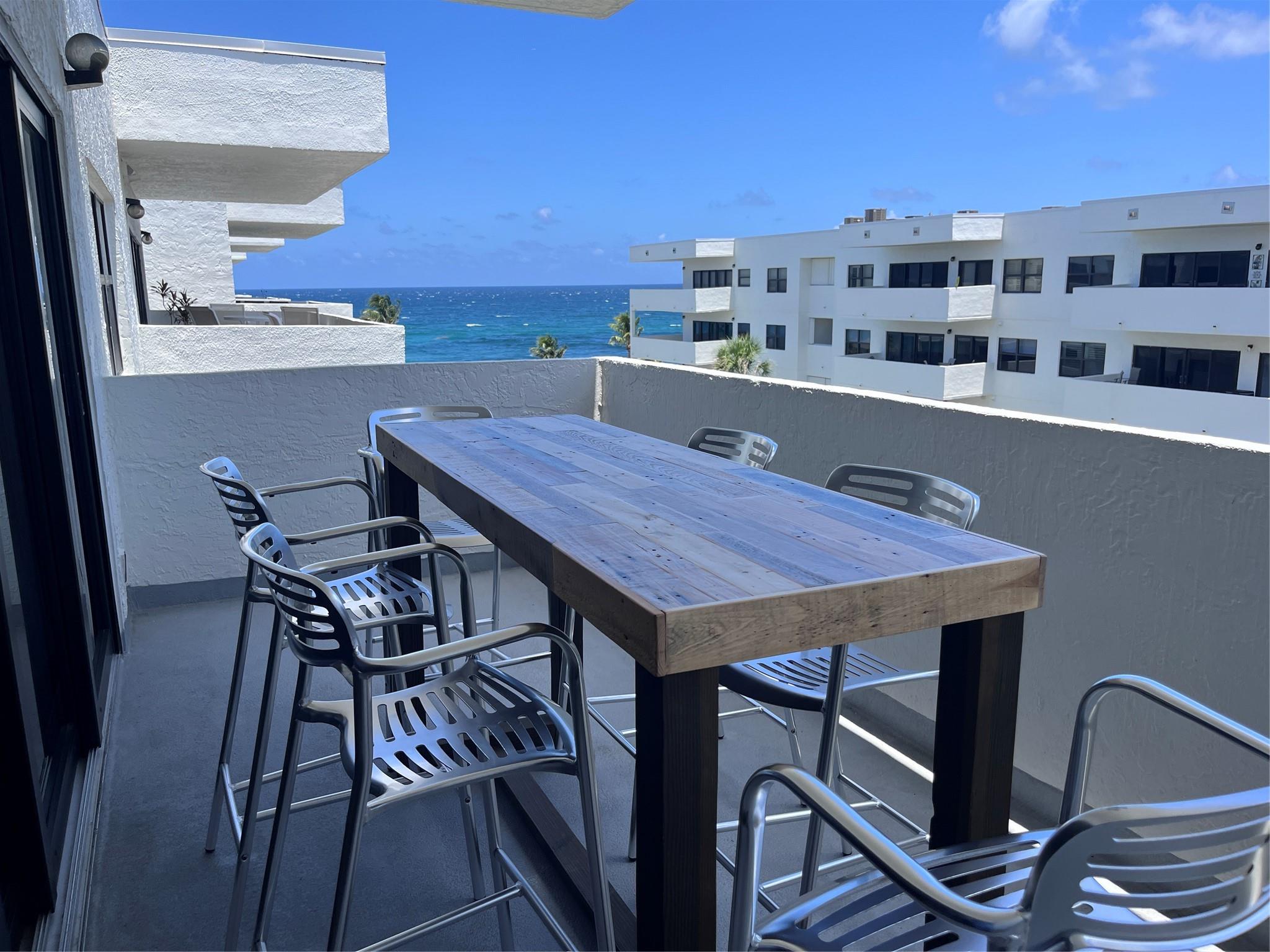 Fabulous Seasonal Rental at Beach House in Deerfield Beach! Updated Penthouse unit with wonderful Ocean & Pool Views! Beautifully furnished 1 bedroom 1.5 bath plus Murphy Bed! Very spacious with over 1200 sq feet. Half bath has been newly remodeled and all new flooring throughout. Enjoy Al Fresco from your large balcony with high-top table & chairs enjoy the Ocean Breezes! Washer & Dryer in the condo unit. Resort style living with Oversized Pool, Hot Tub, Barbecues & Saunas. Just steps to the Beach and blocks to Deerfield Beach International Pier, Restaurants & Shops. 1 assigned parking space & lots of guest parking available.