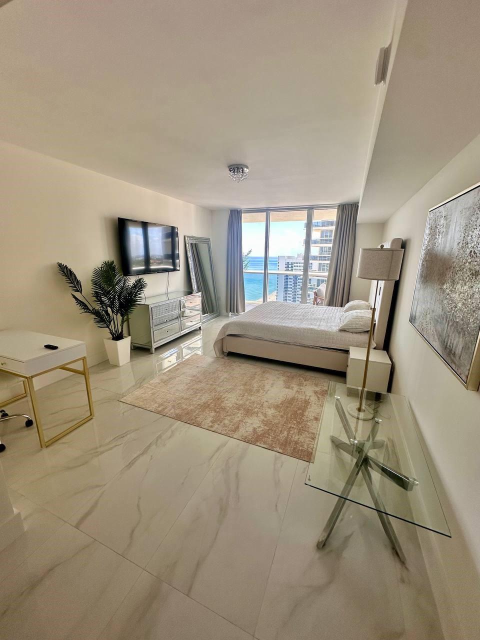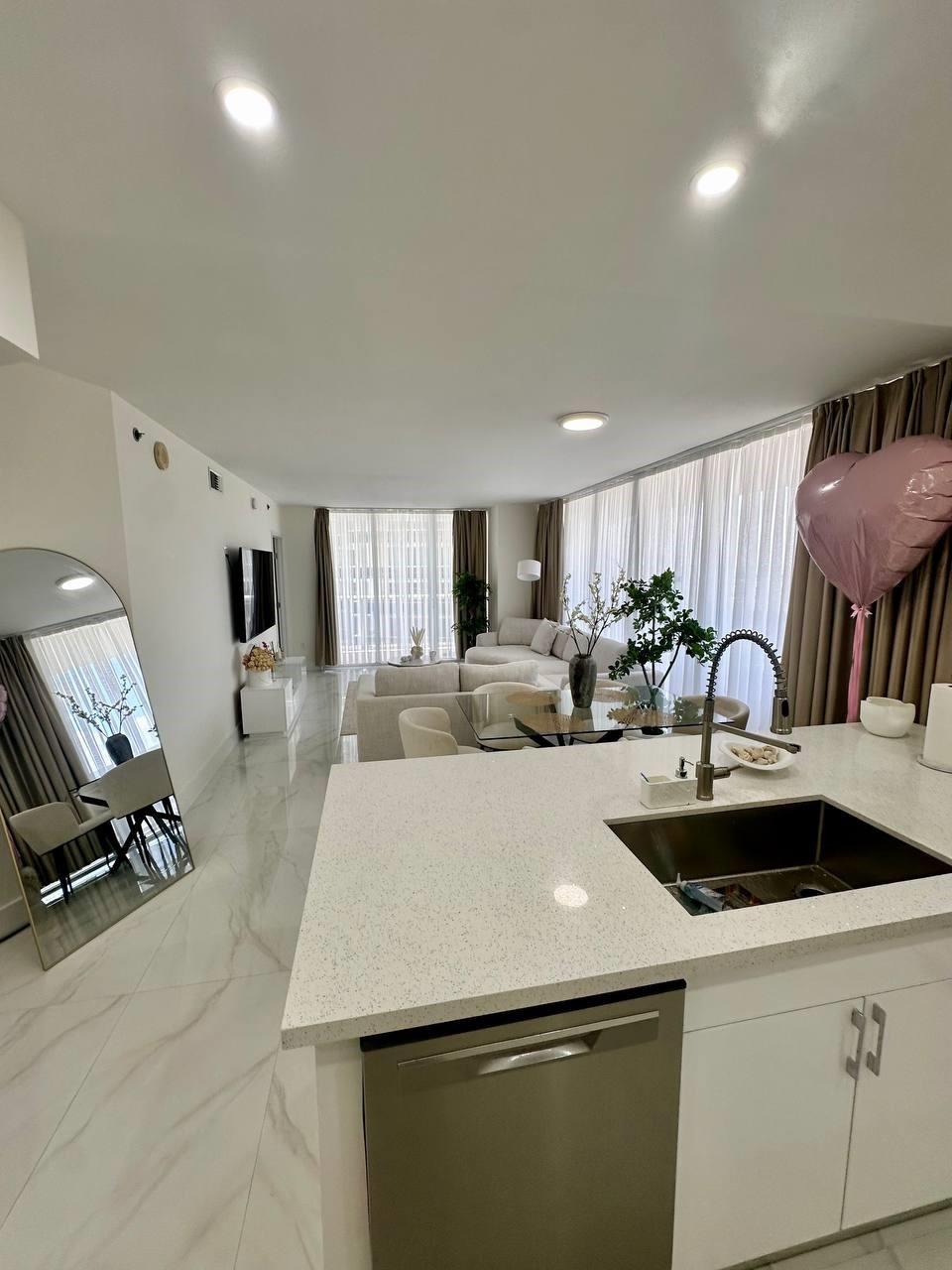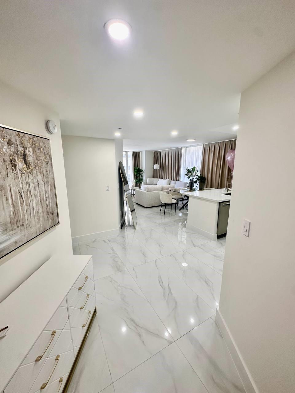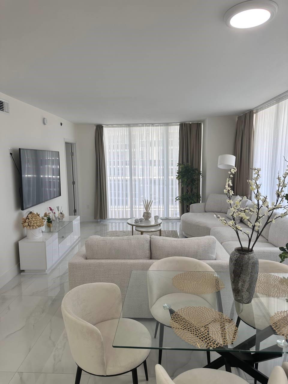 Available Now! Rarely offered Southeast corner unit with wraparound balcony and breathtaking views of the ocean, Intracoastal, and city lights. This fully remodeled 2-bedroom residence features brand-new walls, floors, tiles, 2 elegant bathrooms, modern kitchen with high-end appliances, and all new furniture. Stylishly furnished and decorated, the apartment is move-in ready and stocked with everything — from 3 smart TVs and kitchenware to linens and essentials. Washer & dryer inside. Located in a resort-style oceanfront building with 50,000-sf spa, fitness center, on-site restaurant/bar, 5 heated pools and full beach service. Just bring your suitcase!
