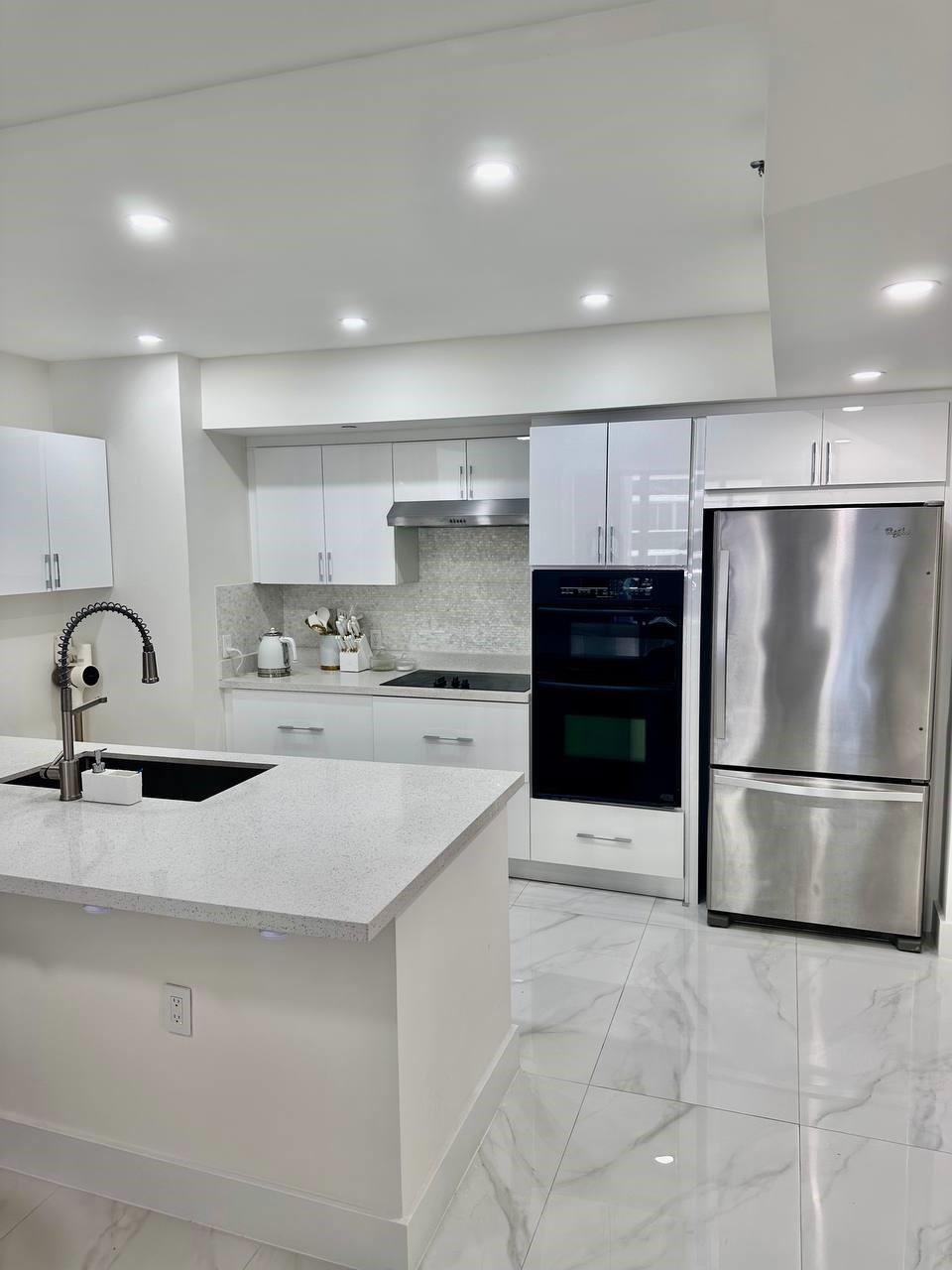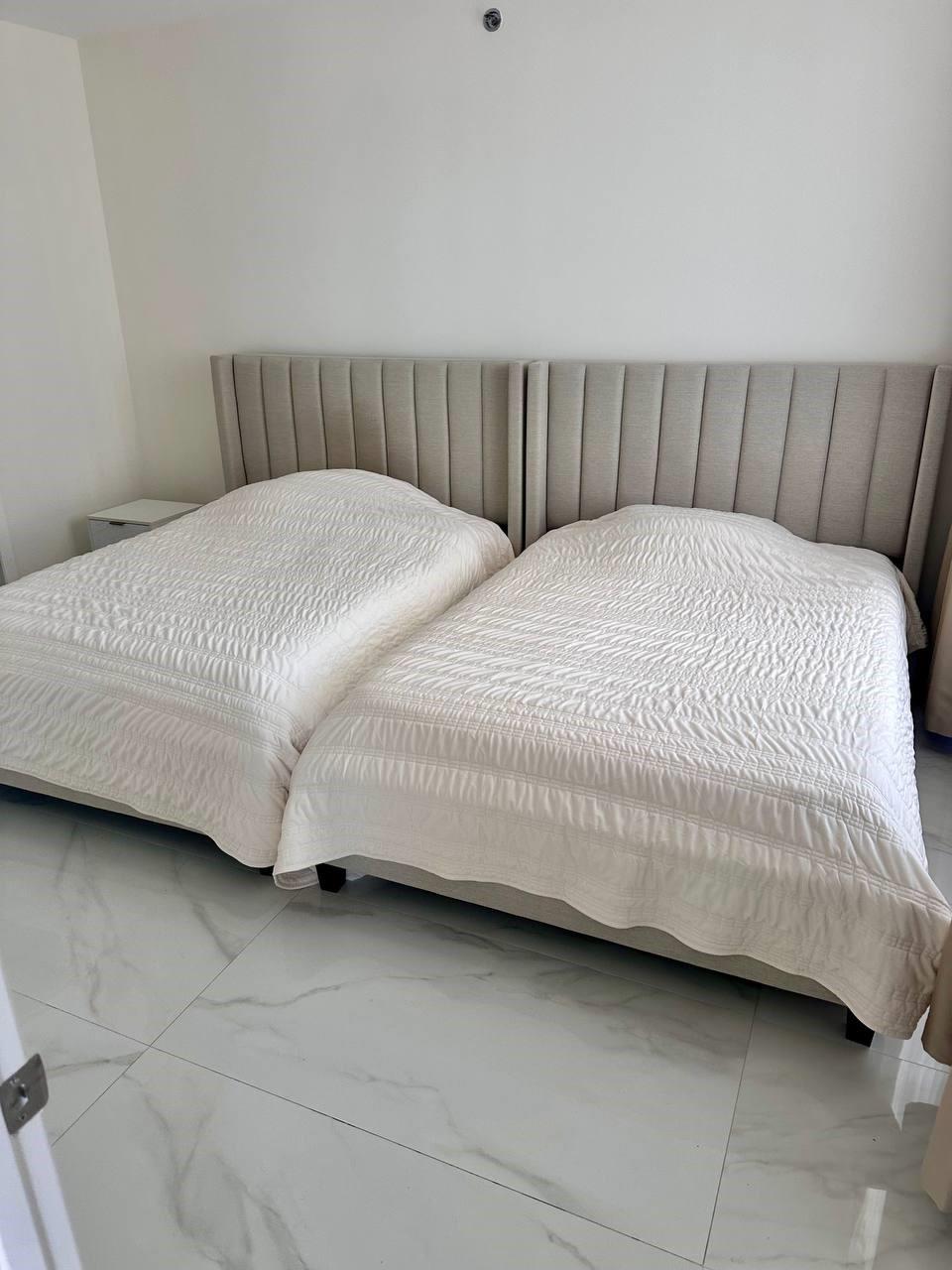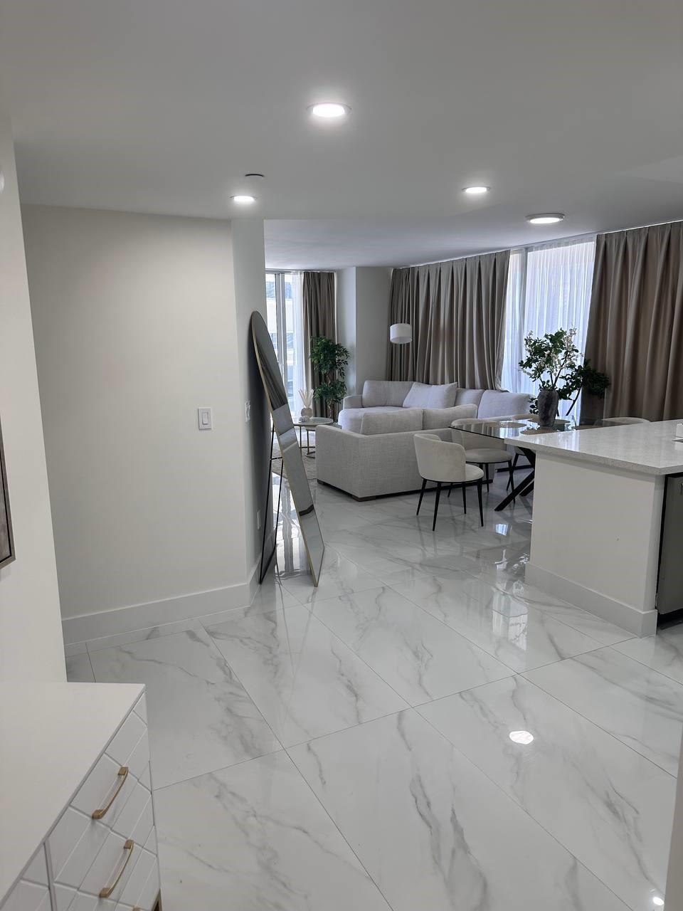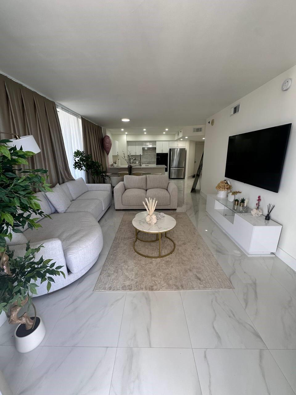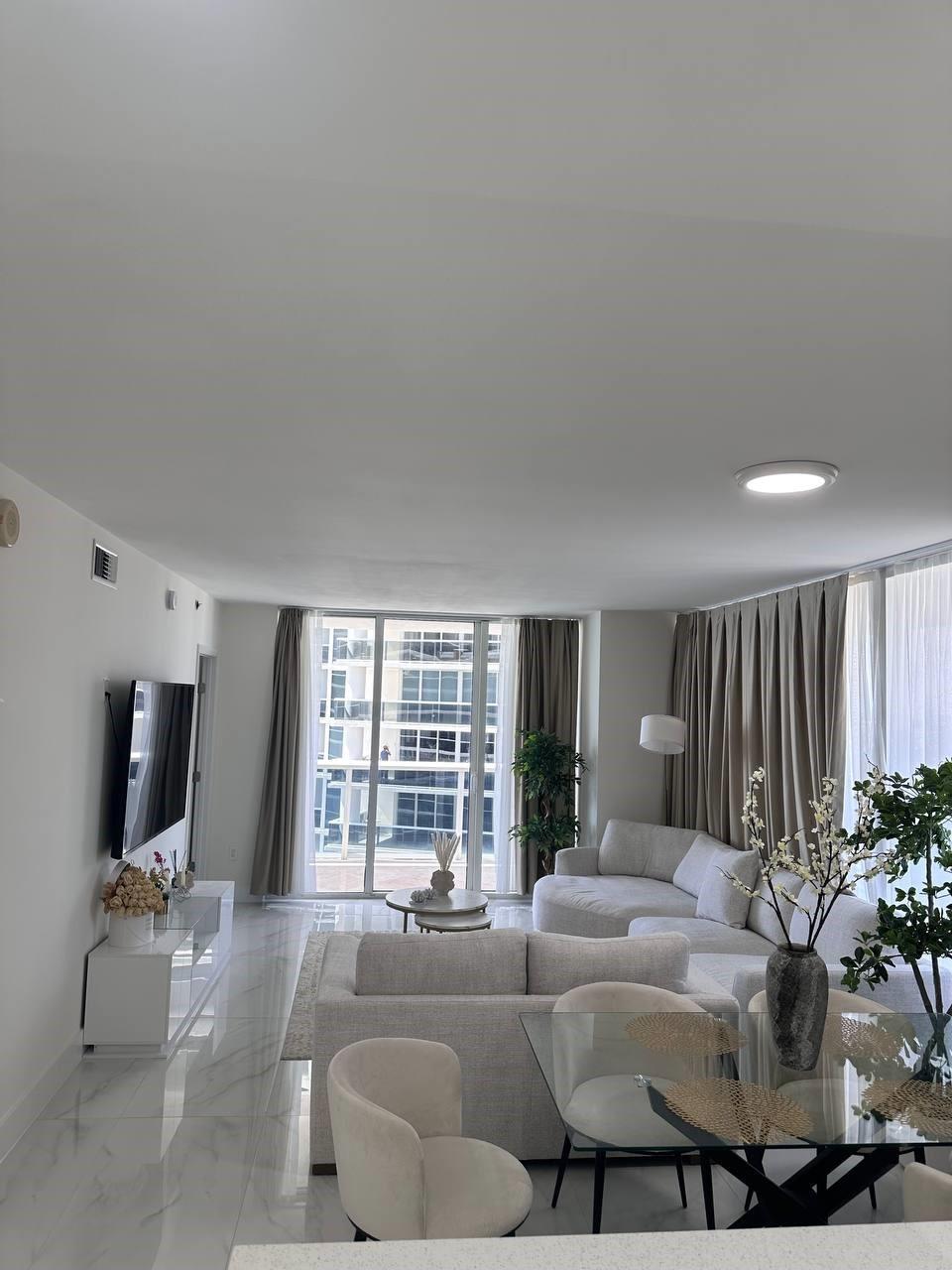 Available Now! Rarely offered Southeast corner unit with wraparound balcony and breathtaking views of the ocean, Intracoastal, and city lights. This fully remodeled 2-bedroom residence features brand-new walls, floors, tiles, 2 elegant bathrooms, modern kitchen with high-end appliances, and all new furniture. Stylishly furnished and decorated, the apartment is move-in ready and stocked with everything — from 3 smart TVs and kitchenware to linens and essentials. Washer & dryer inside. Located in a resort-style oceanfront building with 50,000-sf spa, fitness center, on-site restaurant/bar, 5 heated pools and full beach service. Just bring your suitcase!