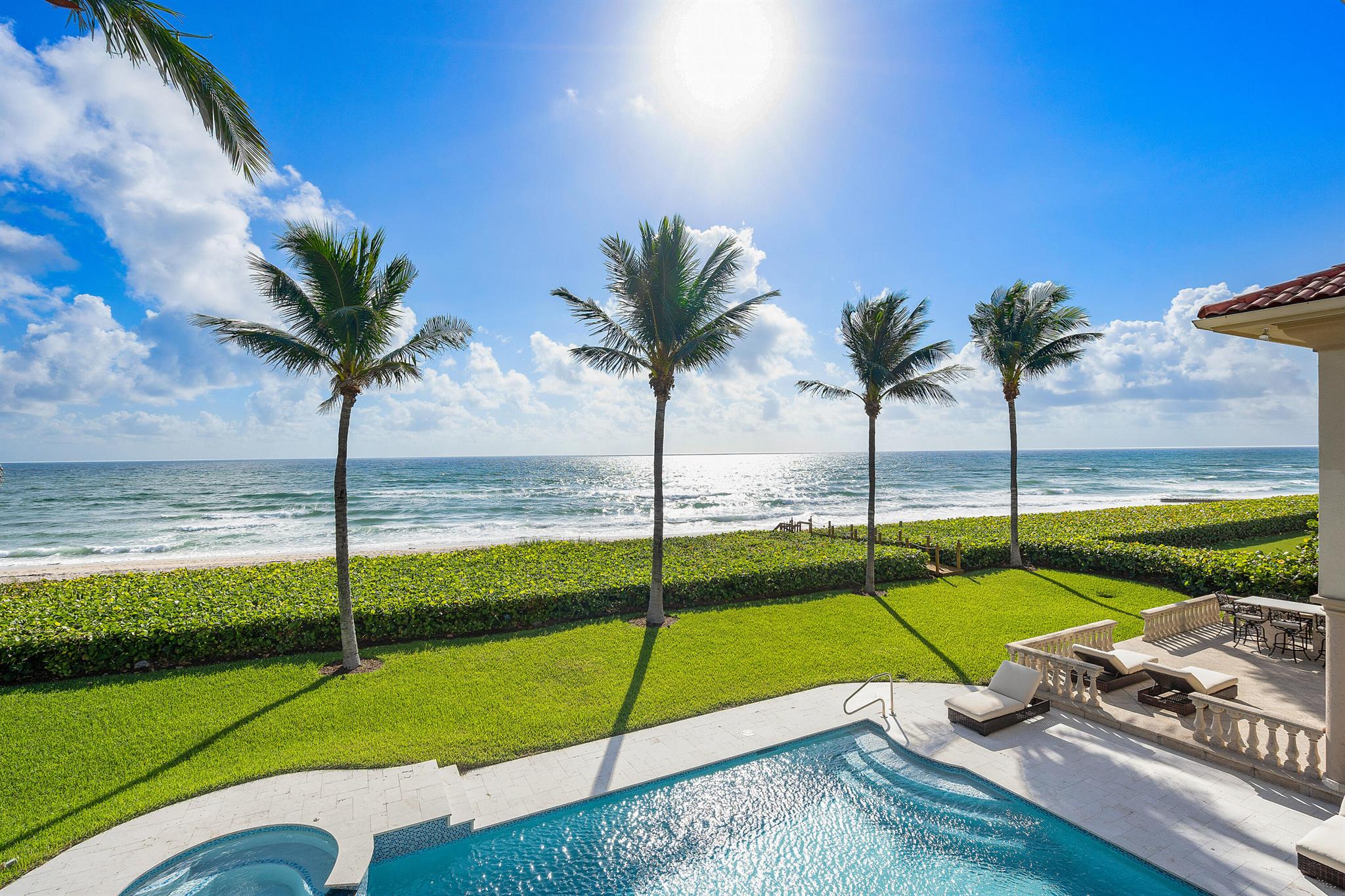 Direct Oceanfront Elegance in Ocean Ridge, FL...Nestled within the coveted enclave of Ocean Ridge, this spectacular oceanfront estate offers an unparalleled blend of privacy, sophistication, and coastal splendor. Commanding nearly 120 feet of direct Atlantic Ocean frontage, the residence is a sanctuary of refined living where the rhythms of the sea meet timeless architecture.Beyond the gated entry, lush tropical landscaping ushers you into a world of elegance--featuring soaring ceilings, expansive glass ocean views, and curated finishes throughout. The open-concept design flows effortlessly from the grand entertaining spaces to multiple outdoor terraces, all framing breathtaking sunrise views and sea breezes.Perfectly positioned between Delray Beach & Palm Beach.