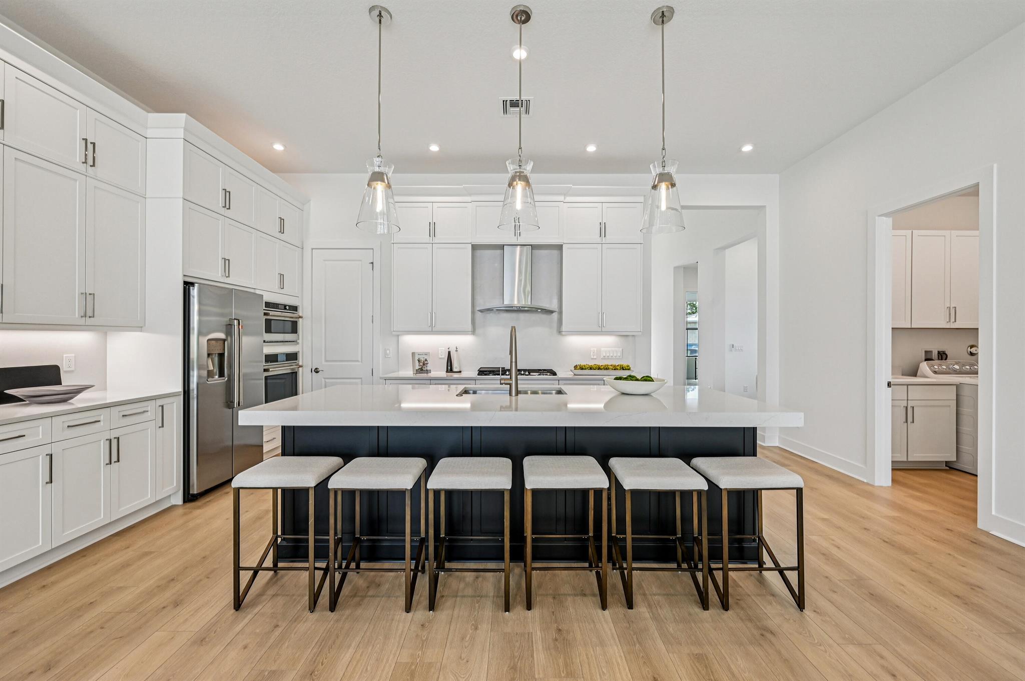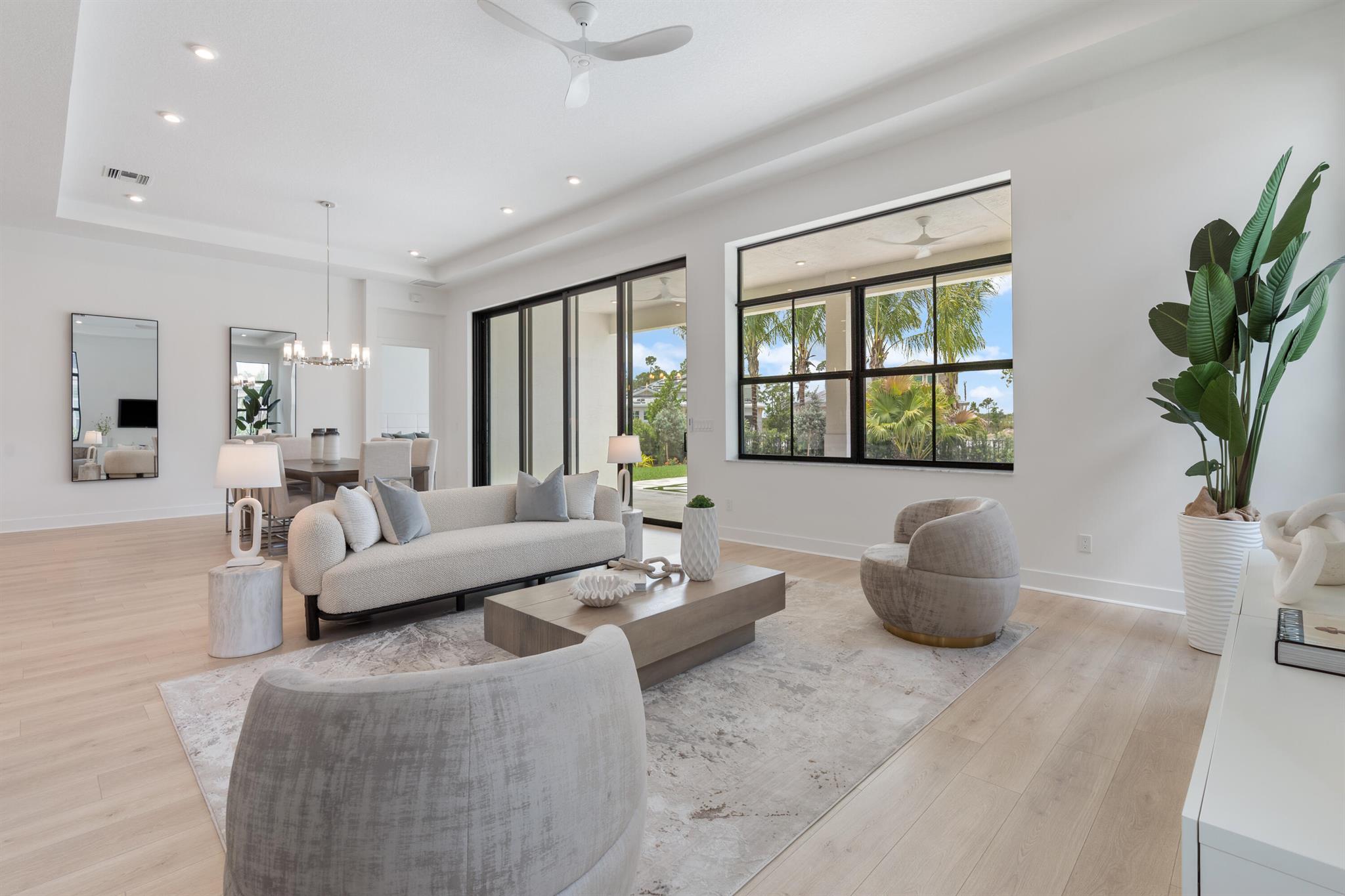 Available immediately, Furnished or Unfurnished. 6 Months minimum.Luxury living awaits in this stunning home, located in the prestigious community of L'Ambiance at Avenir. This thoughtfully designed 3-bedroom, 3-bathroom home offers a spacious single-level layout, perfect for those seeking style, comfort, and ease of living. The heart of the home is the open-concept great room and chef's kitchen, featuring premium quartz countertops, stainless steel Cafe appliances, a large center island, and a walk-in pantry, ideal for entertaining or everyday living. Step outside and experience your private backyard retreat complete with a custom pool, soothing spa with therapeutic jets, and a fully equipped outdoor kitchen under a covered lanai, perfect for relaxing or hosting gatherings.