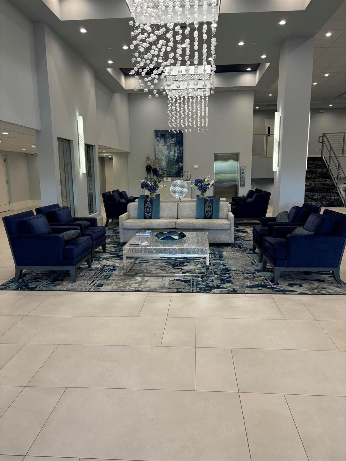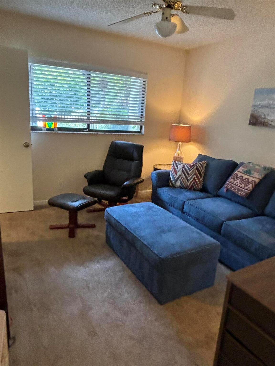 This cozy and larger FURNISHED 1230sq ft 2 bed 2 bath unit is on the ground floor in sought after Huntington Lakes. Sip coffee on the screened in patio out back with a peaceful view of the new lake. There's a garden view in the front and bringing packages in is easy as it's only a few steps to parking as it is right in front of your door! The master has a comfy king-sized bed with a large smart tv and alcove with another sofa for lounging or napping and the den has a sleeper sofa and a smart tv with another full bathroom. Both baths are fully updated! The living room has a sleeper sofa as well. There's an eat-in kitchen and larger dining area as well as a washer/dryer. This 55+ popular community has a wonderful clubhouse with many