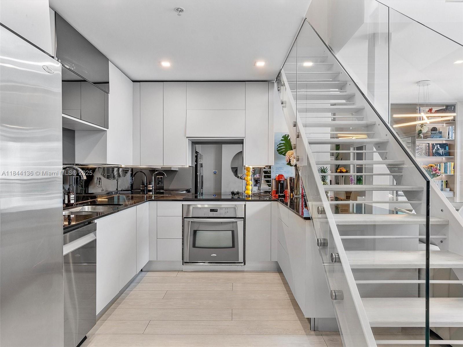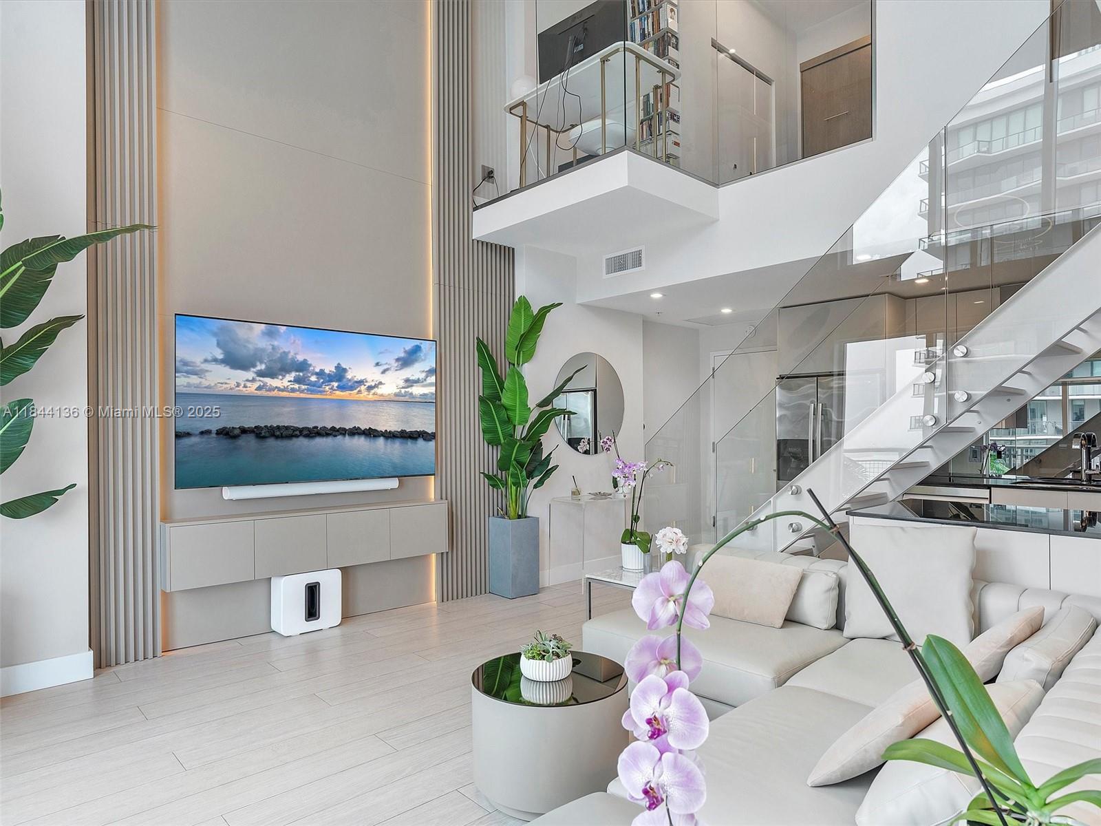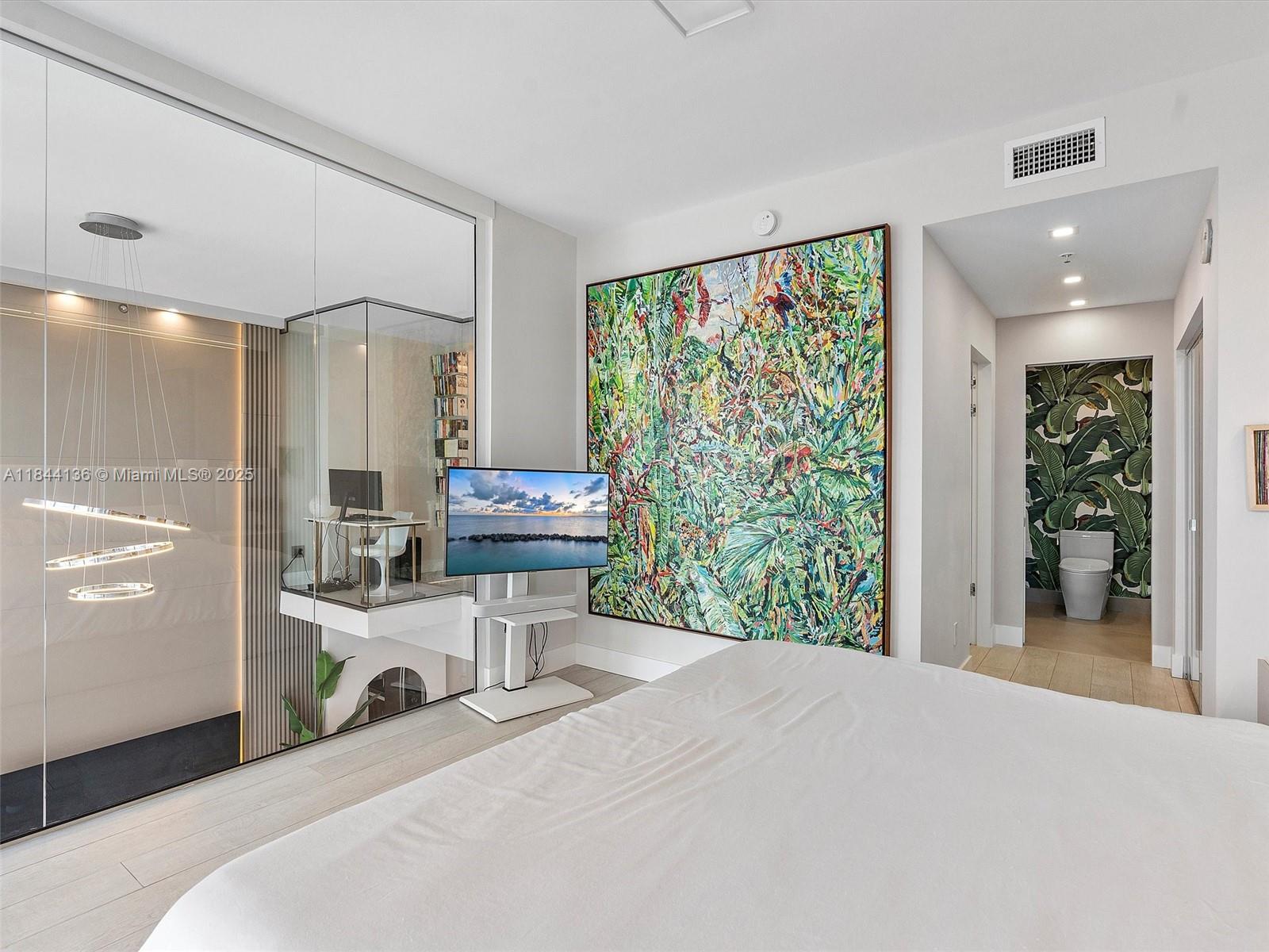 This listing is UNFURNISHED and available by March 30th! The unit is NOT AVAILABLE BEFORE 3/29/2026. 2 bedroom loft totally renovated by an interior designer with impressive water views (Key Biscayne), in the heart of Brickell. Custom carpentry and library, extra large Hot Tub for 2 people in the unit, 3 additional cabinets for a total of 6 fully equipped cabinets, kitchen extension, and other upgrades make this condo unique in Brickell. New washer/dryer. Automated blackout blinds. All services are provided by the HOA, except electricity. Enjoy excellent amenities: swimming pool, gym, jacuzzi, sauna, etc. Wake up to the sunrise over Key Biscayne and enjoy the view from the balcony on the first floor or the one in the master bedroom!