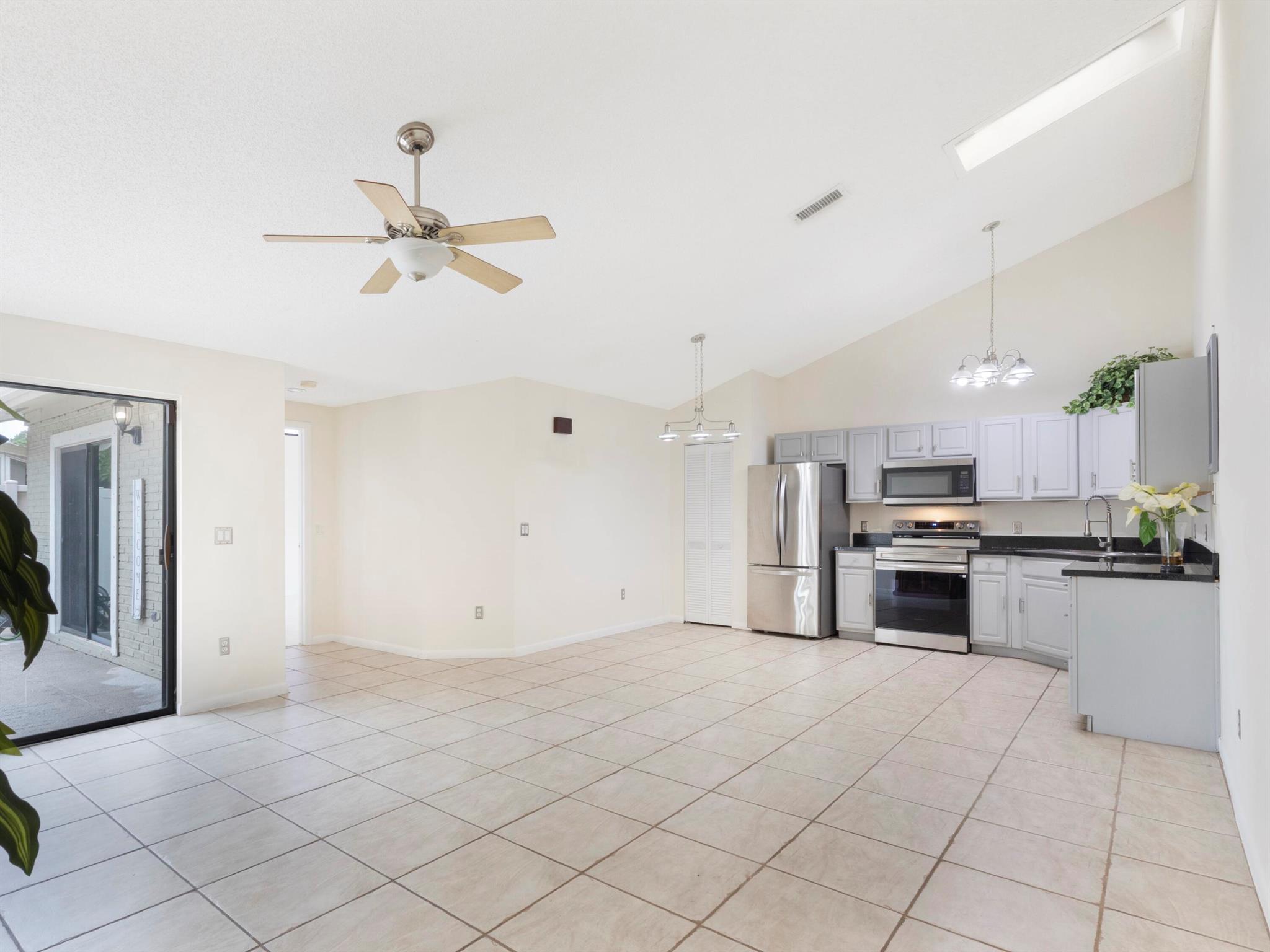 Welcome to your ideal Florida retreat! This beautifully maintained single-story home offers 3 bedrooms, 2 bathrooms, and an expansive fenced-in courtyard. Situated in the highly desirable Westwood Gardens--just steps from the vibrant Alton Shops of Palm Beach Gardens.Inside, you'll love the vaulted ceilings, natural light streaming through the skylight, and tile flooring throughout. The modern kitchen features stainless steel appliances, designer countertops, and ample cabinet space.Step outside into your large private patio (30' x 20'), perfect for entertaining guests, grilling, or enjoying peaceful afternoons in the sun. Additional highlights include:Cable and internet included in rent.Pet-friendly community.Reserved parking space directly in front of the gate