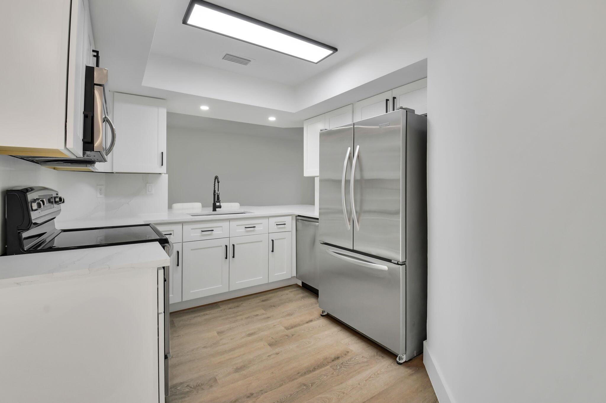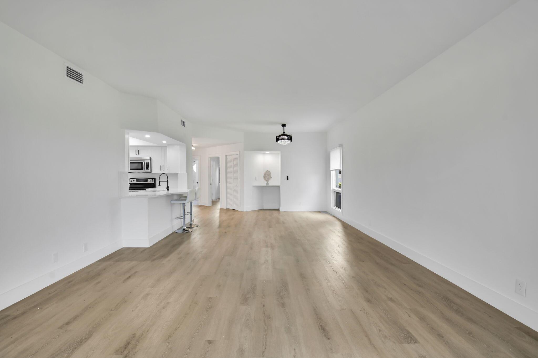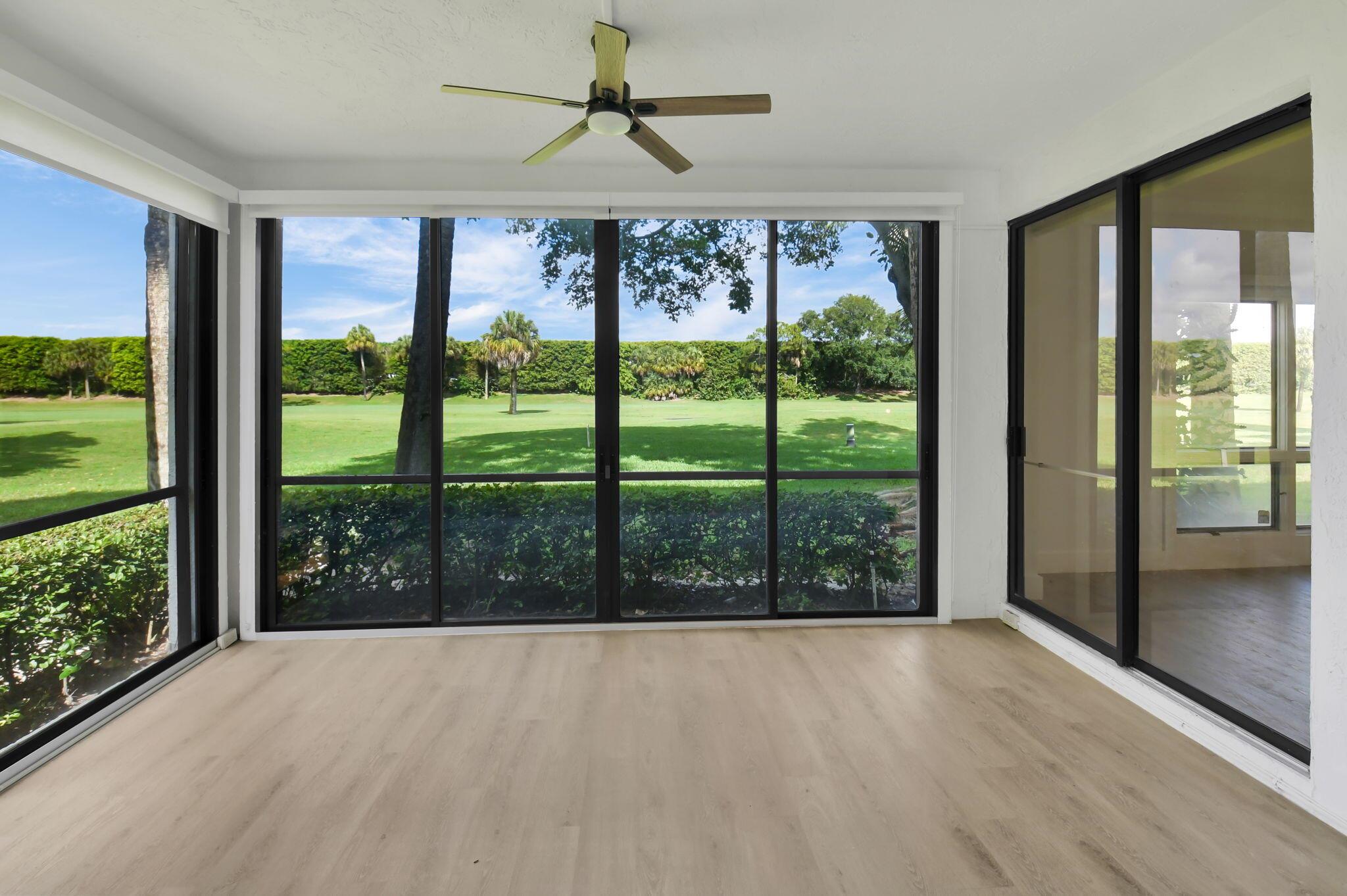 Beautifully renovated first-floor 2/2 condo located in the desirable El Viento at Boca Pointe. Every inch of this home has been thoughtfully updated with high-end finishes and modern style. Enjoy new flooring throughout, smooth ceilings, updated baseboards and crown molding, and designer lighting plus more! Sleek white kitchen is a showstopper, featuring quartz countertops, stainless steel appliances, custom cabinetry, and a clean, contemporary layout. Both bathrooms have been completely remodeled with today's most stylish fixtures, vanities, and tile work. An enclosed patio expands your living space and provides the perfect spot to relax or work from home while enjoying serene golf course views. This unit is ideally located close to the community pool