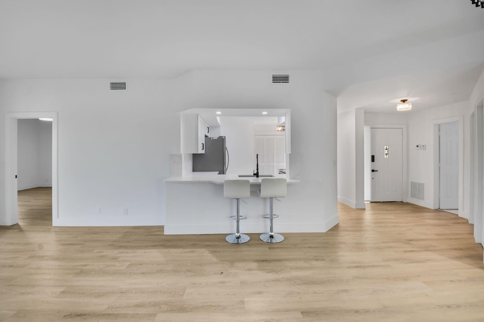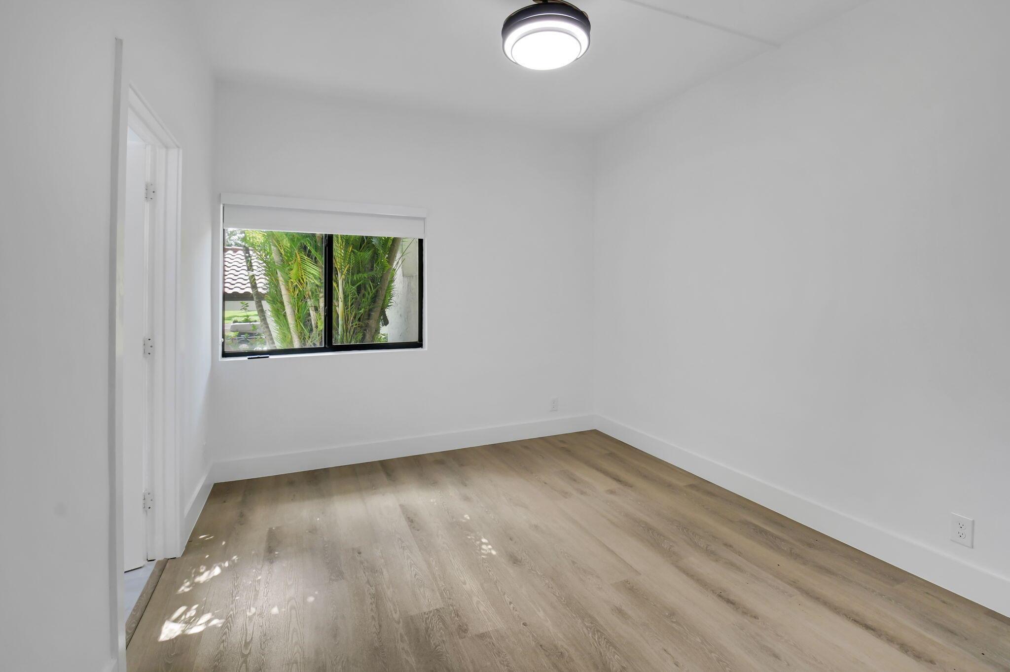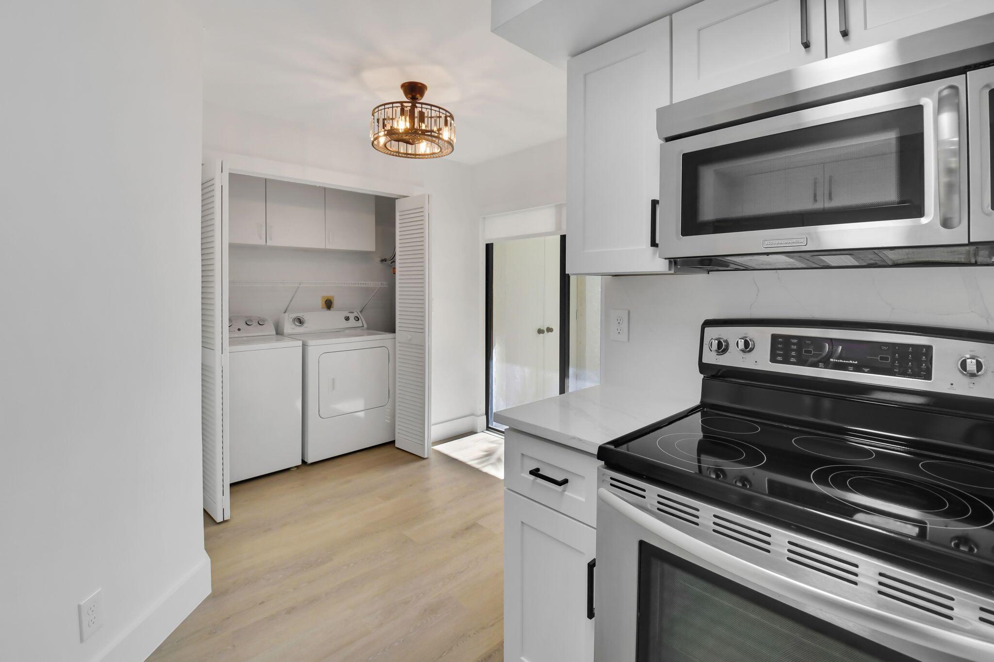 Beautifully renovated first-floor 2/2 condo located in the desirable El Viento at Boca Pointe. Every inch of this home has been thoughtfully updated with high-end finishes and modern style. Enjoy new flooring throughout, smooth ceilings, updated baseboards and crown molding, and designer lighting plus more! Sleek white kitchen is a showstopper, featuring quartz countertops, stainless steel appliances, custom cabinetry, and a clean, contemporary layout. Both bathrooms have been completely remodeled with today's most stylish fixtures, vanities, and tile work. An enclosed patio expands your living space and provides the perfect spot to relax or work from home while enjoying serene golf course views. This unit is ideally located close to the community pool