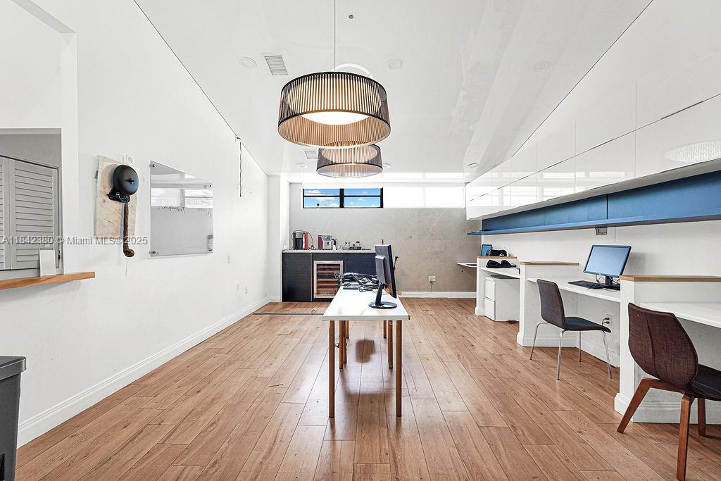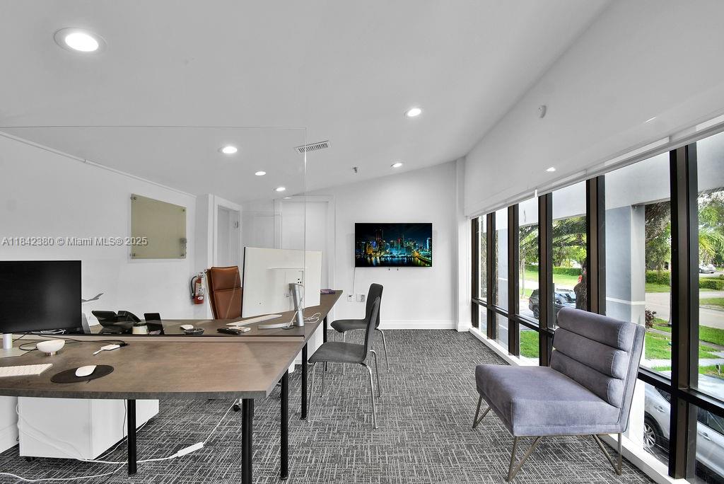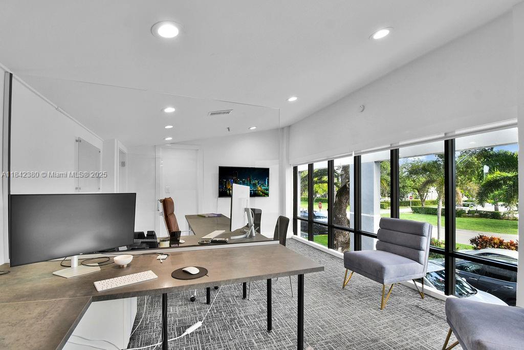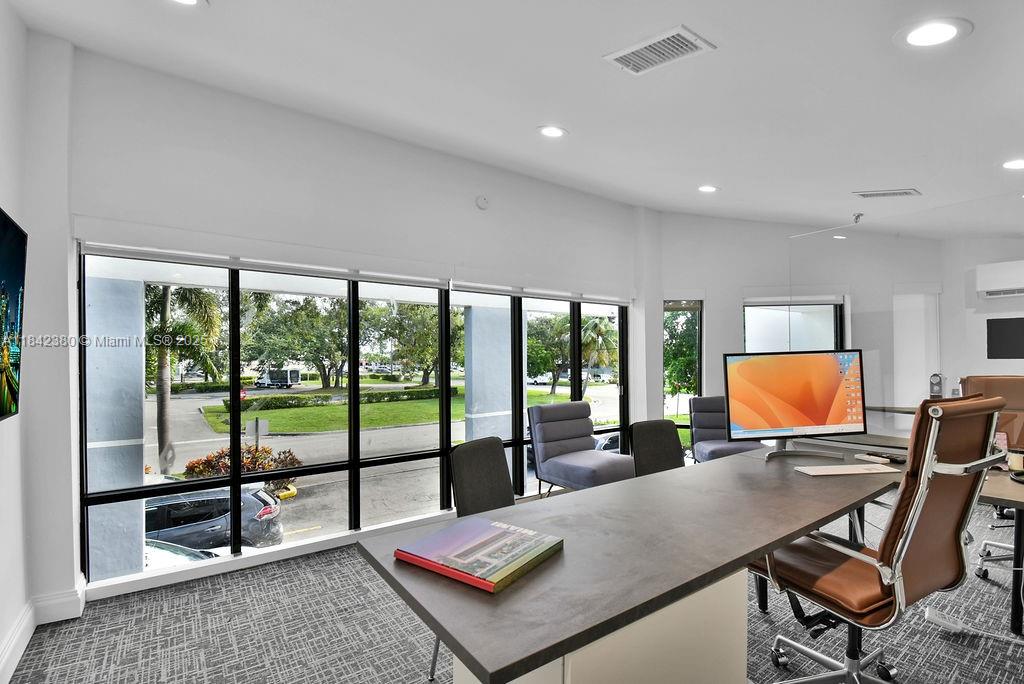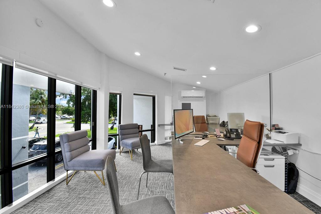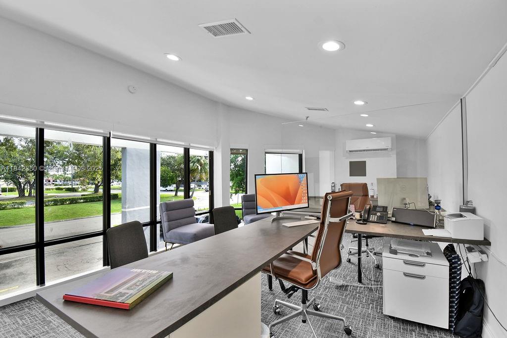 High-end office space fully furnished for lease. Located in North Miami Beach, just off 163rd Street. Over 1,268 Sqft of two-story remodeled and furnished office. Executive Suite with floor-to-ceiling windows on the second floor and a glass-enclosed conference room on the 1st floor. Several workstations are equipped with screens, chairs, tables, and printers. Private entrance and Plenty of employee and guest parking available.