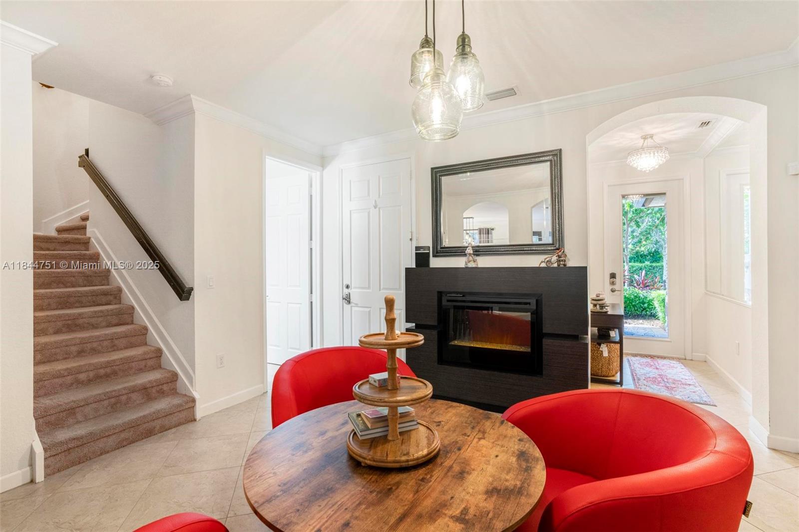 INCREDIBLE 4/3 townhome with two-car garage in Davie! Don't miss this opportunity! This home is situated in a tranquil location, featuring four bedrooms, two of which are master's upstairs. High ceilings and crown molding enhance the house's interior. The 2-car garage includes metal cabinets and a whole-house water purification system. The kitchen boasts granite countertops. Upstairs, a laundry closet and a linen closet. The first floor features porcelain tile flooring, while the stairs and bedrooms are carpeted with plush wall-to-wall carpet. The home is equipped with hurricane shutters. It is in a highly desirable area near NSU, hospitals, Golf Clubs, shopping, dining, highways, & the airport. Don't miss this opportunity. Beautifully-maintained townhome. HOA approval required