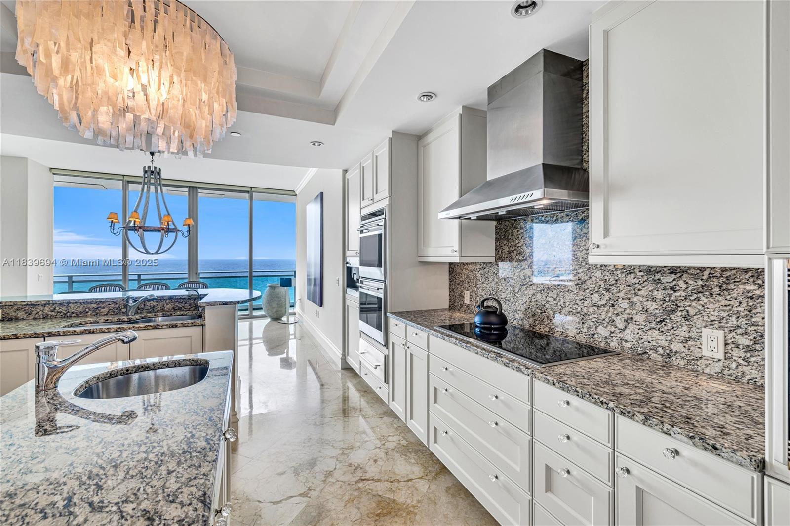 Beautifully finished and fully furnished by a renowned designer, this 3 bed, 3.5 bath corner residence in the heart of Bal Harbour offers panoramic ocean views and direct sightlines to the Haulover Cut—watch the boats come in and out from your home in the sky. Floor-to-ceiling windows flood the space with natural light. The open kitchen features top-tier appliances and elegant finishes. The primary suite boasts a spa-like bath and oversized dressing room. Located in the Ritz-Carlton, enjoy 5-star amenities: Exhale Spa, pools, gym, restaurant, theater, beach service, 24-hr concierge, and in-room dining. Includes oversized parking with EV charger, dog park, and scenic boardwalk access. Steps from Bal Harbour Shops. Lobby renovation underway with renderings available.