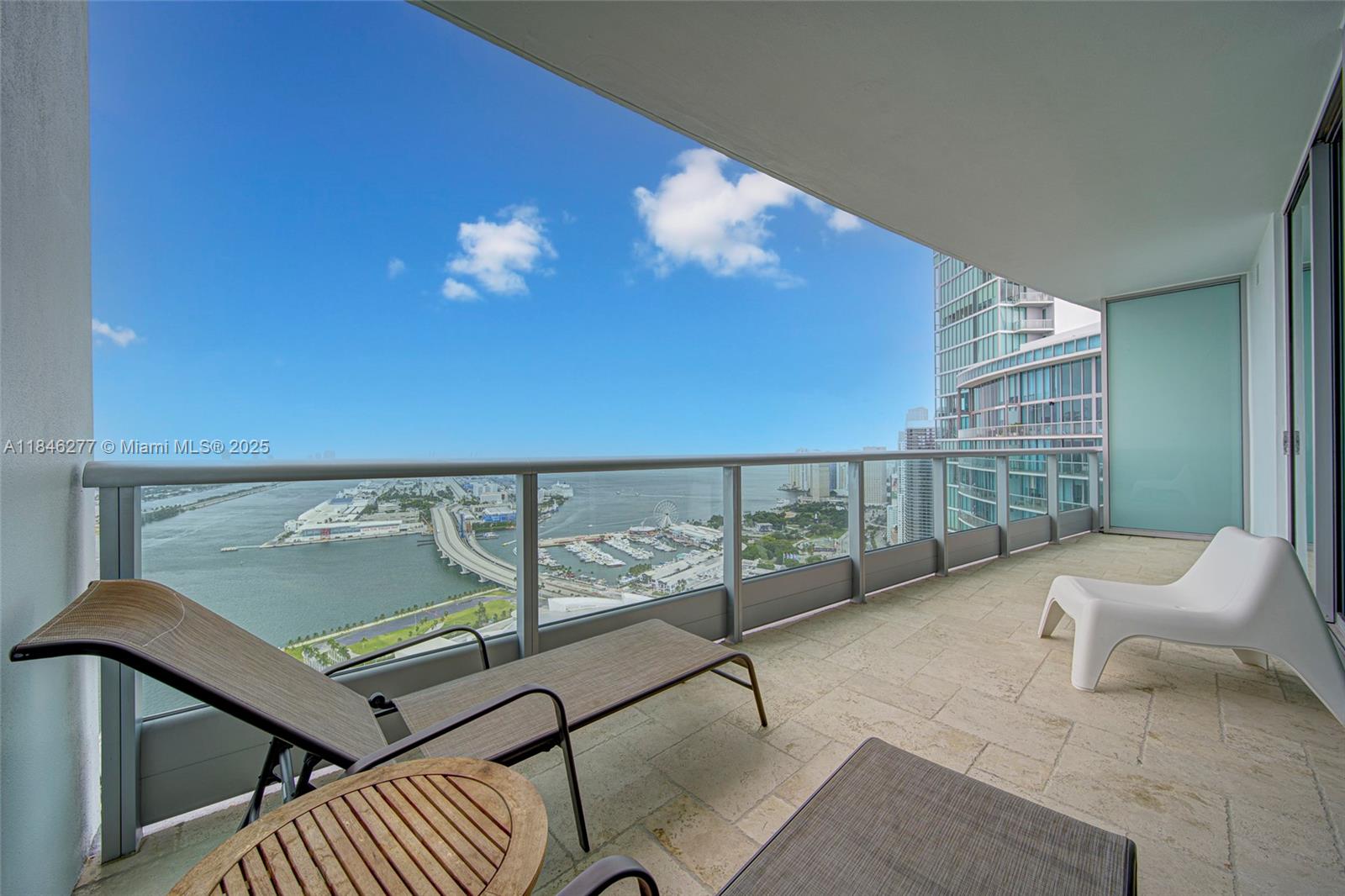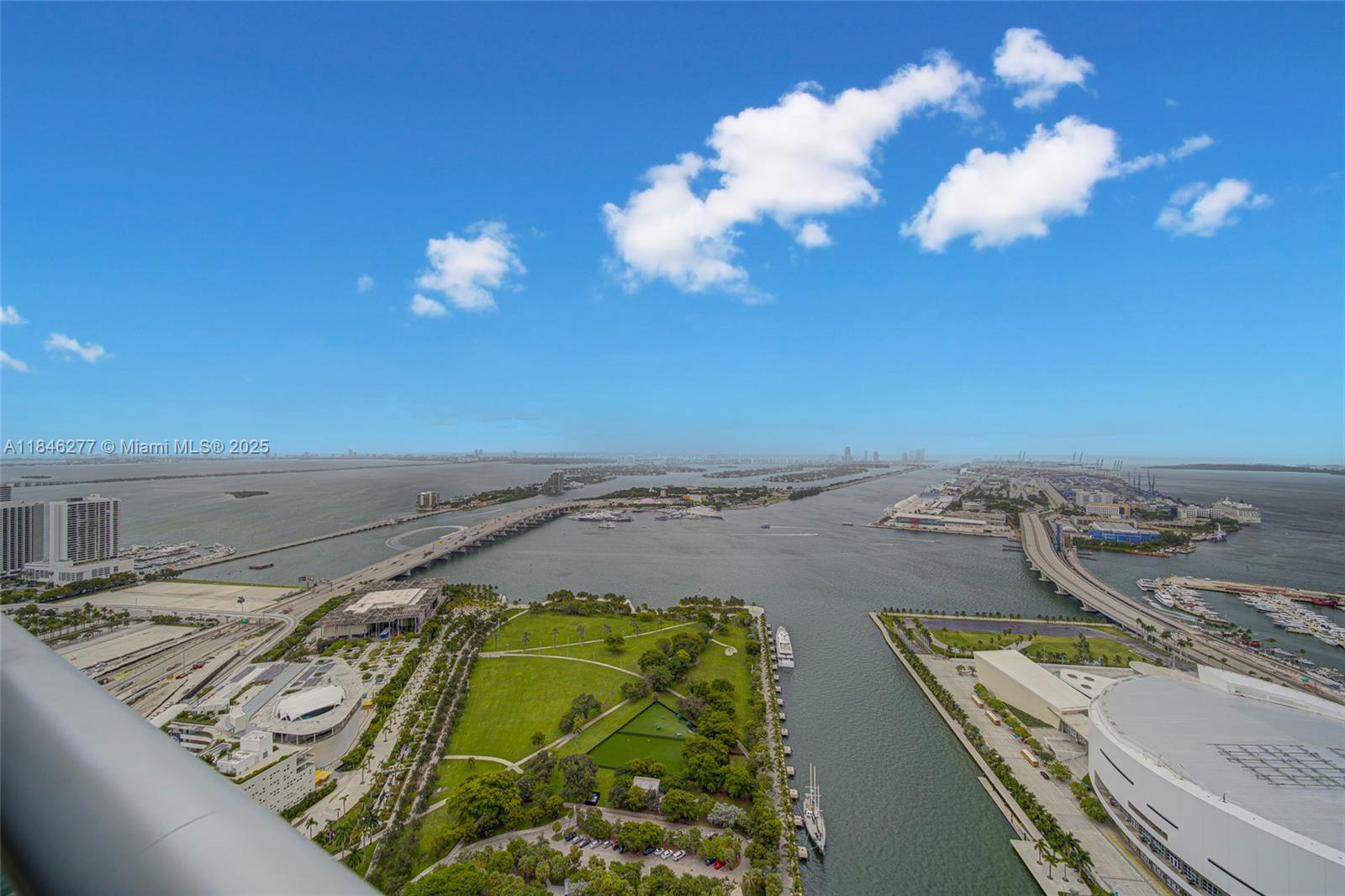Live above it all on the 52nd floor with stunning, direct views of Biscayne Bay, Miami Beach, and the city skyline. This 1BD + den, 1.5BA sky-high condo features 10' floor-to-ceiling impact glass, a spacious flow-through layout, marble floors, Italian cabinetry, and top-tier Miele & Sub-Zero appliances. The large primary suite includes panoramic views and walk-in closets. Enjoy luxury amenities: 2 pools, spa, state-of-the-art gym, resident lounge, theater, kid's playroom, concierge, and valet. A true condo in the sky.