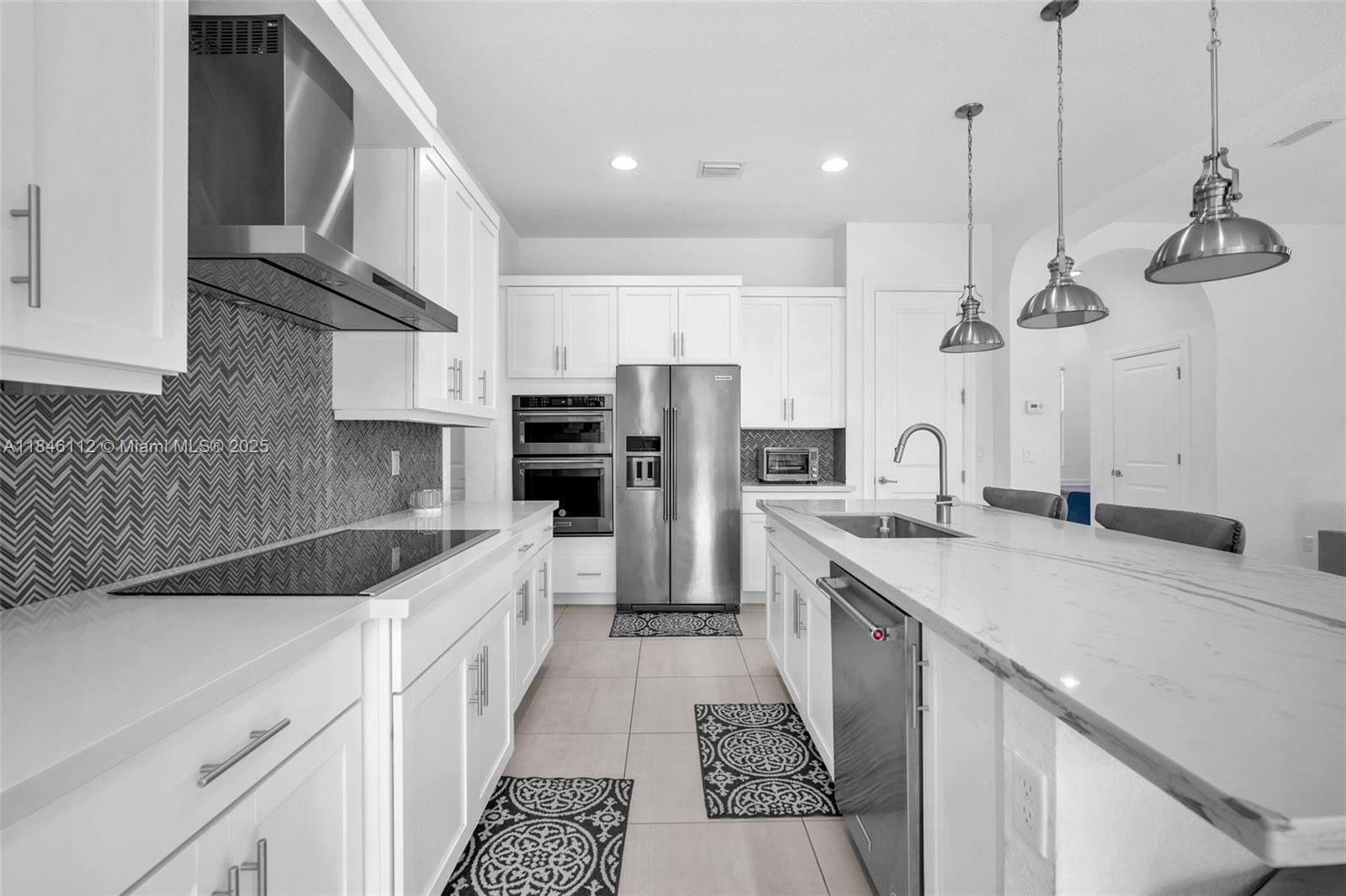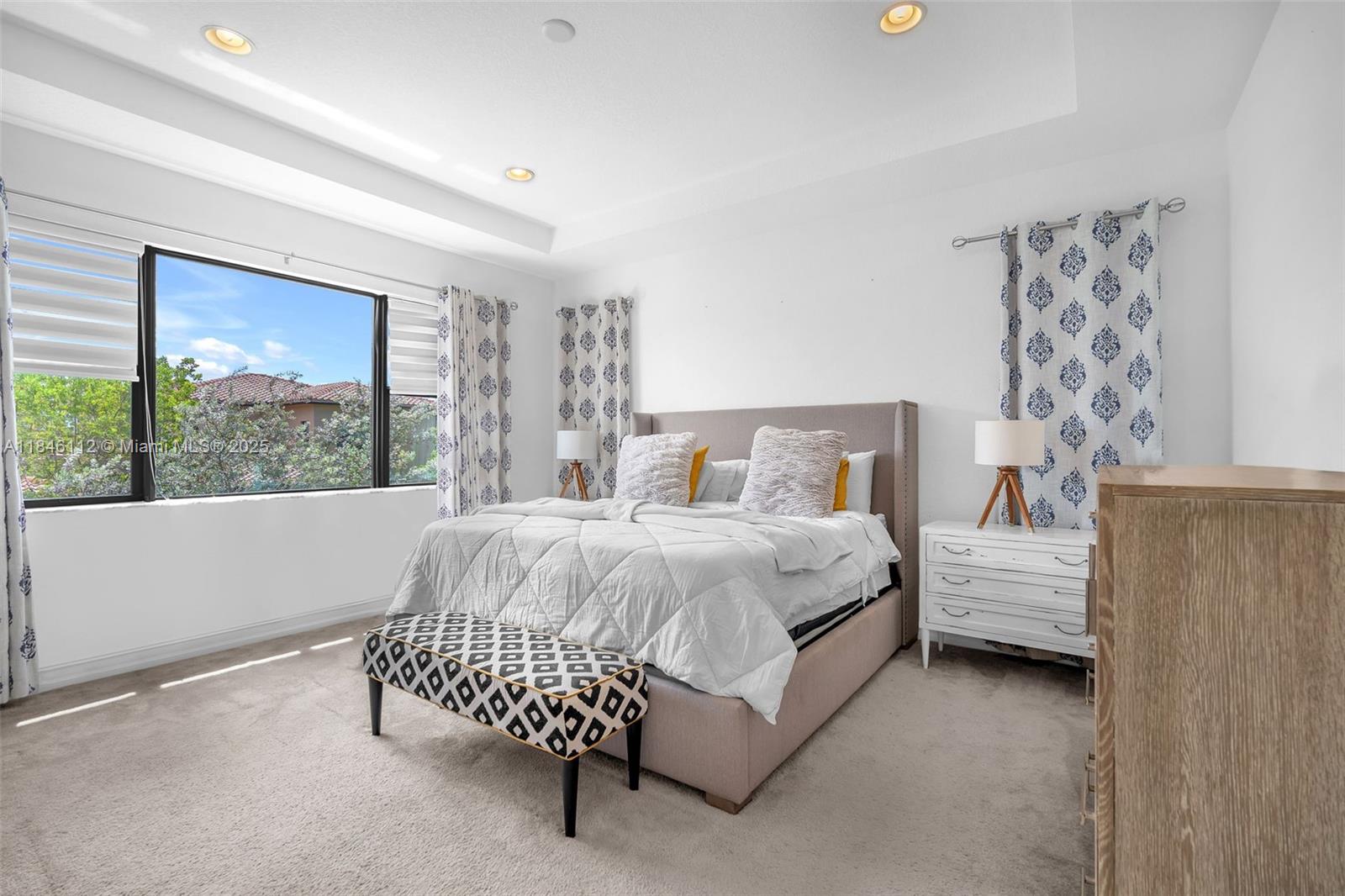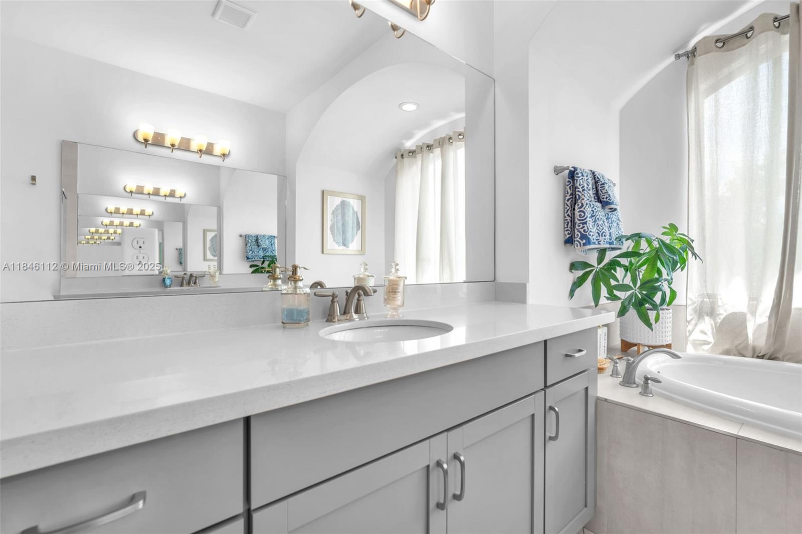 Especially nice 4 Bed/3.5 Bath spacious family home with beautiful kitchen & master plus spacious back yard in a very well kept community. Kitchen offers white quartz counters & cupboards, wall ovens & countertop stove, large curved center isle, special lighting and large pantry. Large master, has dual closets & bath with attractive grey cabinets, glass enclosed rain shower, soak tub & more. Other key features include elegant window treatments throughout, lots of below stair storage space, large mezzanine & laundry with tub & closets. Bed & full bath downstairs plus garage has prepped floor and plenty storage spaces. Community offers heated pool & gym + party space with full kitchen. Home is walking distance to stores & close to I 75.
