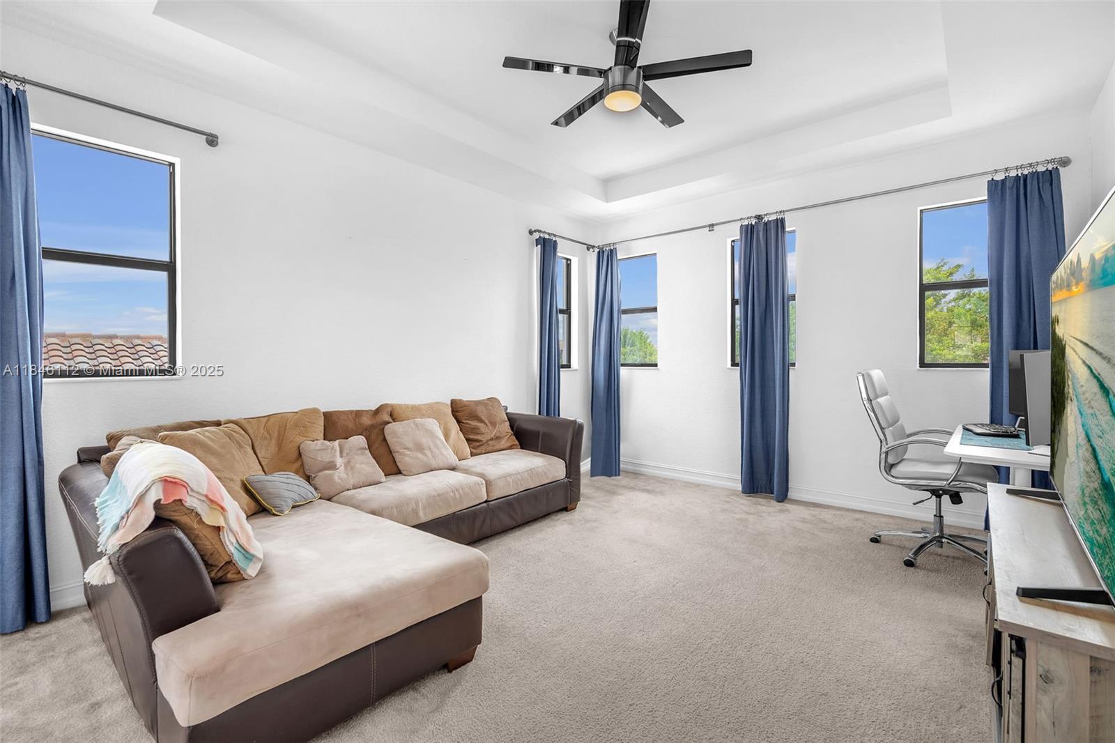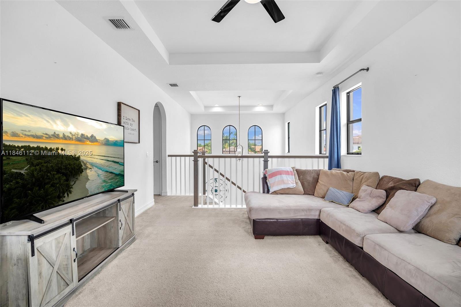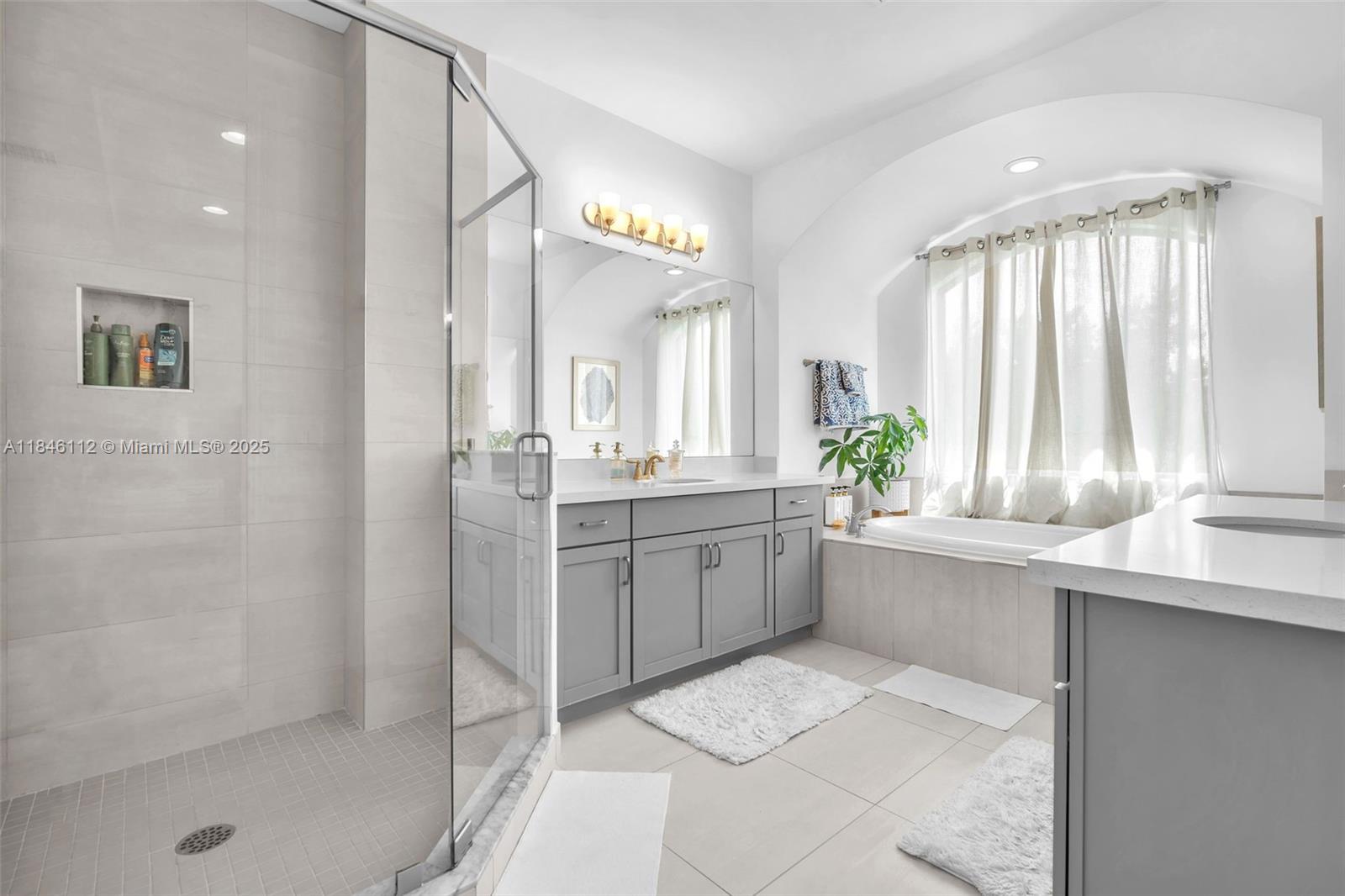 Especially nice 4 Bed/3.5 Bath spacious family home with beautiful kitchen & master plus spacious back yard in a very well kept community. Kitchen offers white quartz counters & cupboards, wall ovens & countertop stove, large curved center isle, special lighting and large pantry. Large master, has dual closets & bath with attractive grey cabinets, glass enclosed rain shower, soak tub & more. Other key features include elegant window treatments throughout, lots of below stair storage space, large mezzanine & laundry with tub & closets. Bed & full bath downstairs plus garage has prepped floor and plenty storage spaces. Community offers heated pool & gym + party space with full kitchen. Home is walking distance to stores & close to I 75.