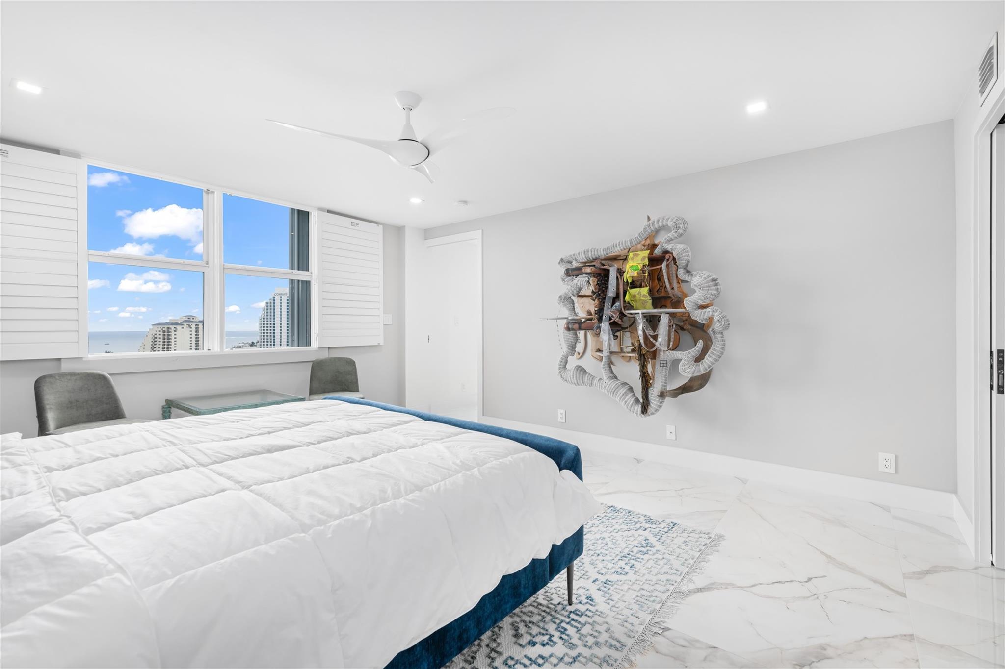 Unique in Fort Lauderdale. This very special condo has two master suites, a third office/guest room and open floor plan (large kitchen, living and dining area) as well as a large private patio from which to enjoy the magnificent views of green the 14-acre preserve of the Bonnet House and sparkling blue Atlantic ocean. America on the Park's amenities include pool, patio, gym, boat dock. 24-hour security and parking space. The condo has been completely remodeled with every attention to detail and comfort. Stainless steel, new kitchen appliances, and a new washer and dryer. Available furnished.