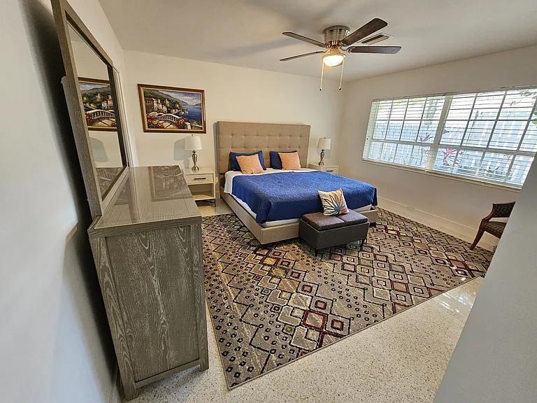 Just 2 Blocks from the Beach!This beautifully furnished 2-bedroom, 2-bath bungalow is perfectly located in the heart of Delray Beach--but tucked away in a quiet neighborhood. All on one level, this spacious home is just a short walk to the beach and the shops, restaurants, and nightlife on Atlantic Avenue. The home sits between the Atlantic Ocean and the Intracoastal, offering plenty of natural light through large front and back windows. It features neutral tile flooring throughout, a private fenced-in patio, a full-size washer and dryer, and a dedicated parking space. There's also a lushly landscaped common yard out front.Available fully furnished--move right in and enjoy the best of beachside living!