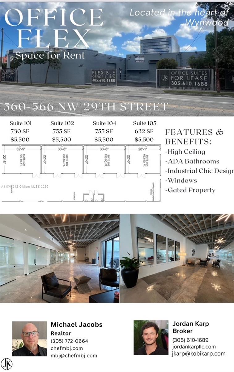 Beautiful Newly renovated office spaces located in the heart of Wynwood. Please contact broker for showings