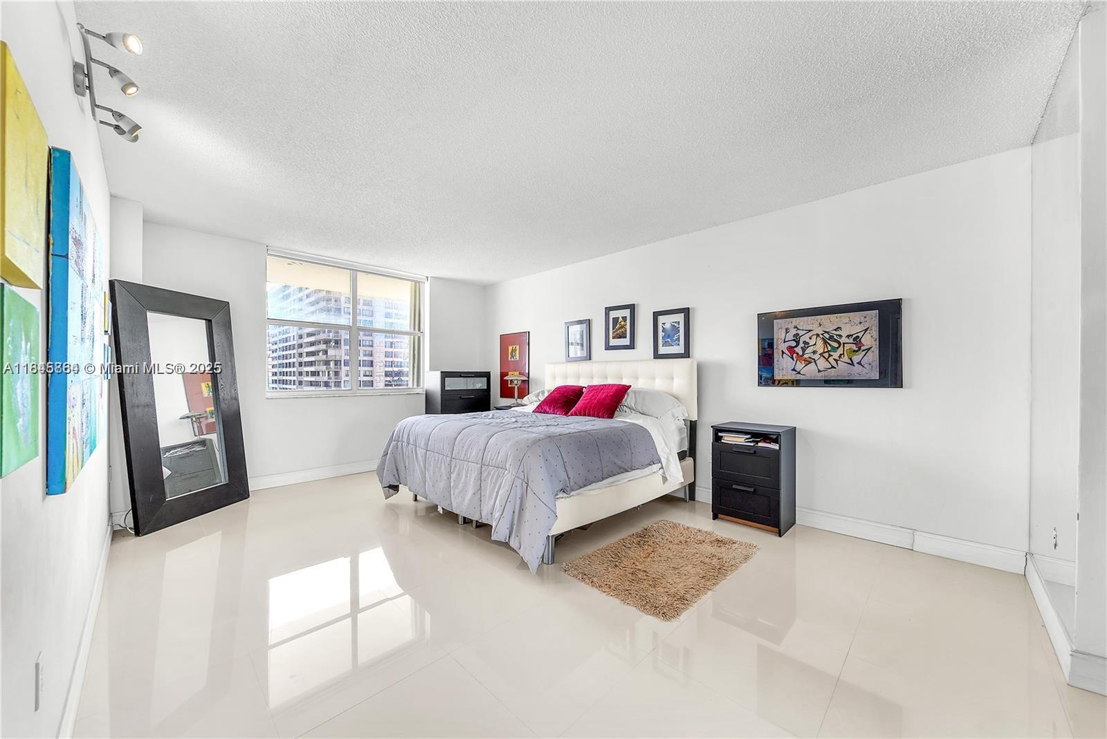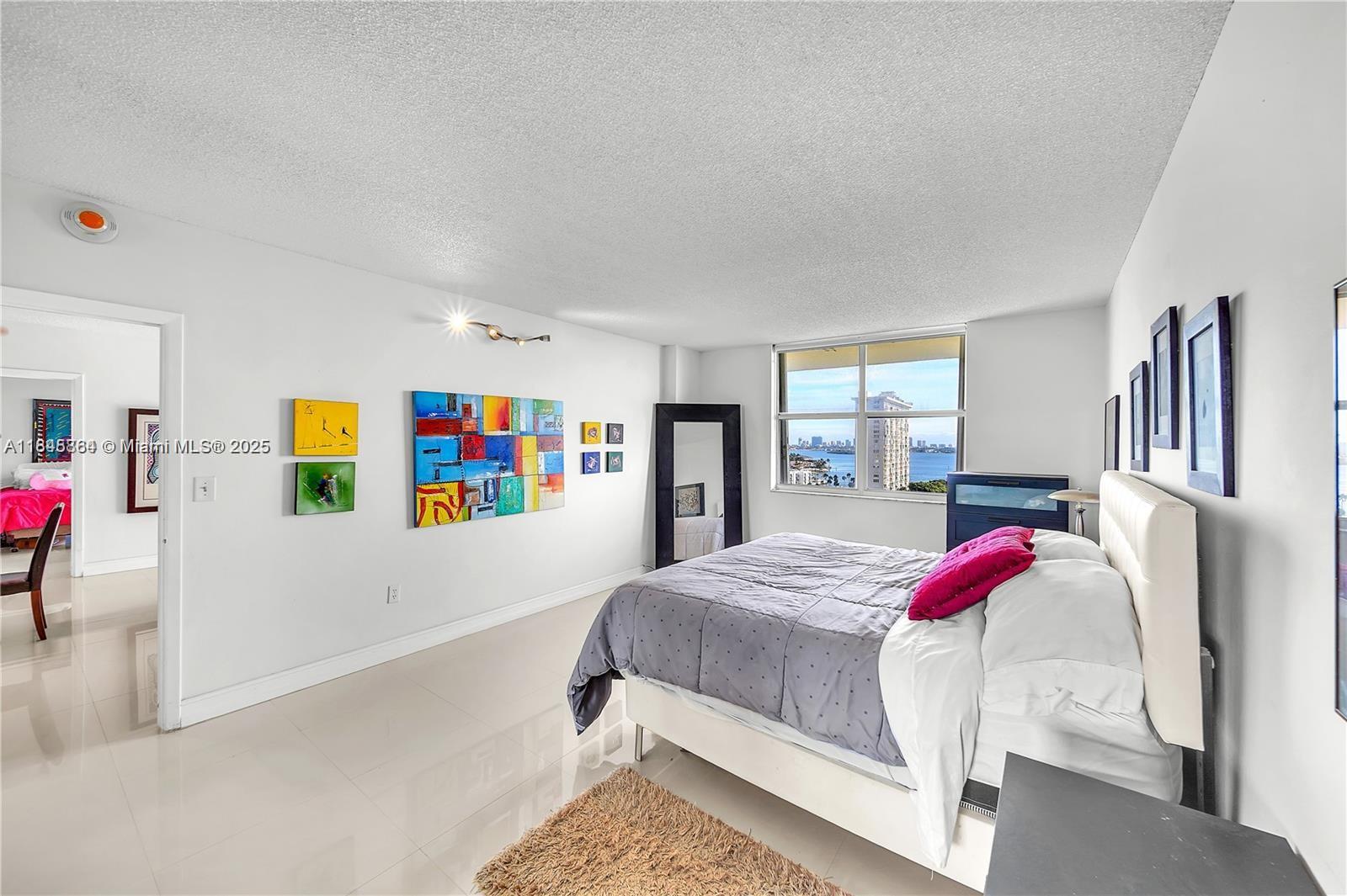 Spacious 2 bedroom 2 bathroom condo offering 1,353 square feet of living space with beautiful water views from the balcony on a high floor just below the penthouse. The layout features two split bedrooms with large walk-in closets, updated bathrooms, and porcelain tile flooring throughout. Located in a gated community with cable, internet, and water included. Conveniently situated close to the beach, major highways, restaurants, and shopping centers.