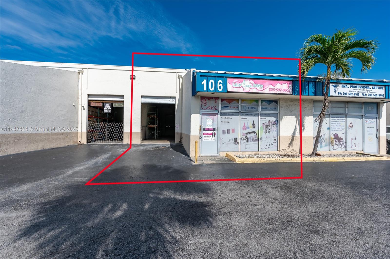 This exceptional 2,472-square-foot warehouse in a highly sought-after area of Doral presents a unique opportunity for businesses. It features a commercial storefront and office space in the rear of the warehouse. With convenient access to major highways—less than 1 mile from the Palmetto Expressway and SR 112, and easy access to Dolphin Expressway (836)—this unit is strategically located for maximum visibility and convenience. It offers a street-level loading dock, a kitchenette, and a bathroom, all with an impressive clear ceiling height of 18 feet. Additionally, it is just a 15-minute drive from Miami International Airport.