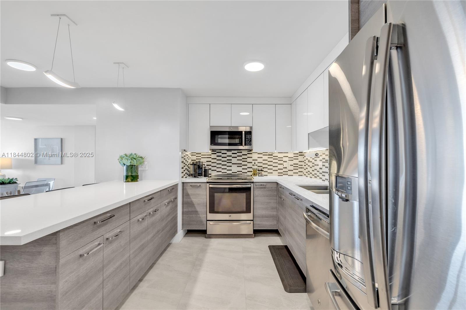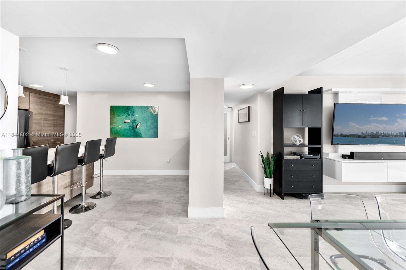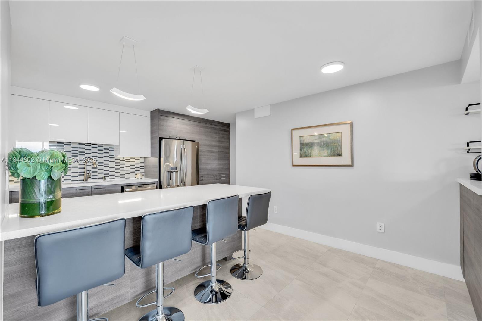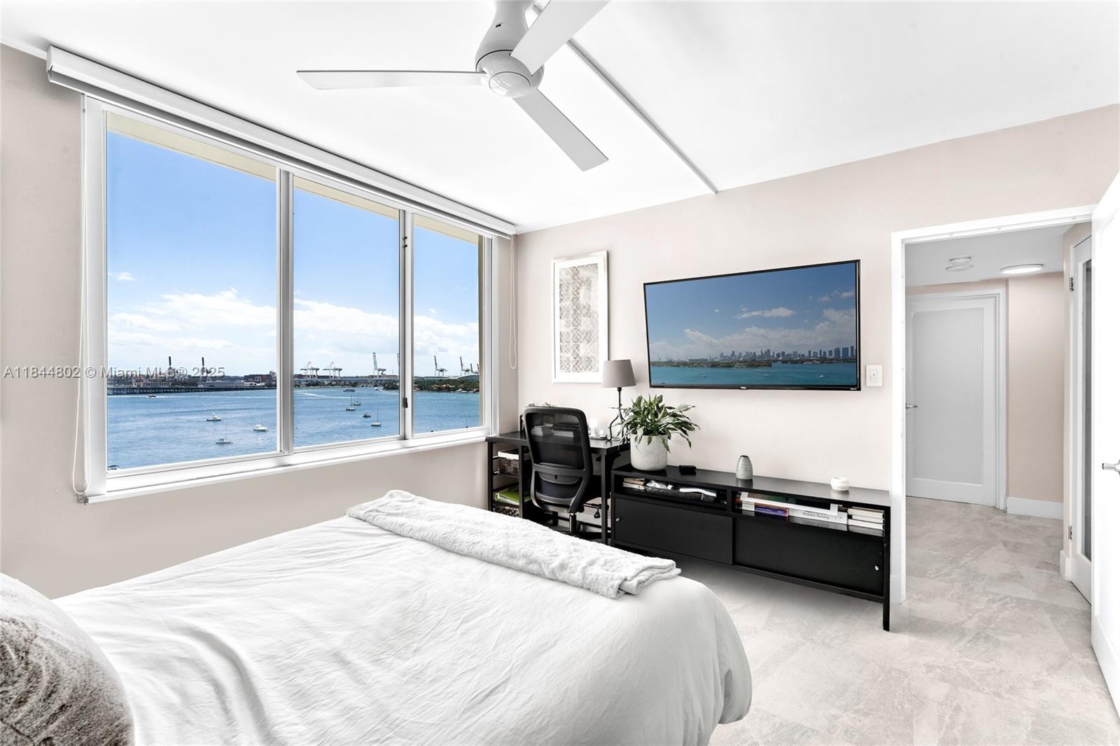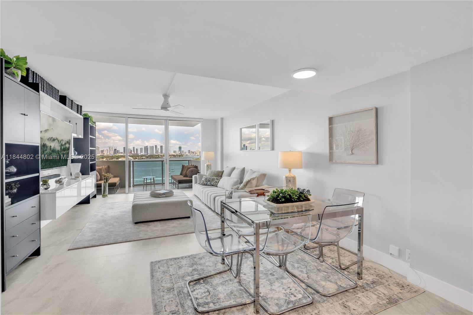 Unwind to breathtaking downtown skyline and bay views upon entering this renovated, light-infused 2-bed, 2-bath home. Nestled in the coveted southwesterly corner of the Mirador North, the residence's large porcelain tile flooring seamlessly unifies its spacious living and dining areas. Its eat-in kitchen features stainless steel appliances, modern cabinetry, and quartz countertops. Both the primary and secondary suites have tranquil water and sunset views, built-out closets, & spa-inspired bathrooms. The full-service building amenities include a 24-hour concierge, valet service, a bay-front pool and a state-of-the-art gym. W/D in unit and 2 assigned garage spaces, a rarity for the area. West Ave is just moments away from Miami's vibrant hotspots like Sunset Harbour, SoFi, and the beach.