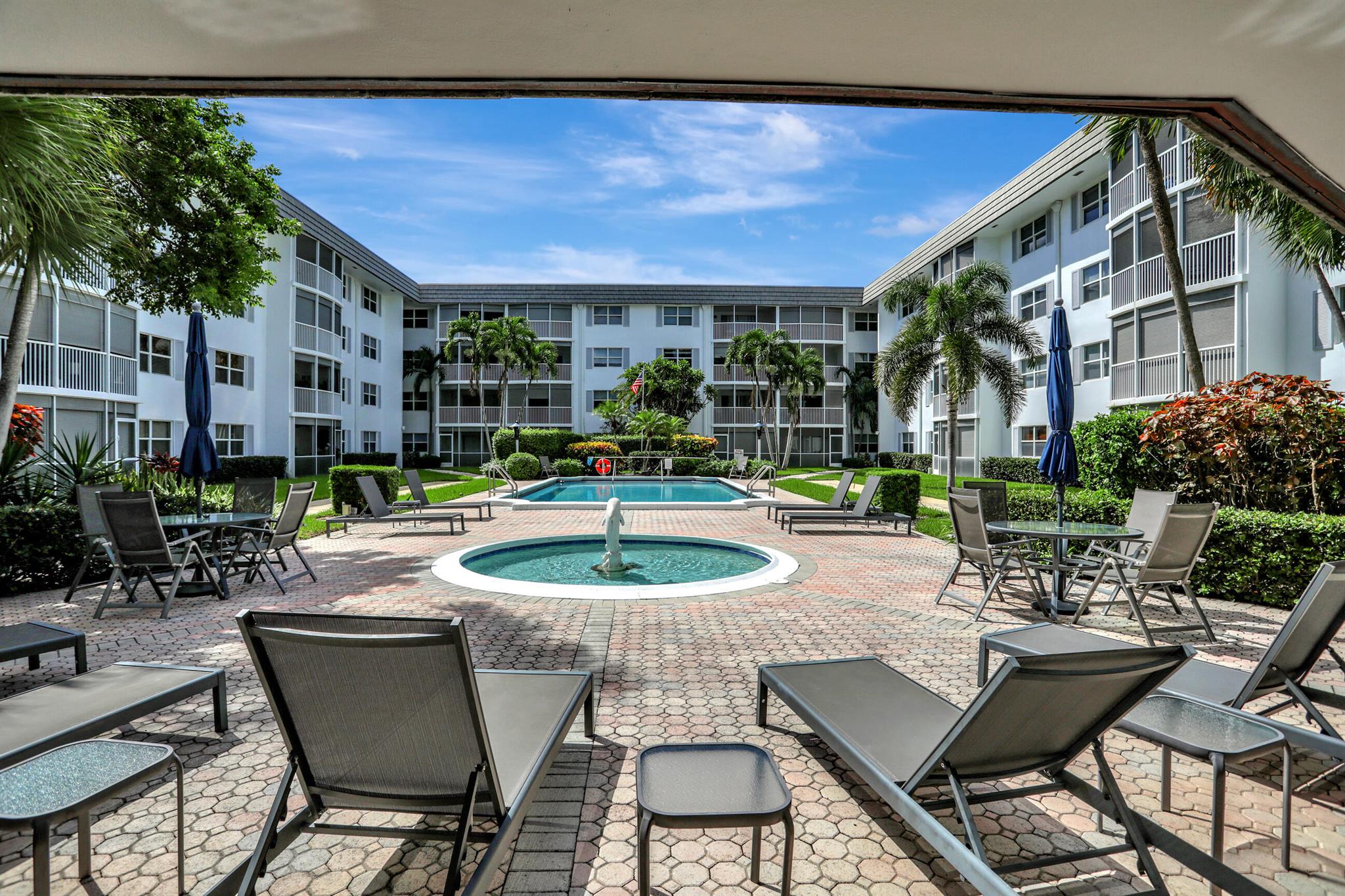 Fabulous 2-bedroom, 2 bathroom condo with screened patio overlooking the pool. Kitchen has white cabinetry and stainless appliances. Tile throughout. Full size washer & dryer in unit. Walking distance to the beach, close to shopping, restaurants and Mizner Park area. Beautiful pool area with lots of lounge chairs for you to enjoy a sunny day out in the sun. Renters have a private carport and lots of guest parking.