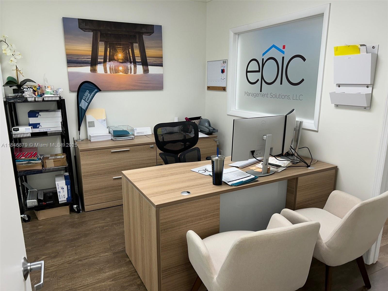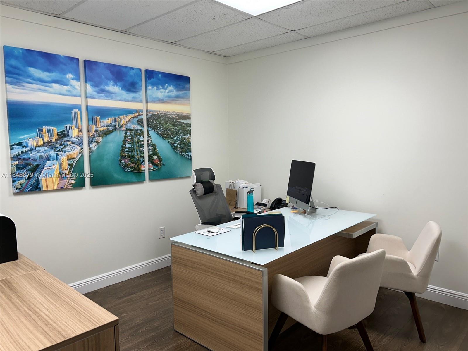 Great Location! Minutes to Doral, Kendall, Hialeah and Coral Gables- Easily accessible at any time. Steps from Turnpike, Palmetto and 836 Expressways. Plenty of parking space. Actual space has 3 offices, 1 flex space and 1 utility/kitchen. Available September/2025. Common area bathrooms.