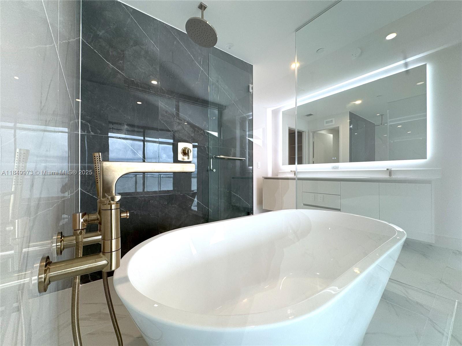 Stunning NEW BUILD 1 bedroom + den, 2 bath condo in luxurious Aria Reserve, in the popular Edgewater neighborhood! New ceiling light fixtures and shades just installed! BRAND NEW, be the 1st to live in this home!! Modern designer finishes, elegant marble styled porcelain floors, spacious island, premium appliances, and windows that flood in natural light. Den is perfect for an office or bedroom. Step onto the expansive private balcony with breathtaking views of Biscayne Bay - perfect for a morning coffee while watching the sunrise. Enjoy access to world-class amenities including resort-style pool, a full-service spa, fitness center, tennis courts, 24-hour concierge, and a waterfront promenade. Minutes from Wynwood, Brickell, Downtown, & Miami Beach, this home offers luxury and convenience!