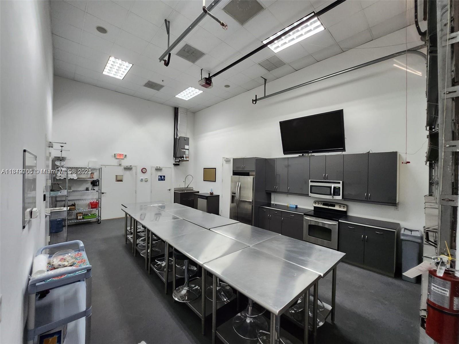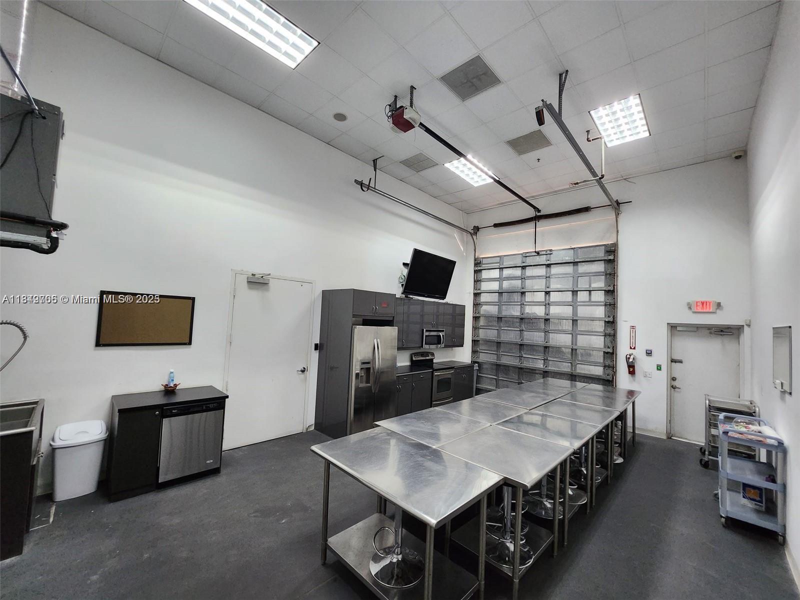 Located in the heart of Doral on busy NW 79th Avenue with excellent visibility from Palmetto Expy. THIS PROPERTY IS A PERFECT FIT FOR ACADEMIES OR BUSINESSES THAT OFER INSTRUCTIONAL WORKSHOPS AND SELL PRODUCTS ON-SITE. Fully furnished and move-in ready, this unit features a stylish reception area and a spacious showroom with wall-mounted display panels - perfect for showcasing products. In the back section, you'll find a multipurpose space with a modern, fully equipped kitchen and stainless steel tables with stools, ideal for hosting classes or demonstrations. All areas are fully air-conditioned, featuring two independent A/C units. NEED ADDITIONAL OFFICE/STORAGE SPACE? The adjacent unit (MLS#A11799720) is also available for rent at a special price when leased together. Same Landlord.